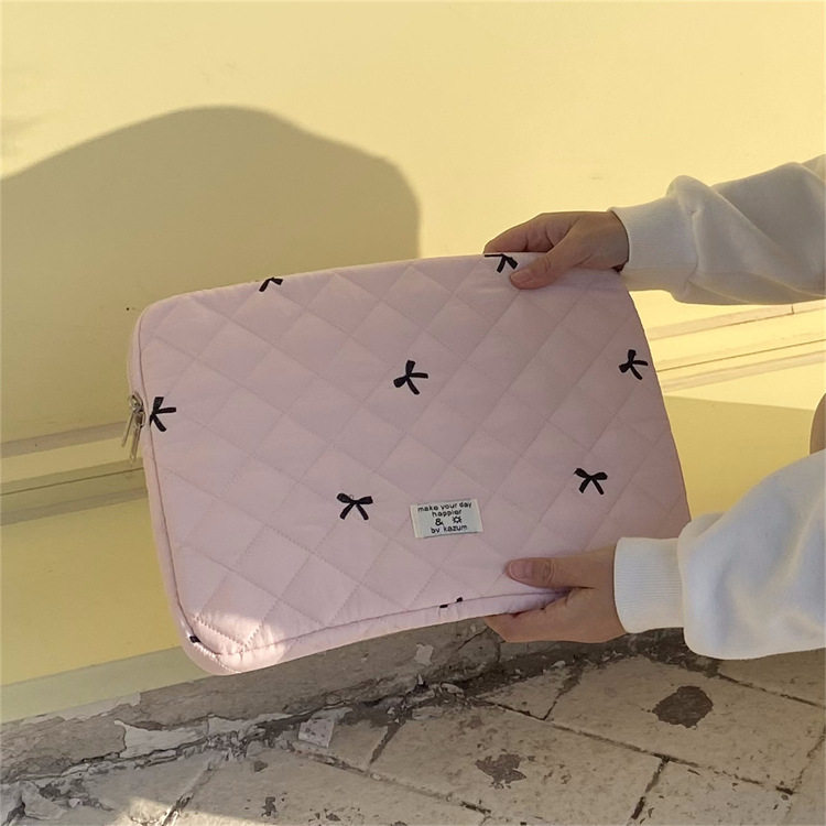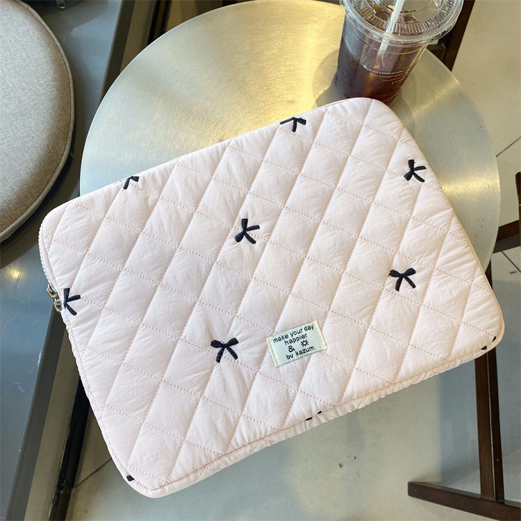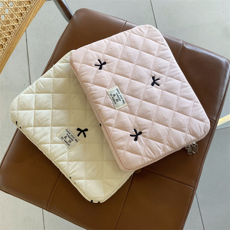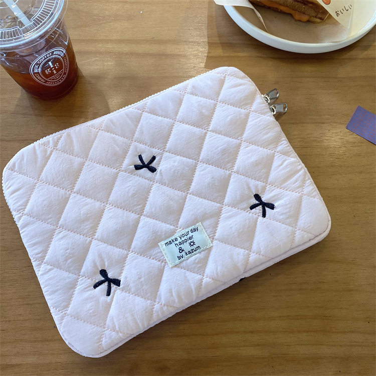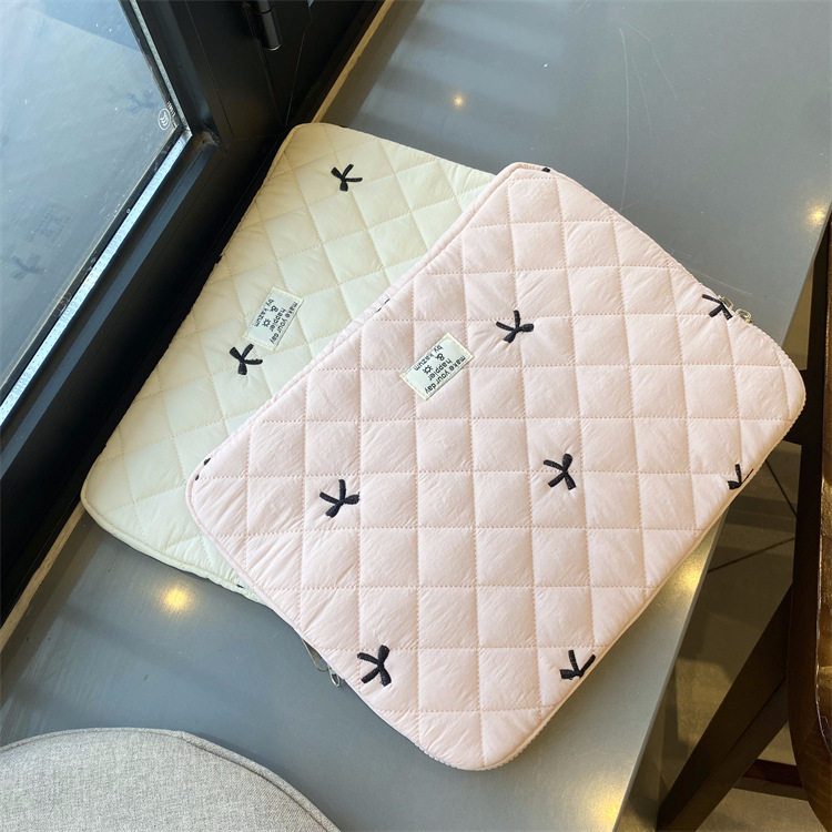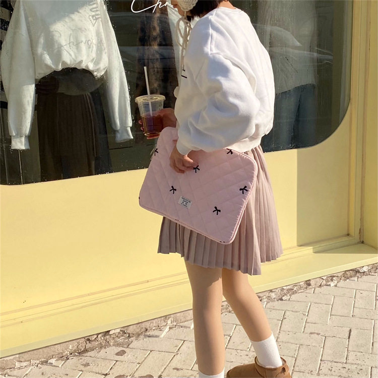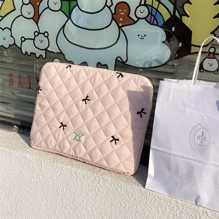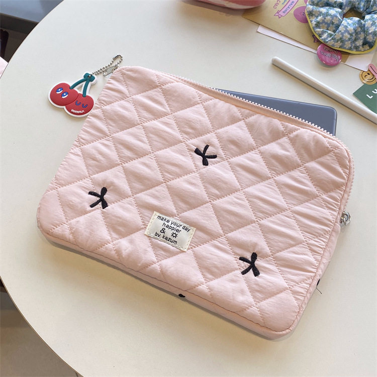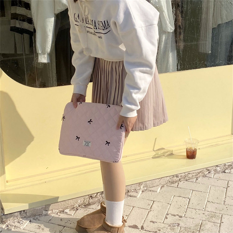 韓國ins平板電腦收納可愛菱格刺綉蝴蝶結11/13/15寸筆電收納包