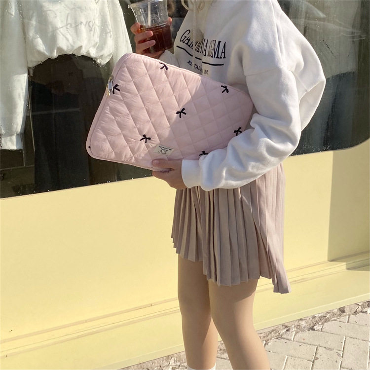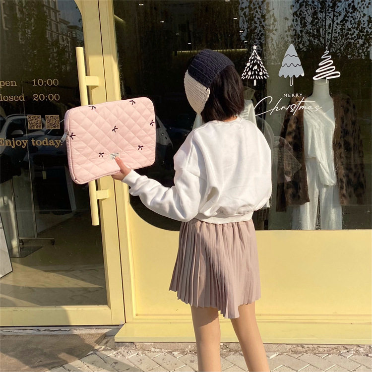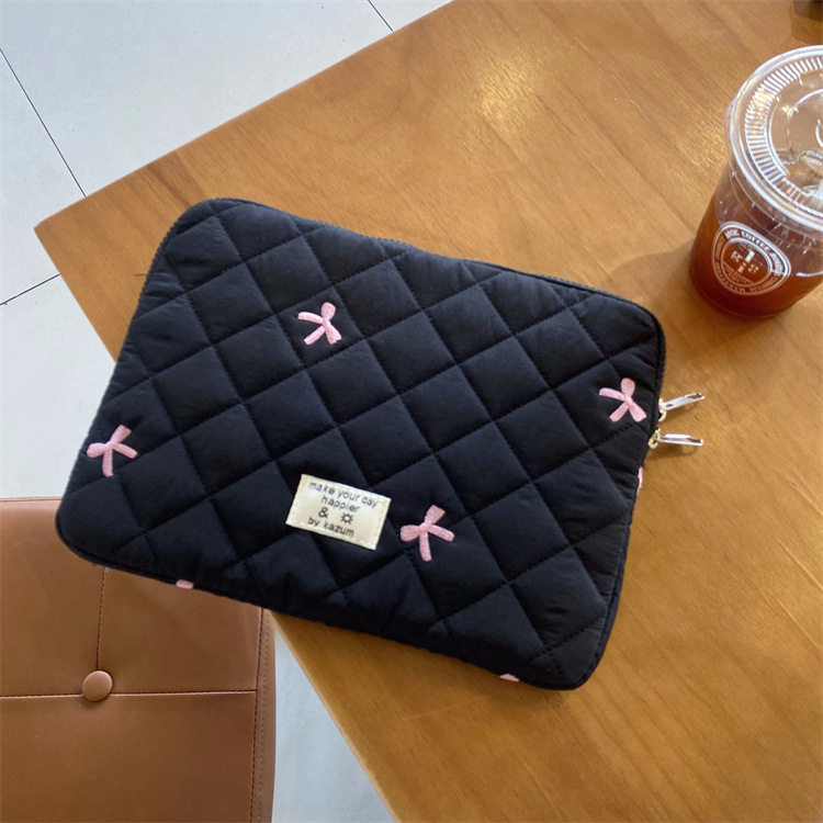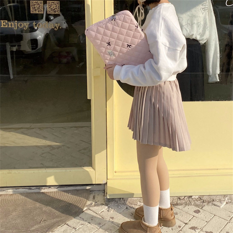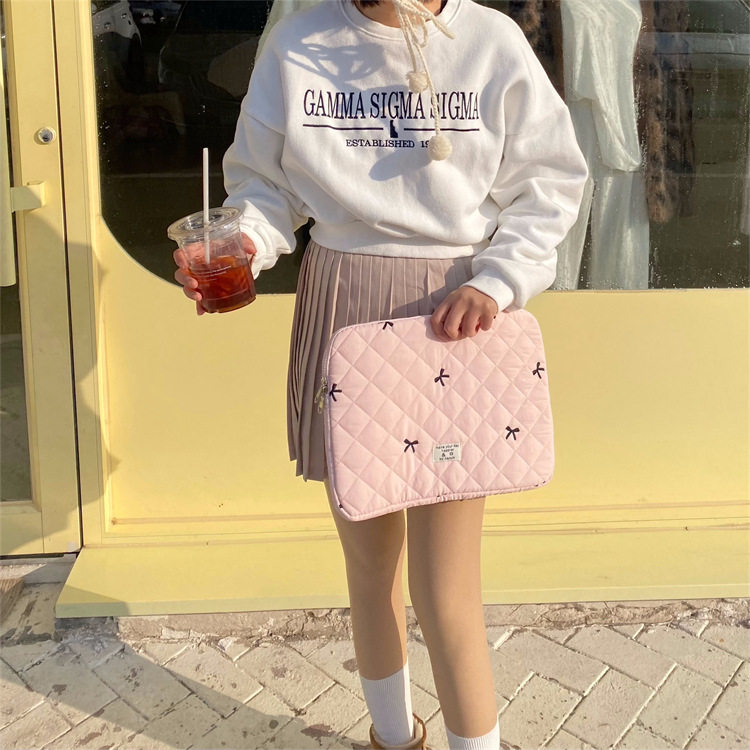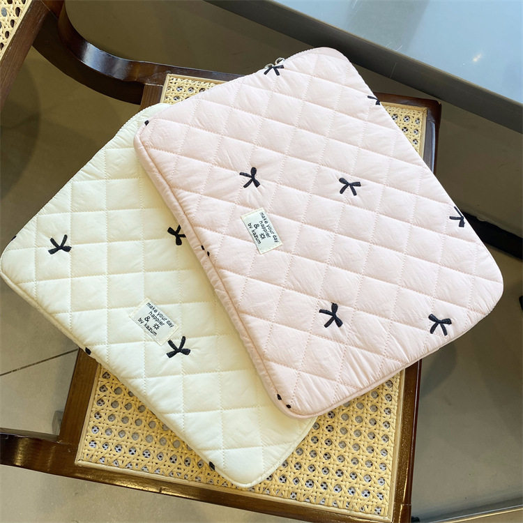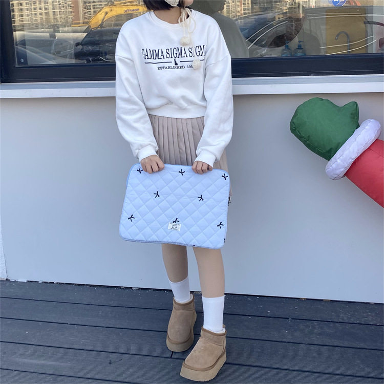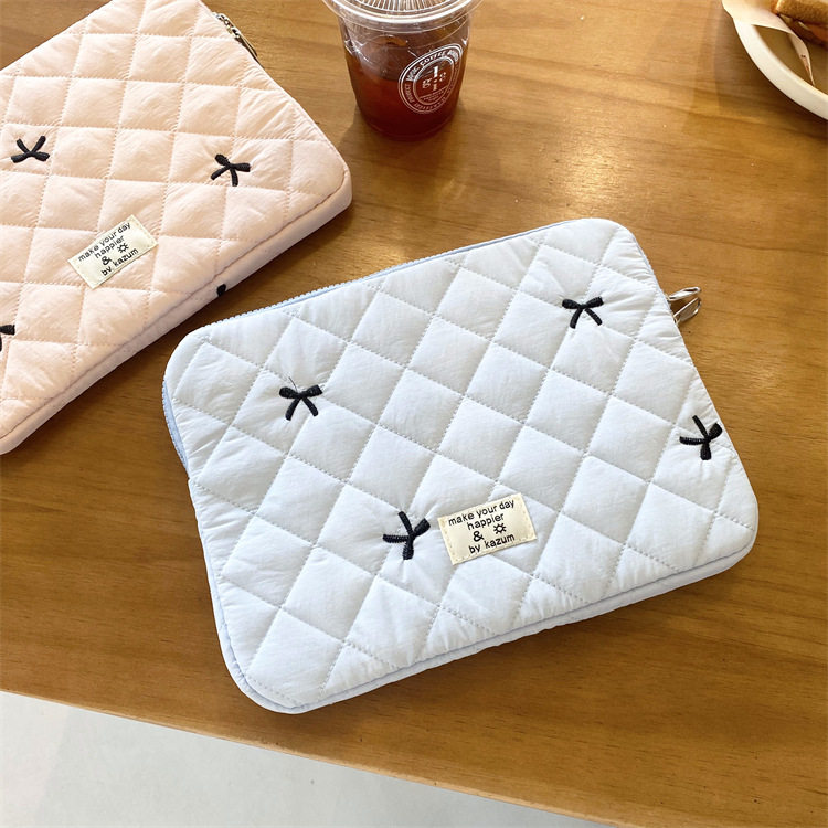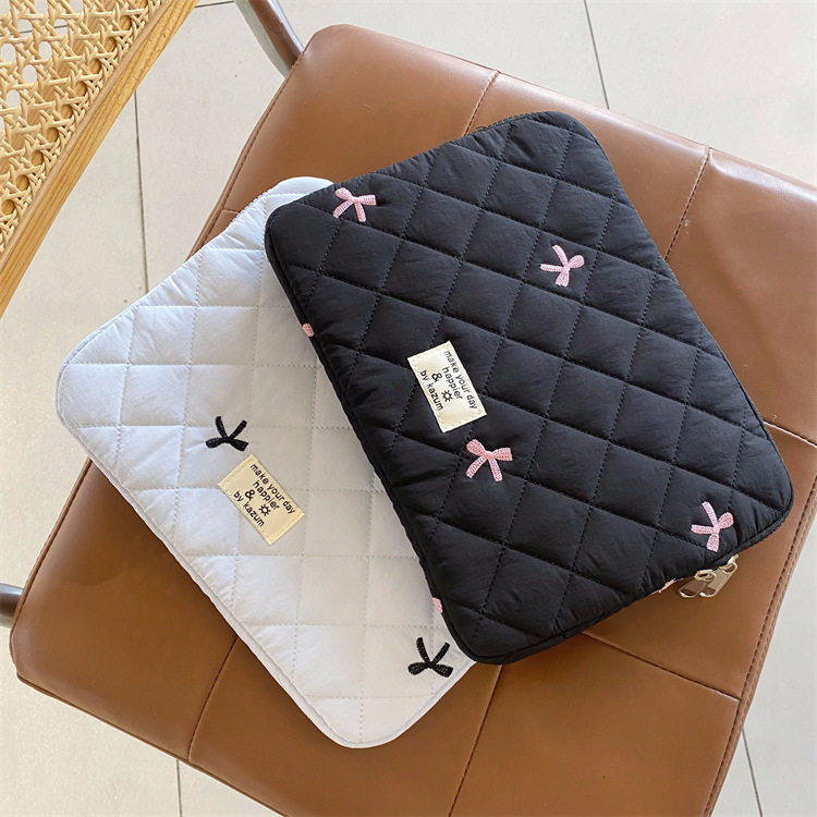 韓國ins平板電腦收納可愛菱格刺綉蝴蝶結11/13/15寸筆電收納包