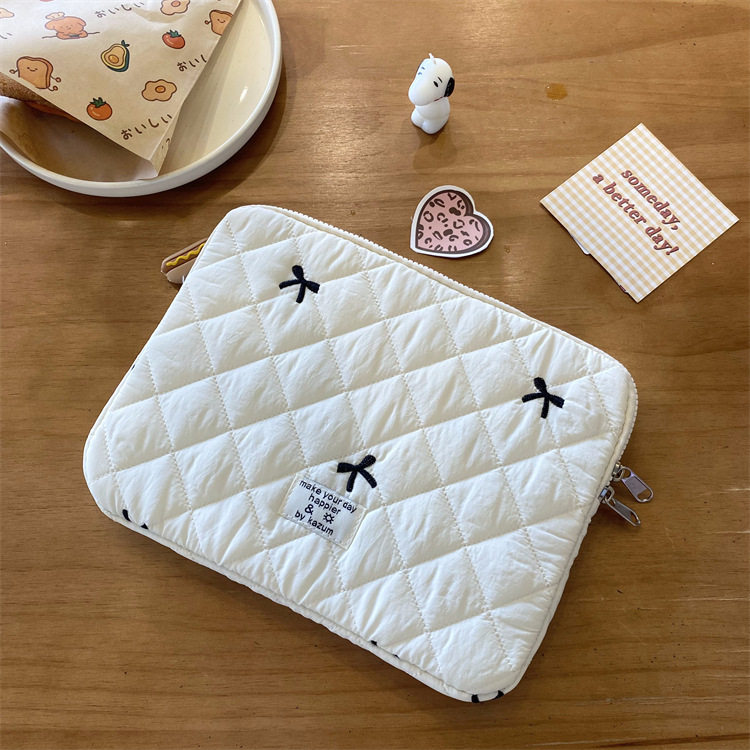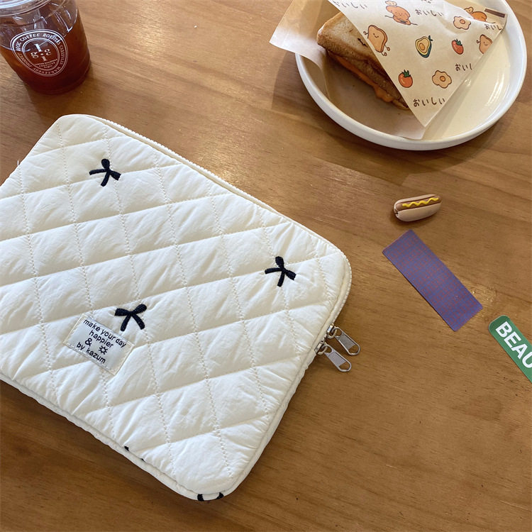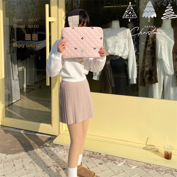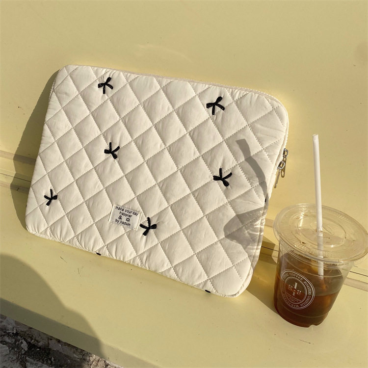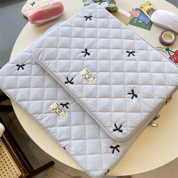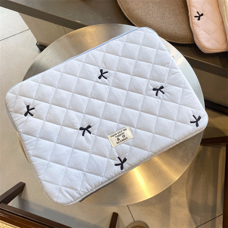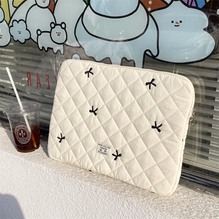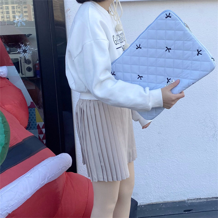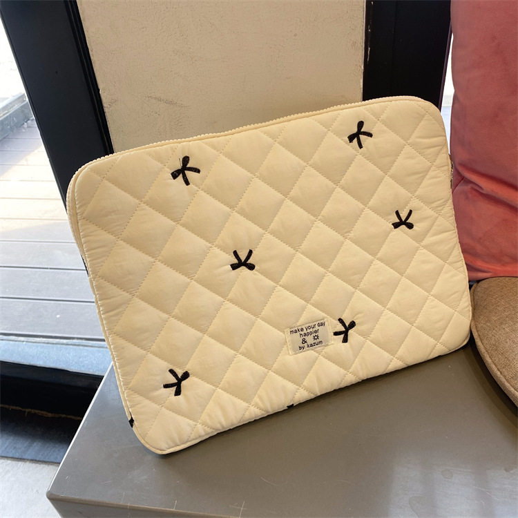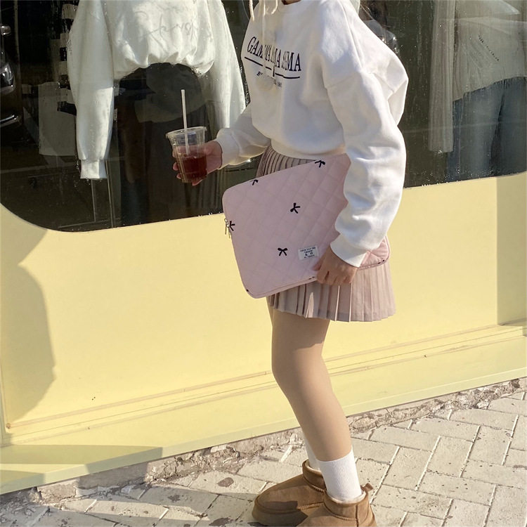 韓國ins平板電腦收納可愛菱格刺綉蝴蝶結11/13/15寸筆電收納包