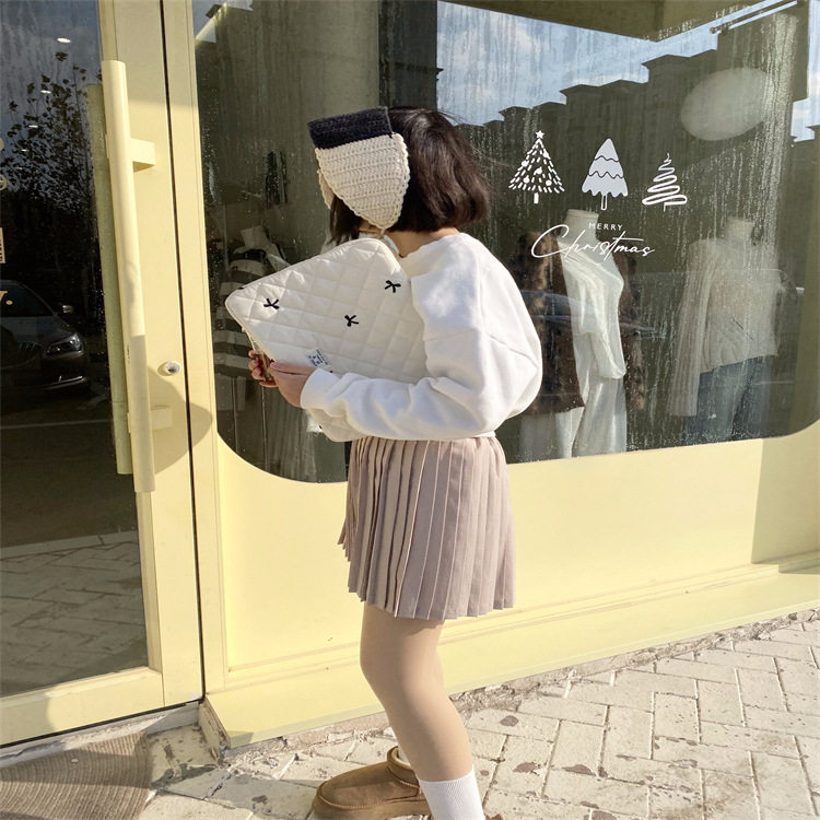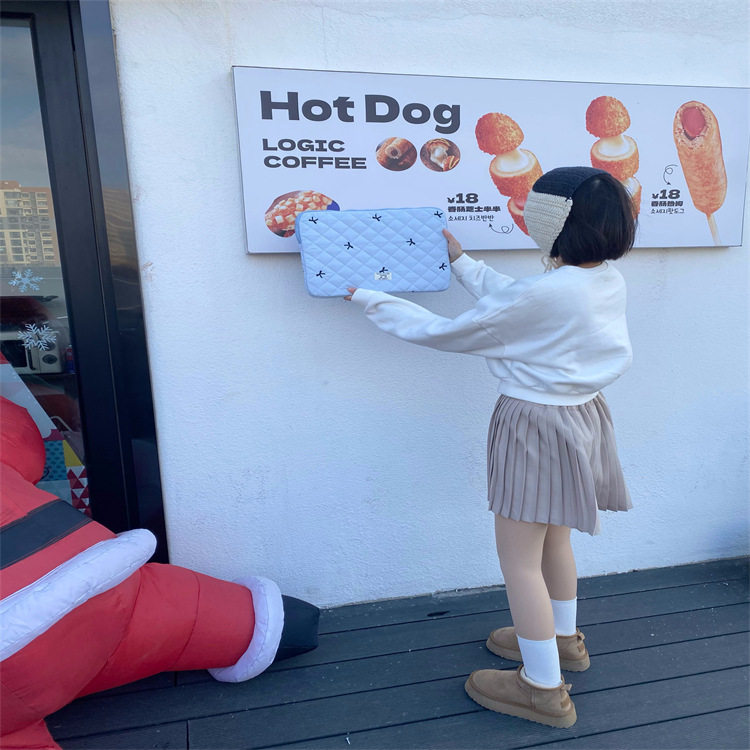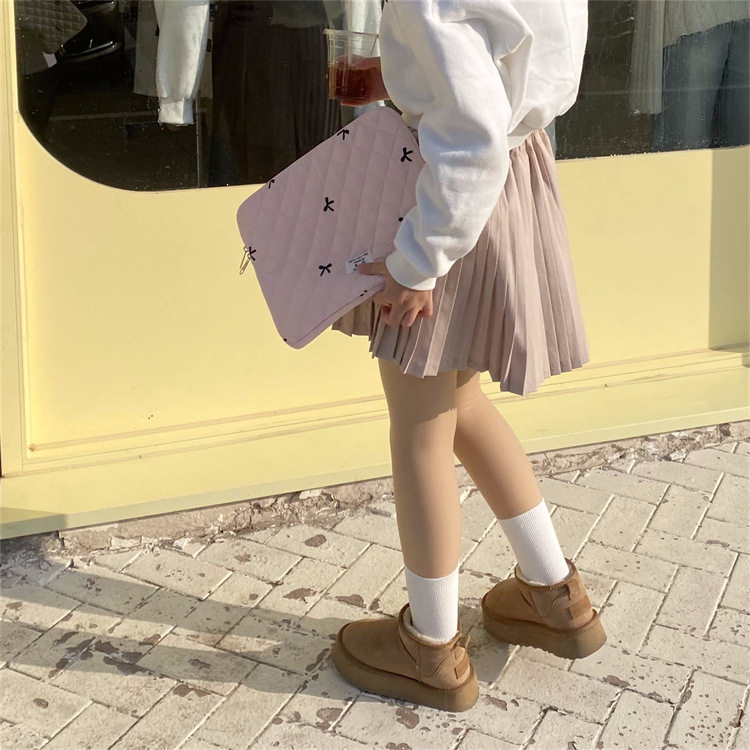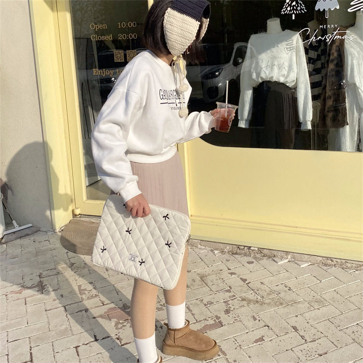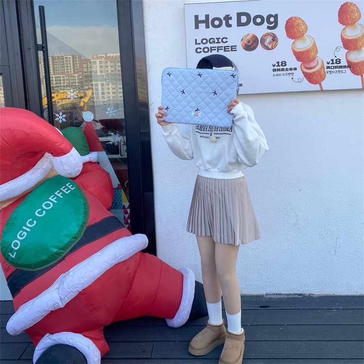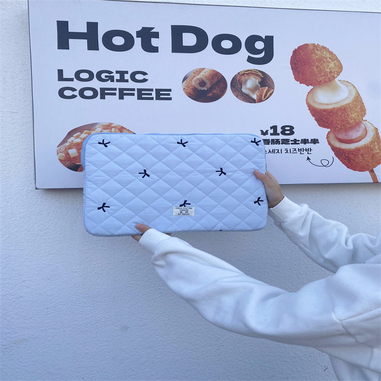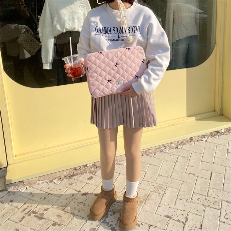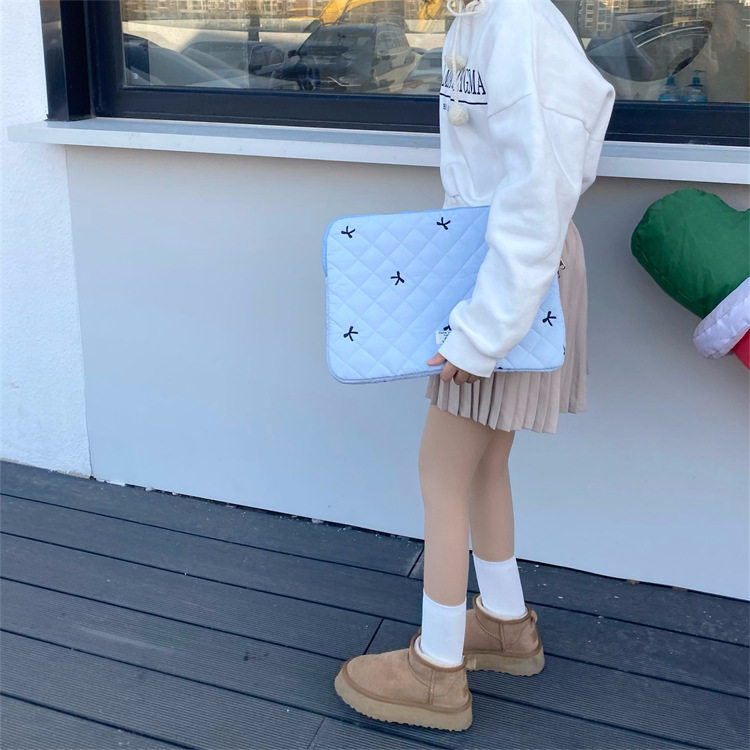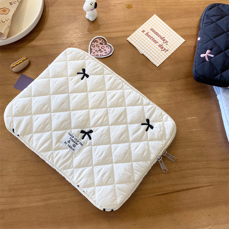 韓國ins平板電腦收納可愛菱格刺綉蝴蝶結11/13/15寸筆電收納包