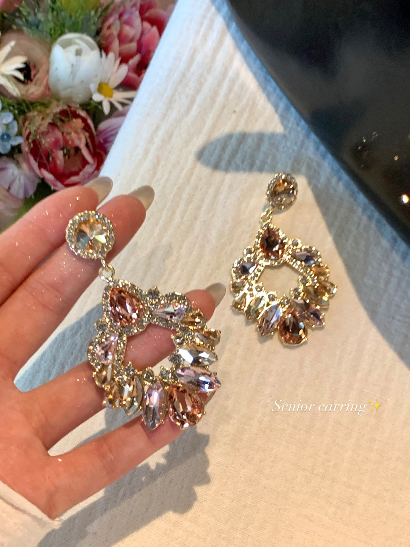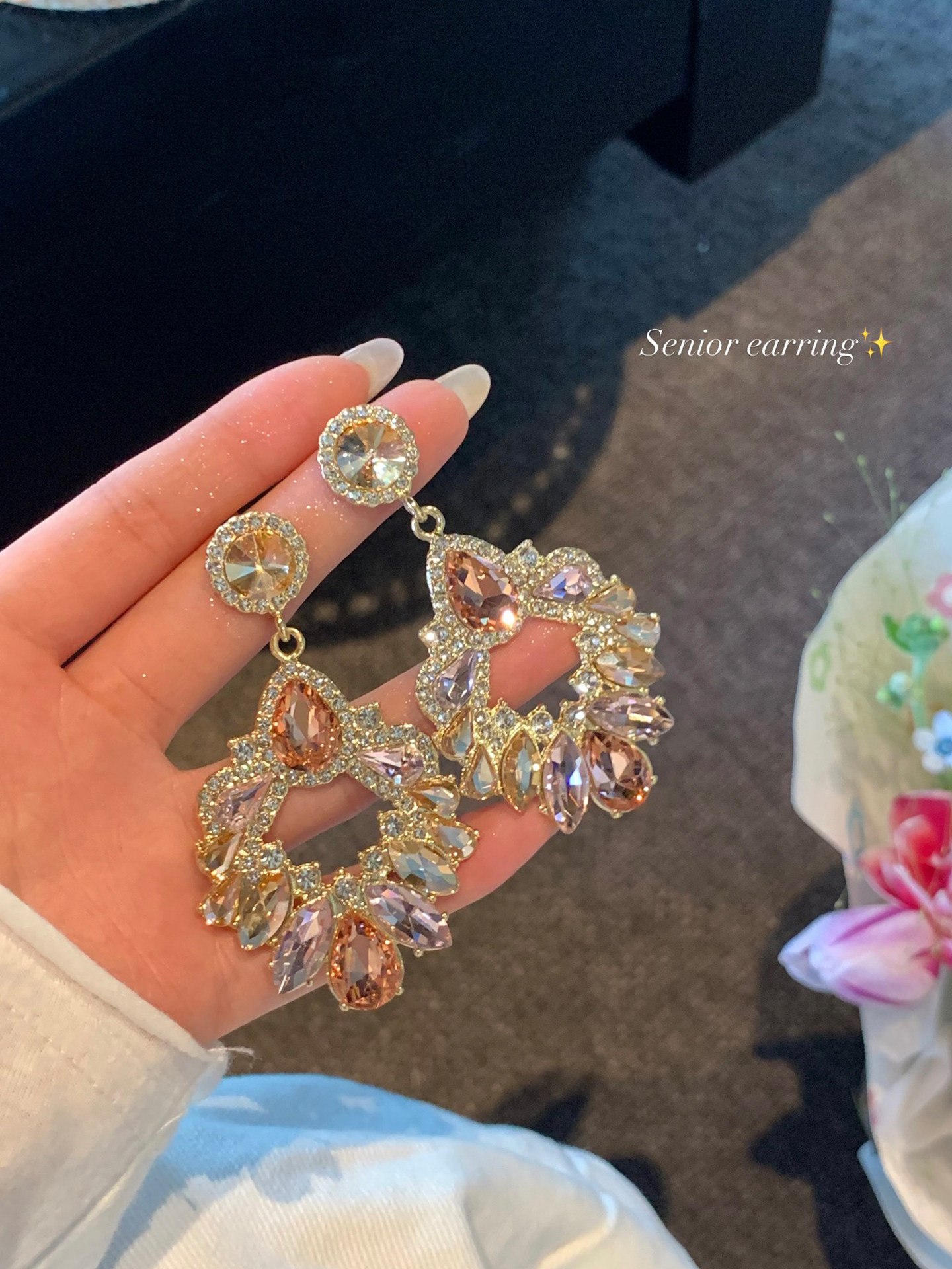 古早千金風粉色閃鋯吊墜耳環女誇張設計耳飾輕奢高級感巨好看耳釘