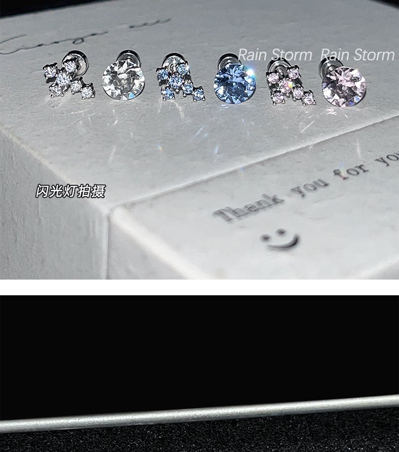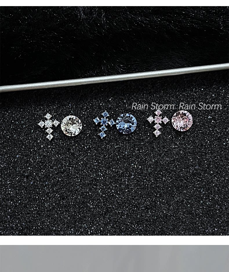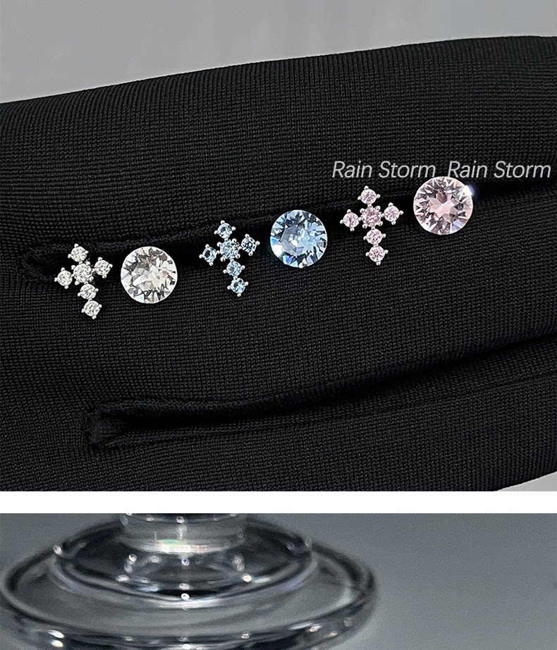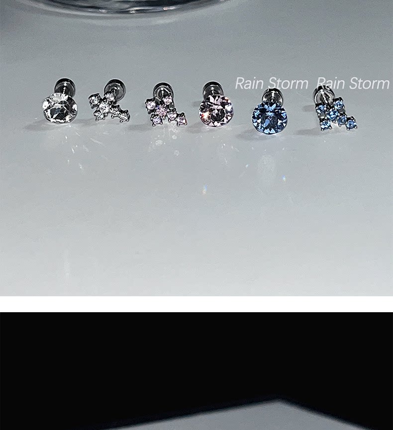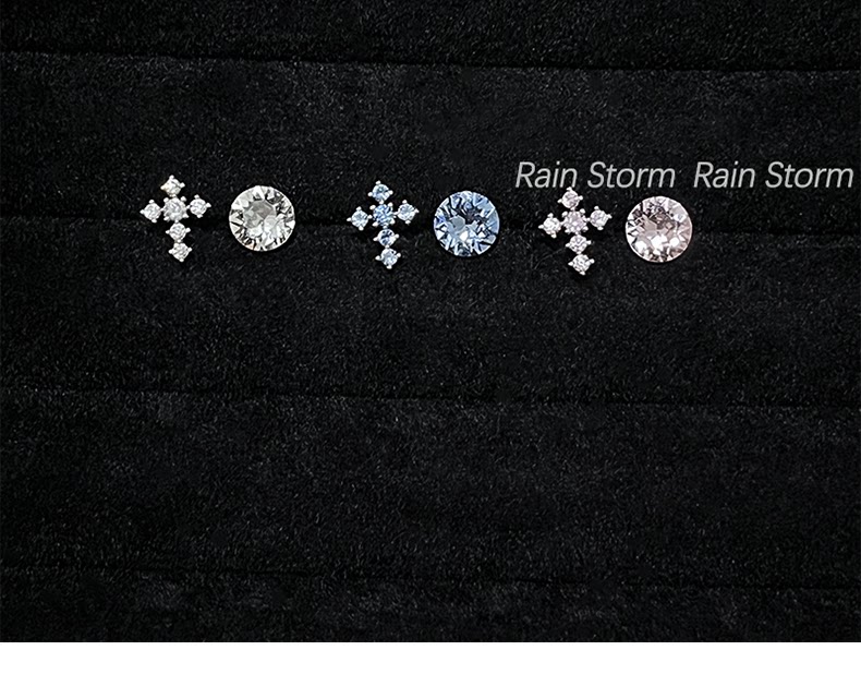Rain Storm施華洛十字架耳骨釘組合爆閃鈦鋼平底耳蝸釘雙耳洞耳釘