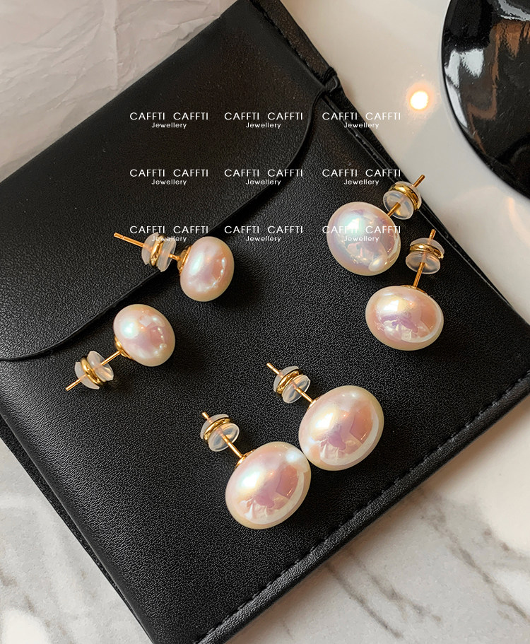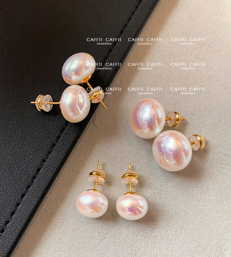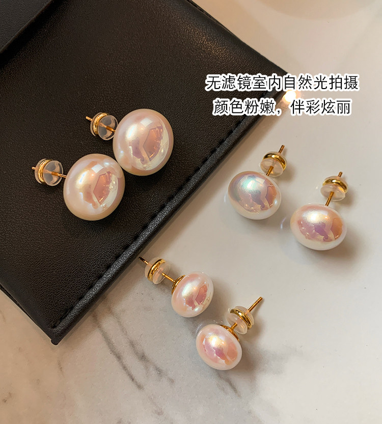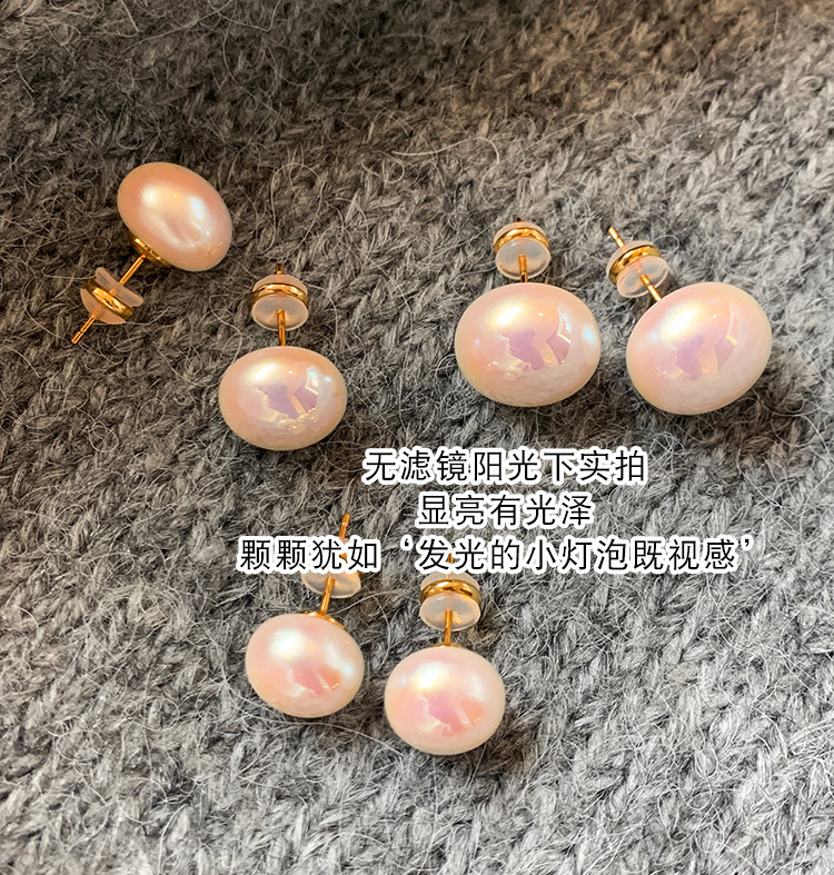 999純銀櫻花粉色天女饅頭珍珠耳釘女輕奢高級感氣質大氣耳環耳飾