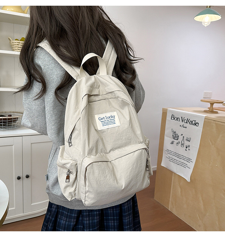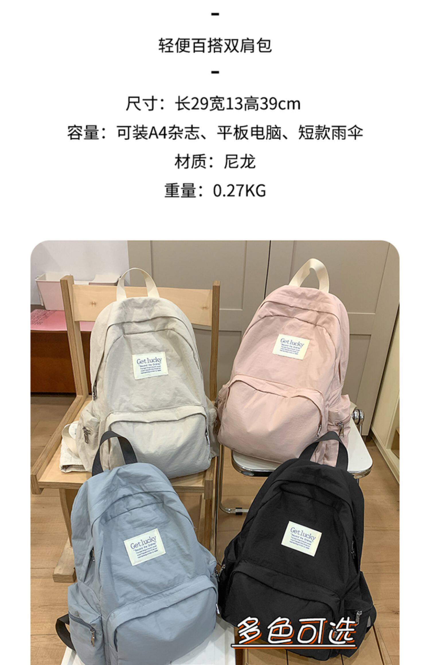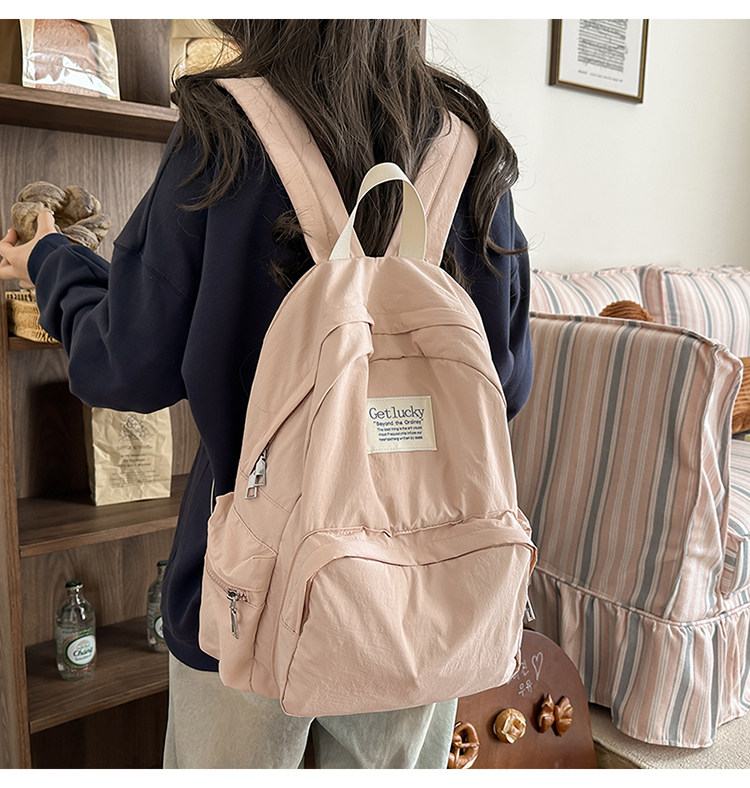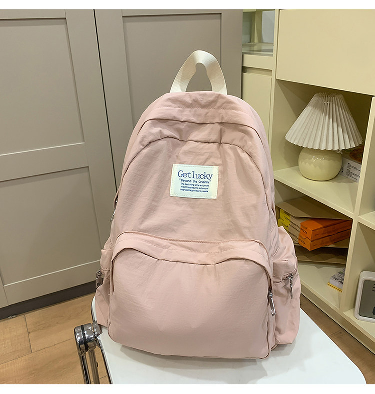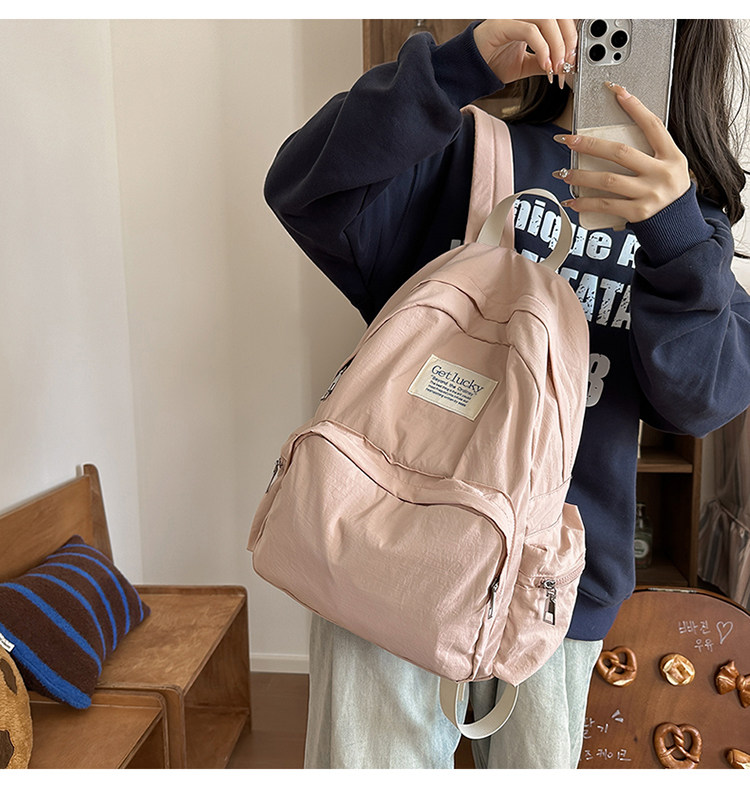 韓版初高中生森系粉色尼龍書包2026新款女大容量外出旅行雙肩後後背包