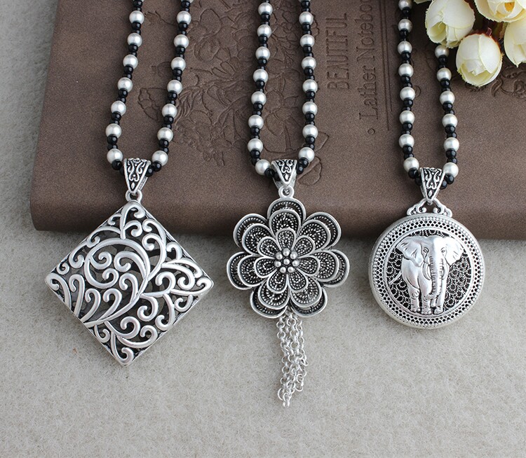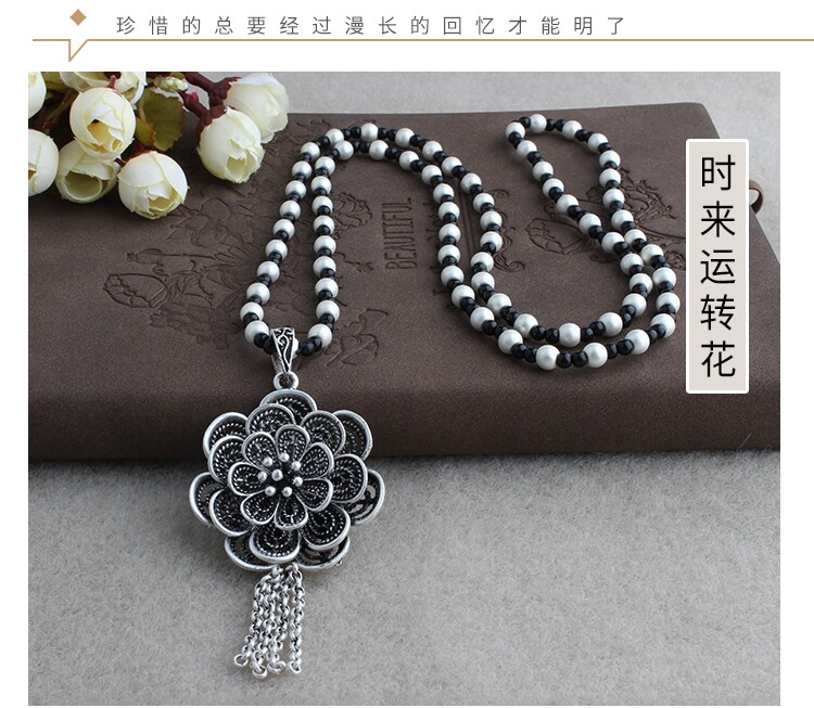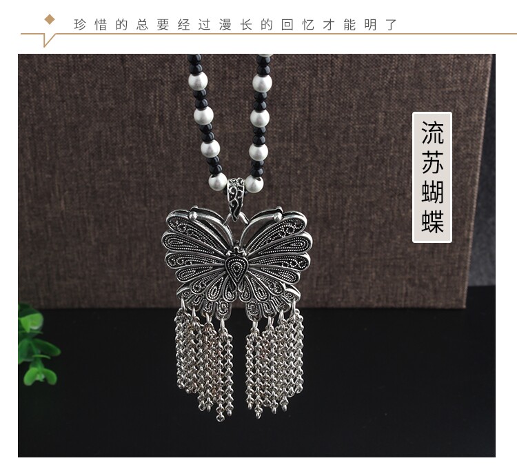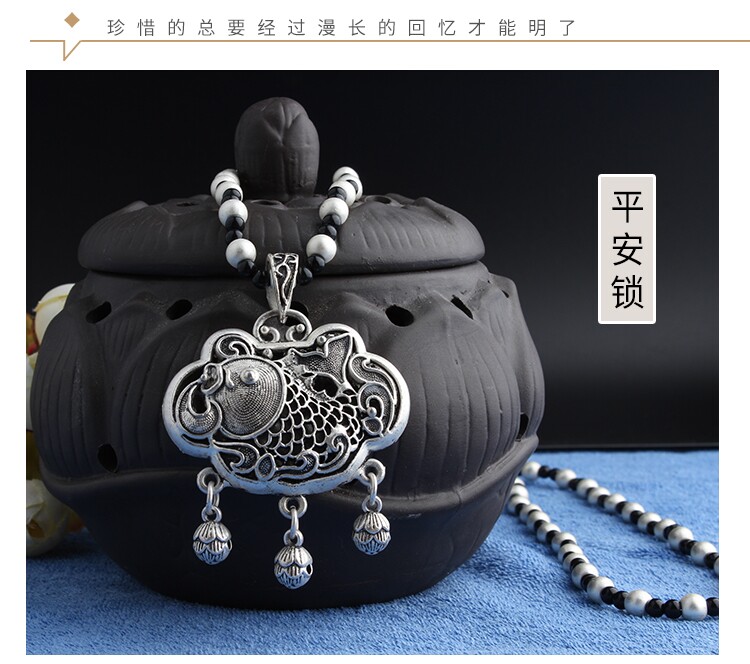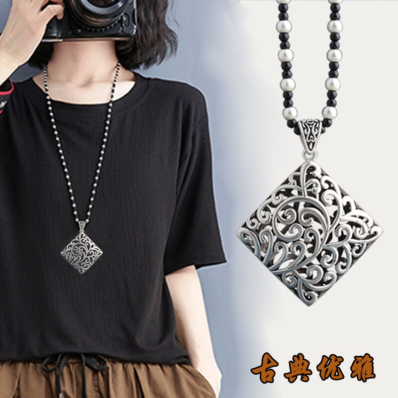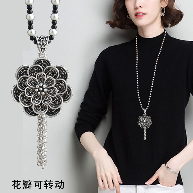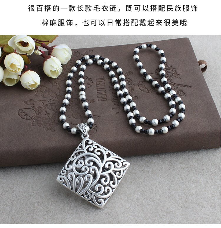 復古藏銀項鍊女長款毛衣鏈衛衣鏈T恤鏈子百搭掛繩文藝民族風掛件
