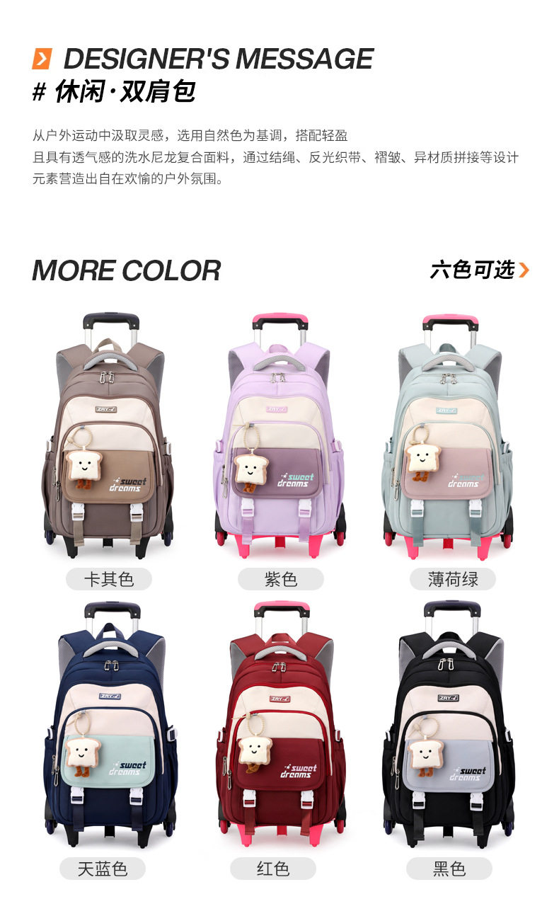 兒童拉桿書包小學生女孩六輪可爬樓2-6年級5大容量兩用防水減負12