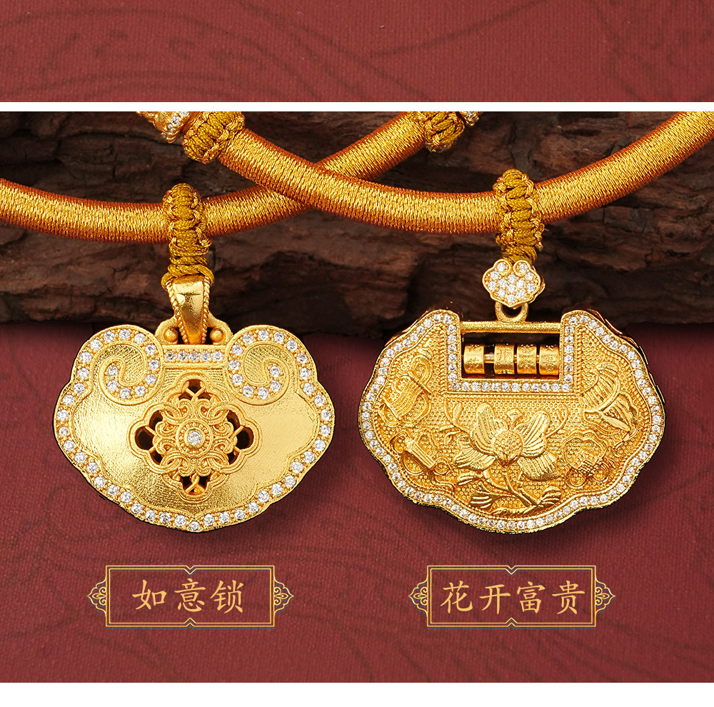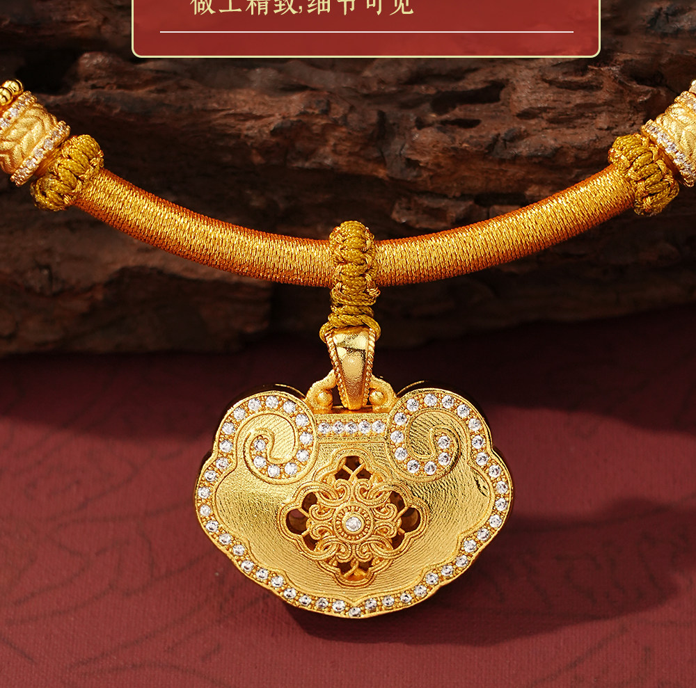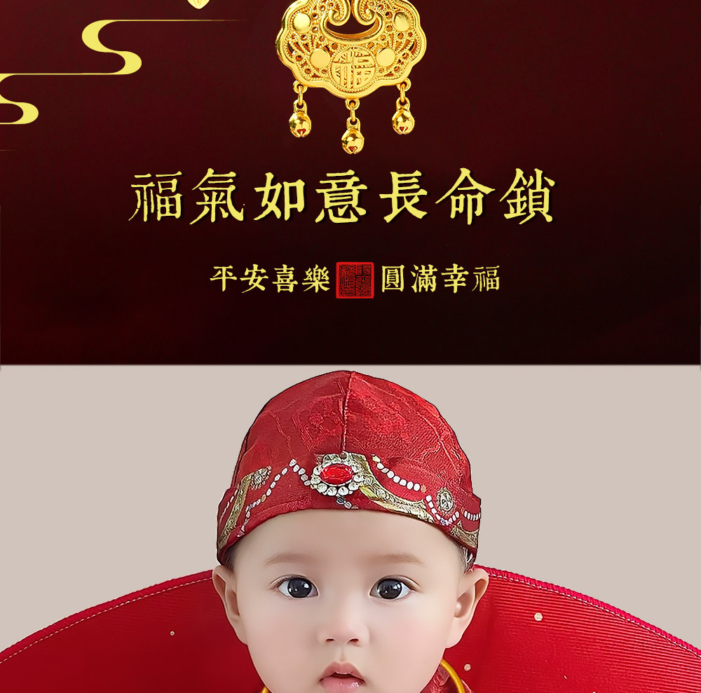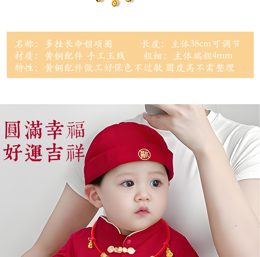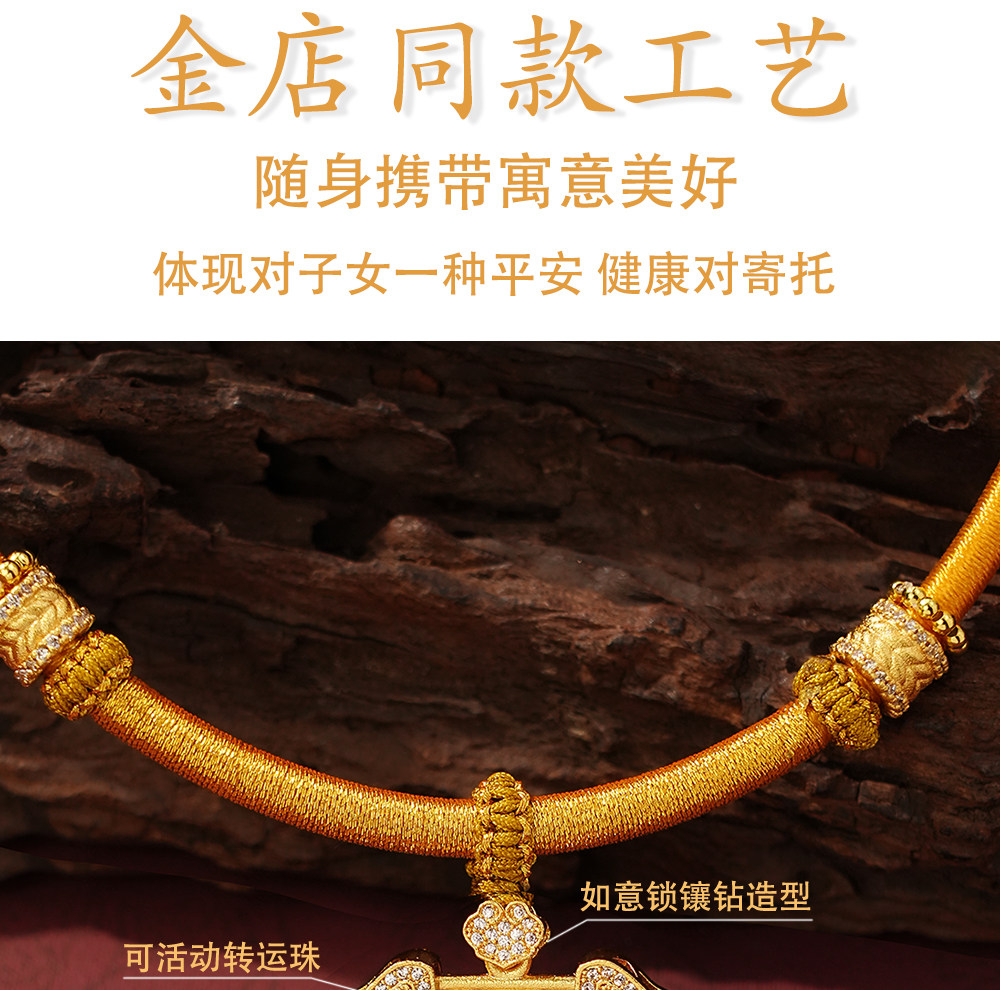 金店同款高品質沙金寶寶長命鎖紅色項圈平安鎖項鍊兒童滿月周嵗禮