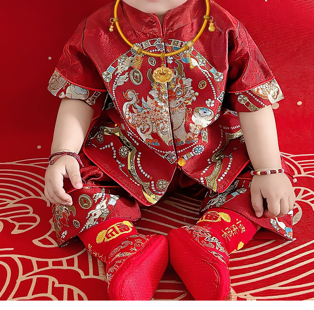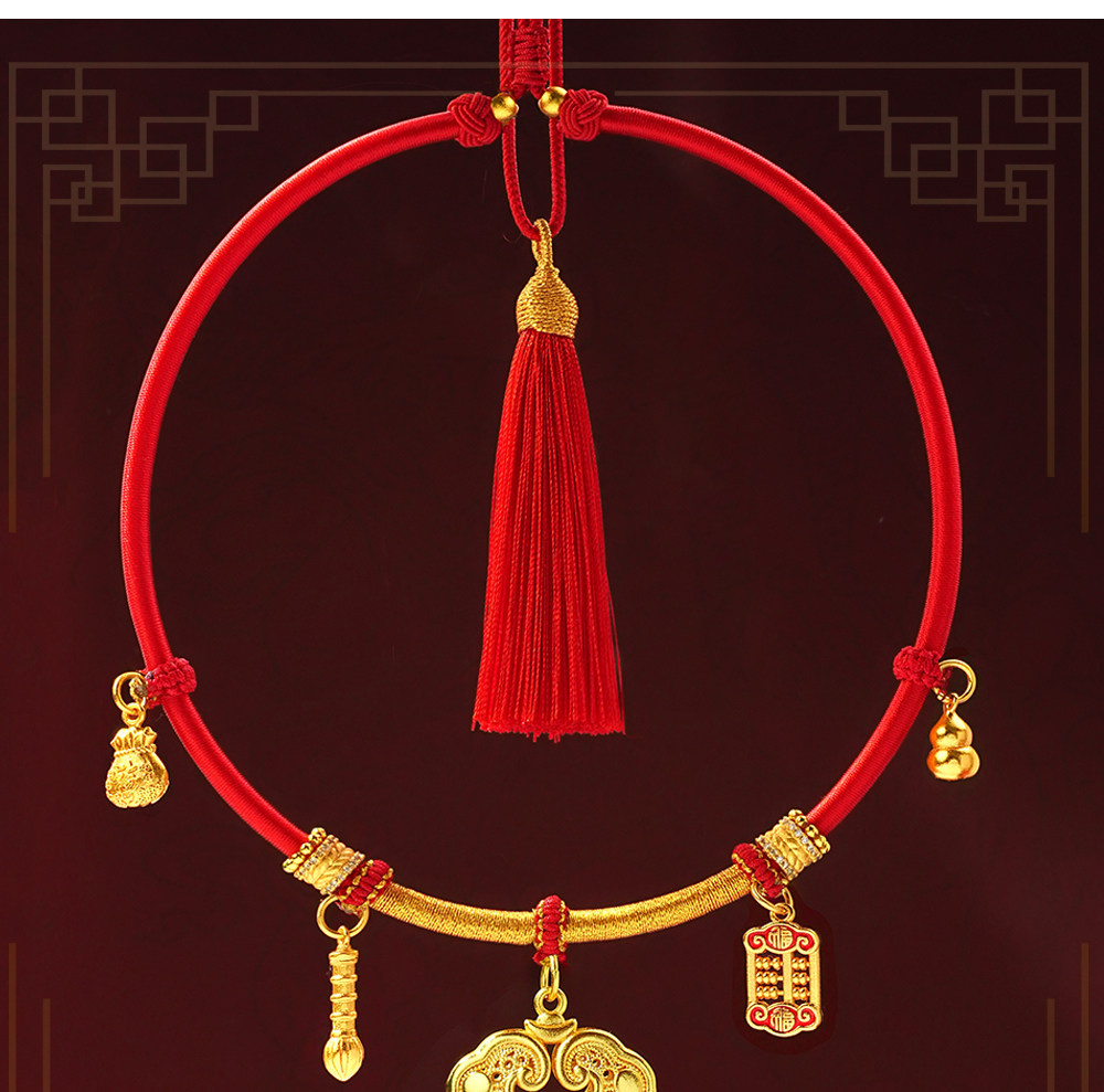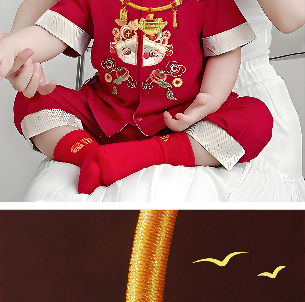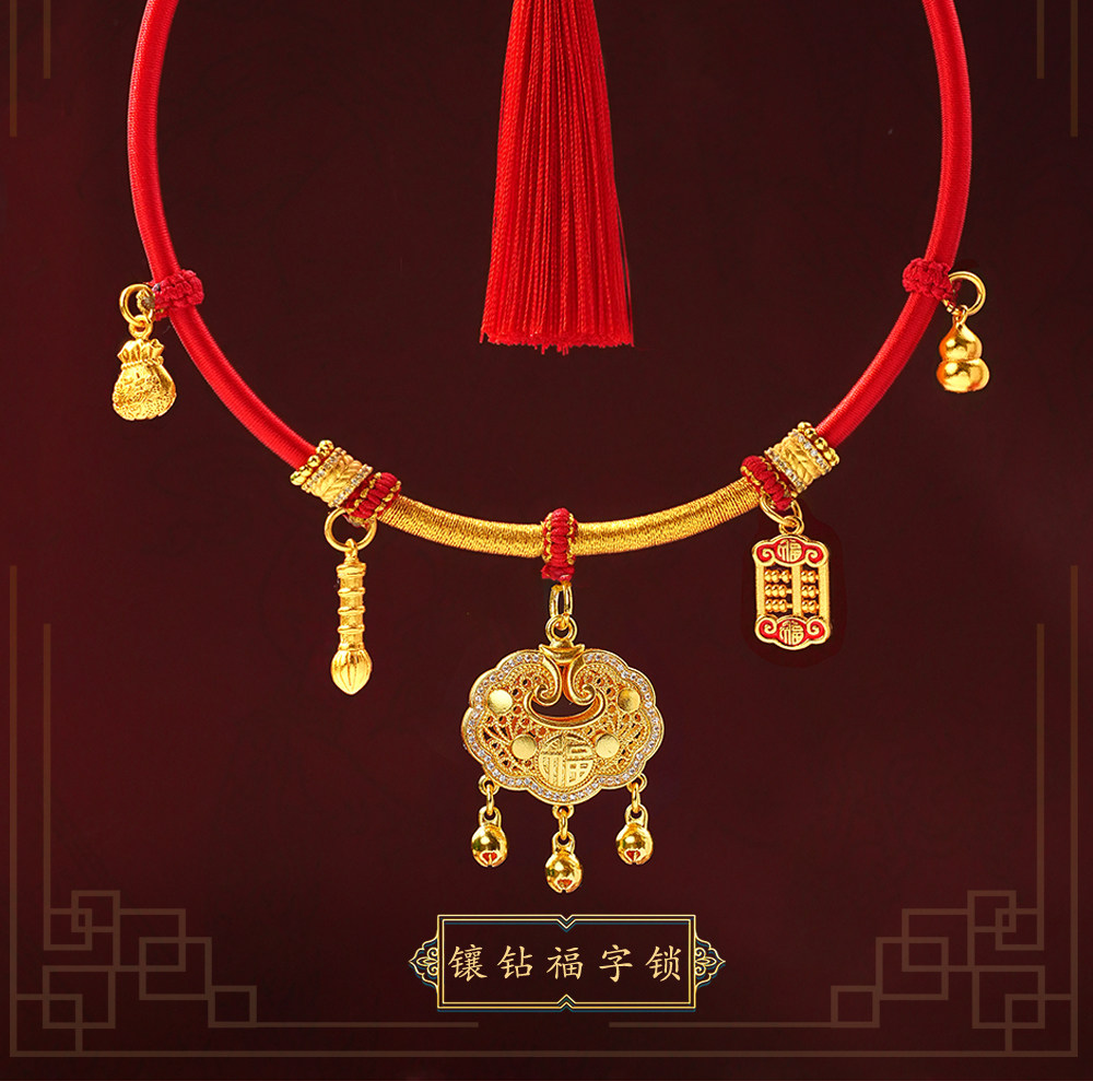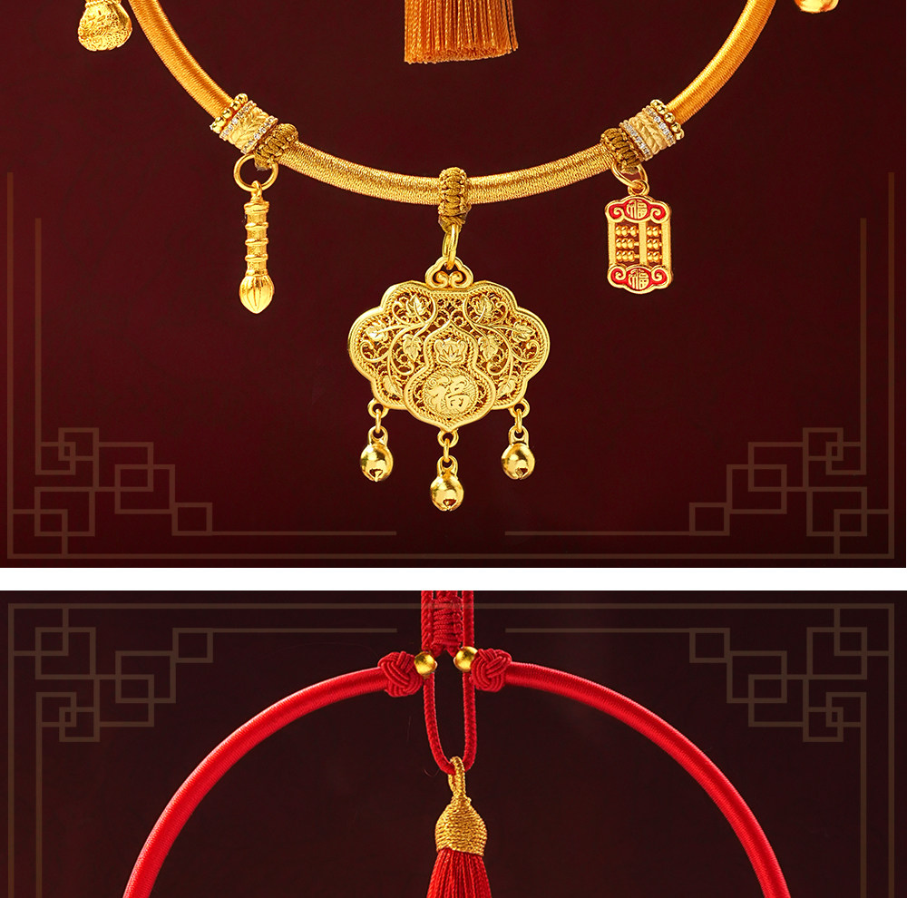 金店同款高品質沙金寶寶長命鎖紅色項圈平安鎖項鍊兒童滿月周嵗禮
