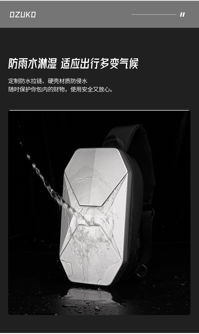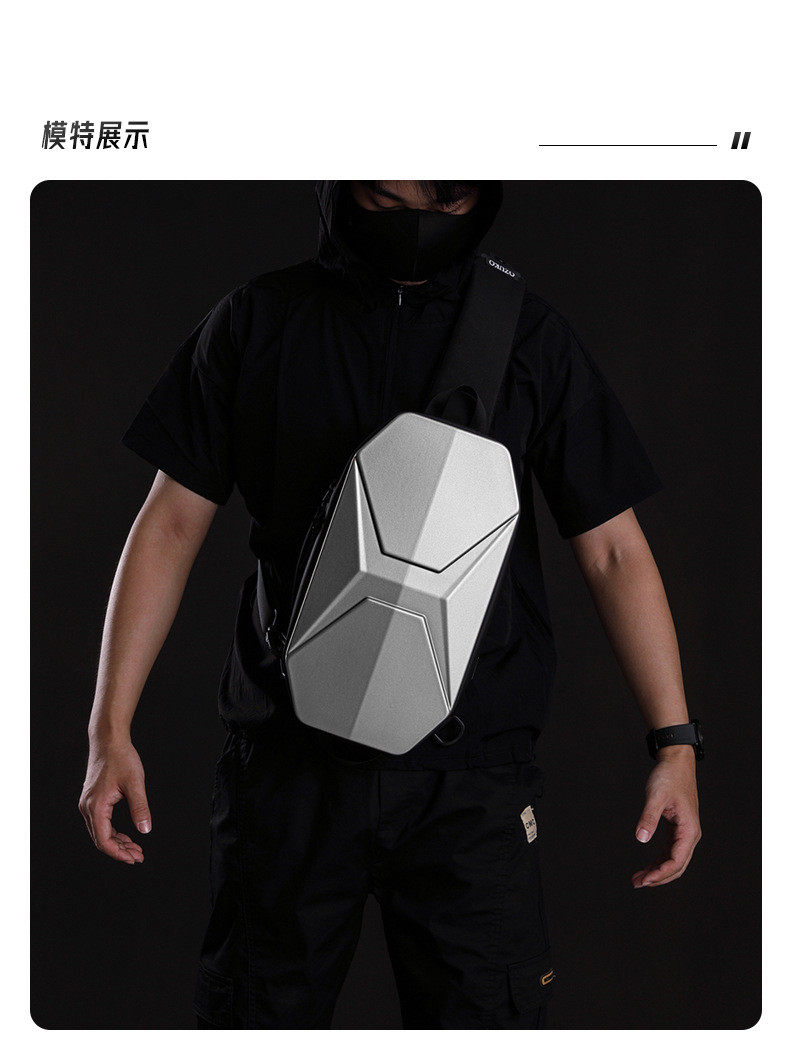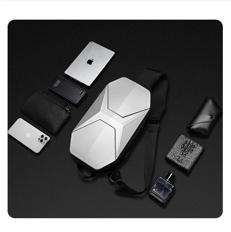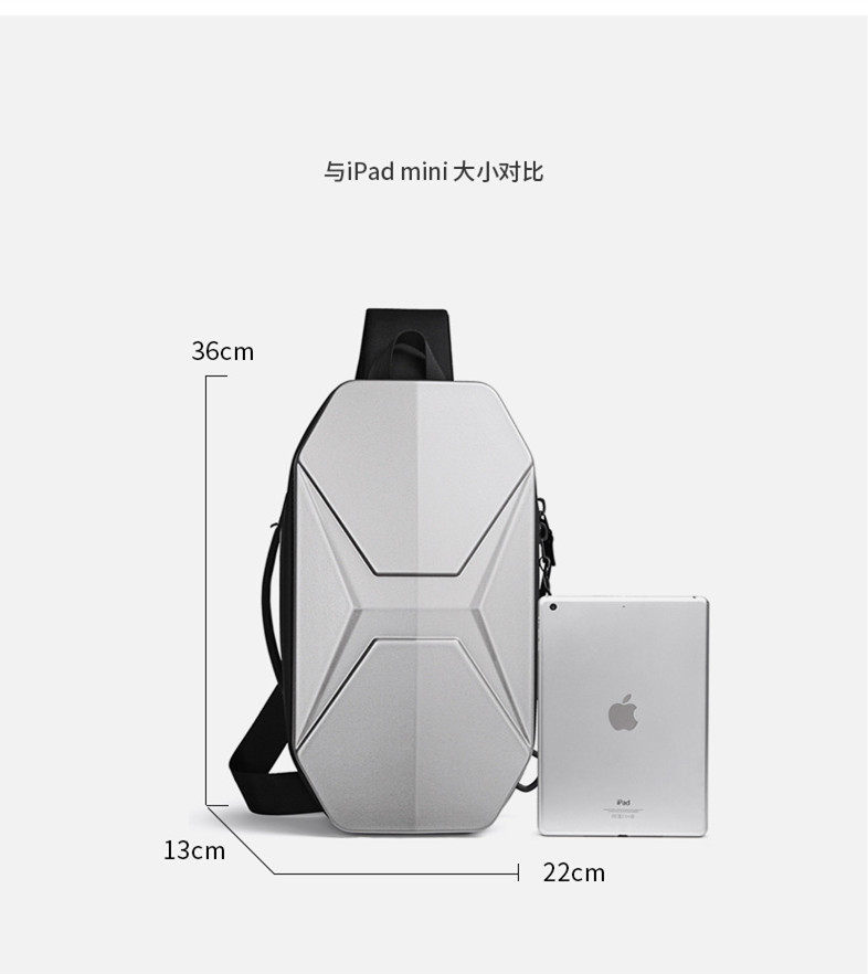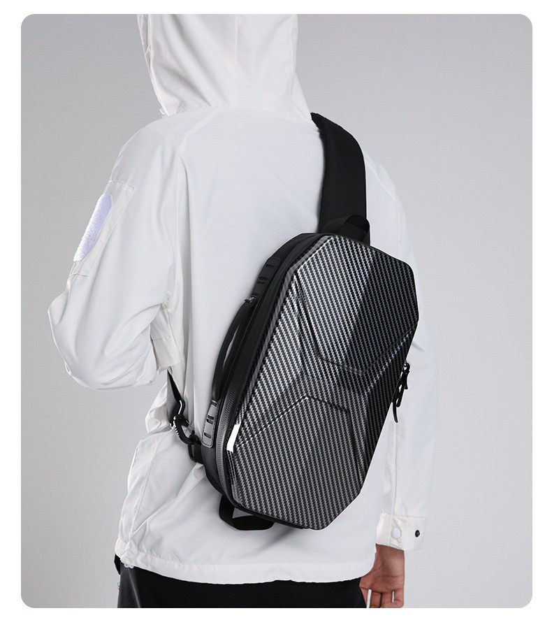 新款PC硬殼抗壓胸包男士休閒潮酷防水單肩斜後後背包9.7寸機能騎行包