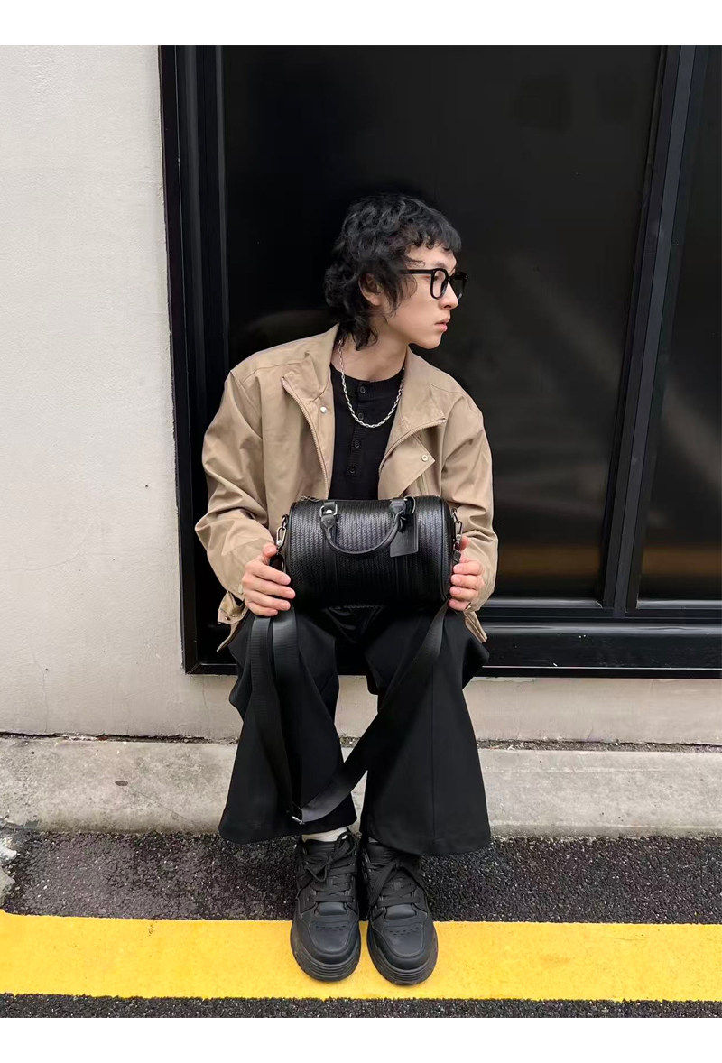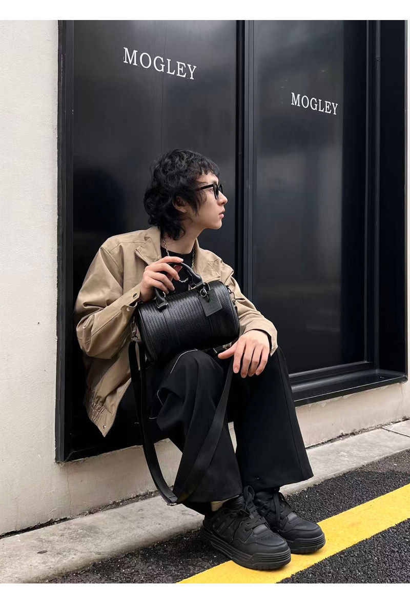NIN高級感暗黑系原宿復古單肩腋下手提枕頭包波士頓男女街頭潮牌
