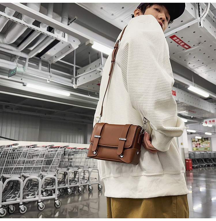 新款小衆高級感休閒斜後後背包男ins潮牌小包小方包輕奢時尚盒子包女
