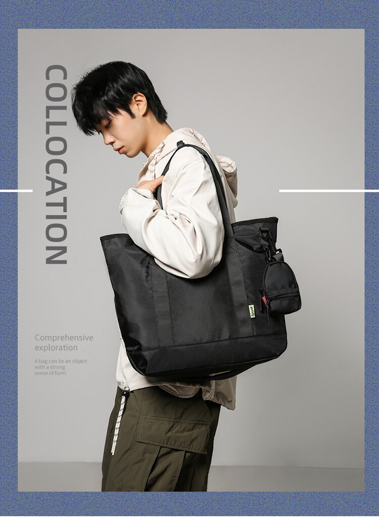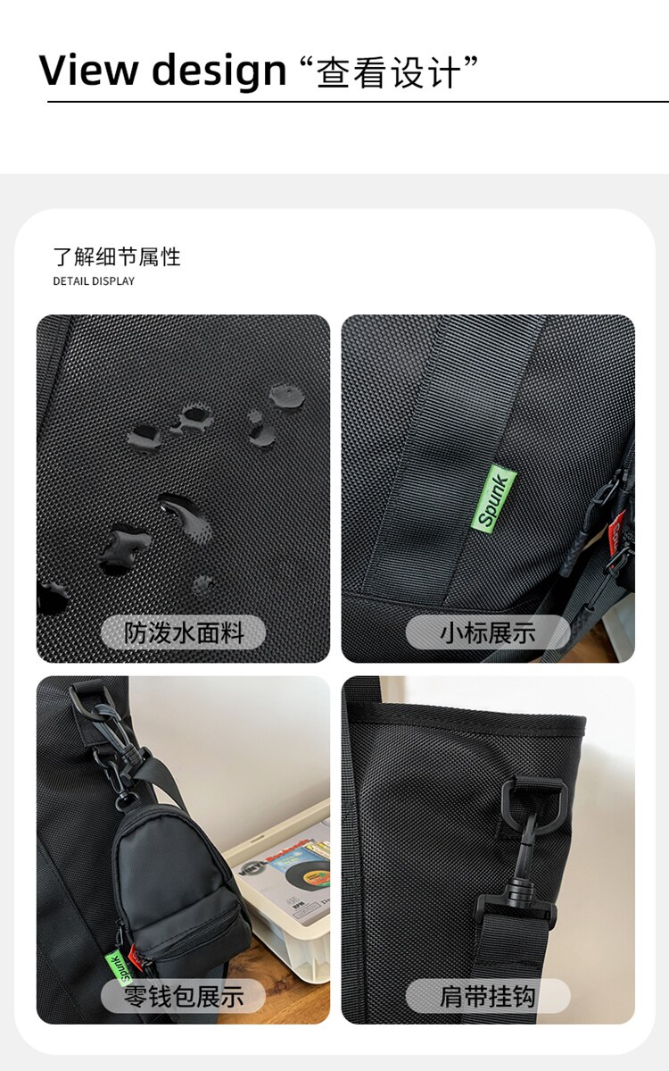 潮牌工裝風斜後後背包多功能大容量運動手提包通勤徒步學生上課單肩包