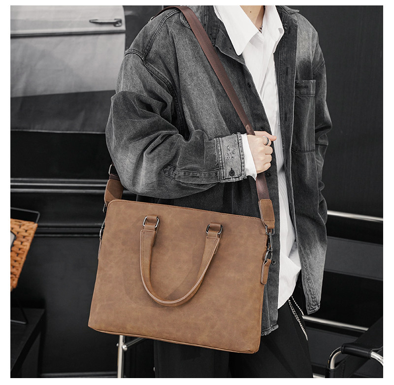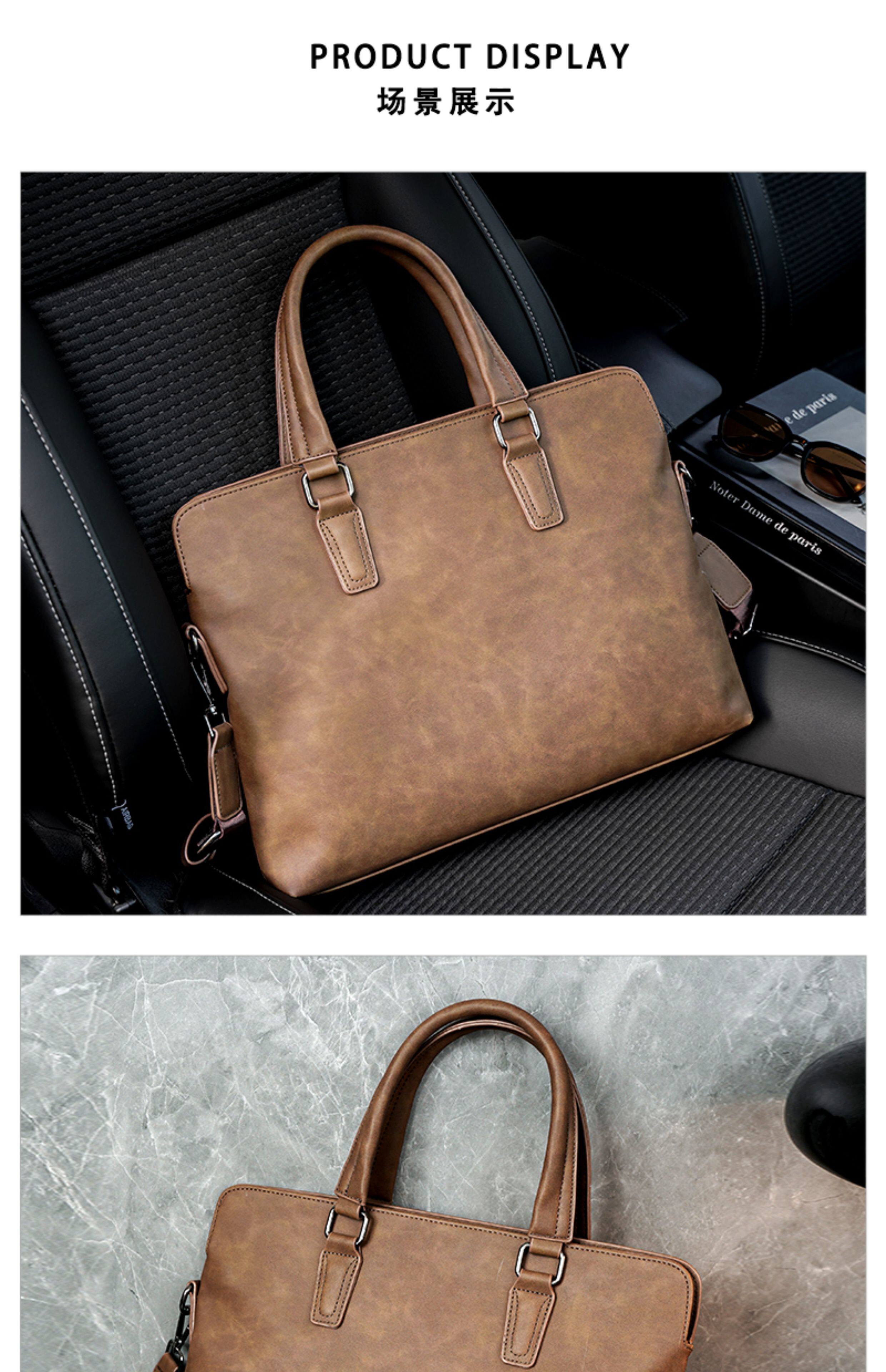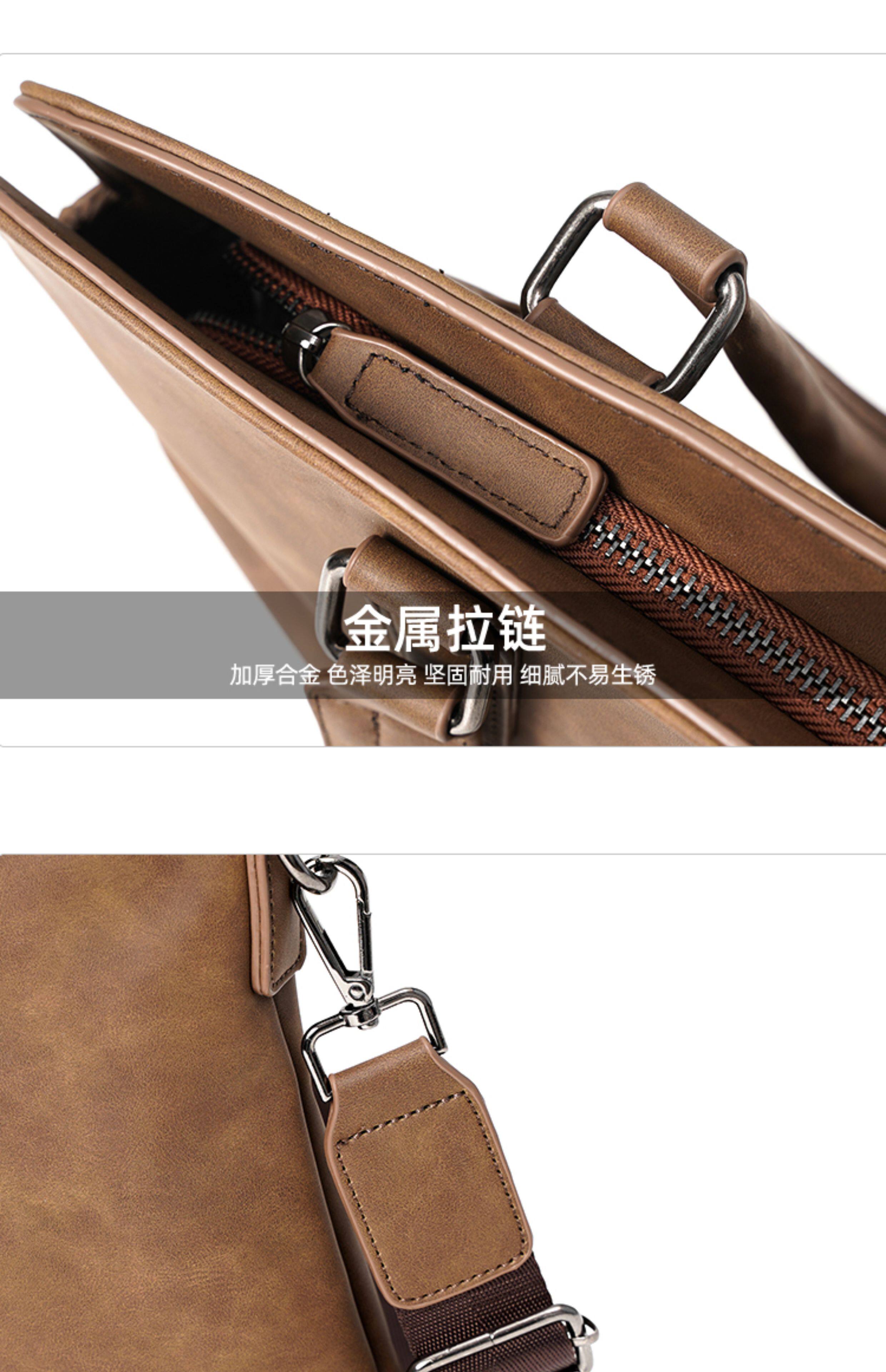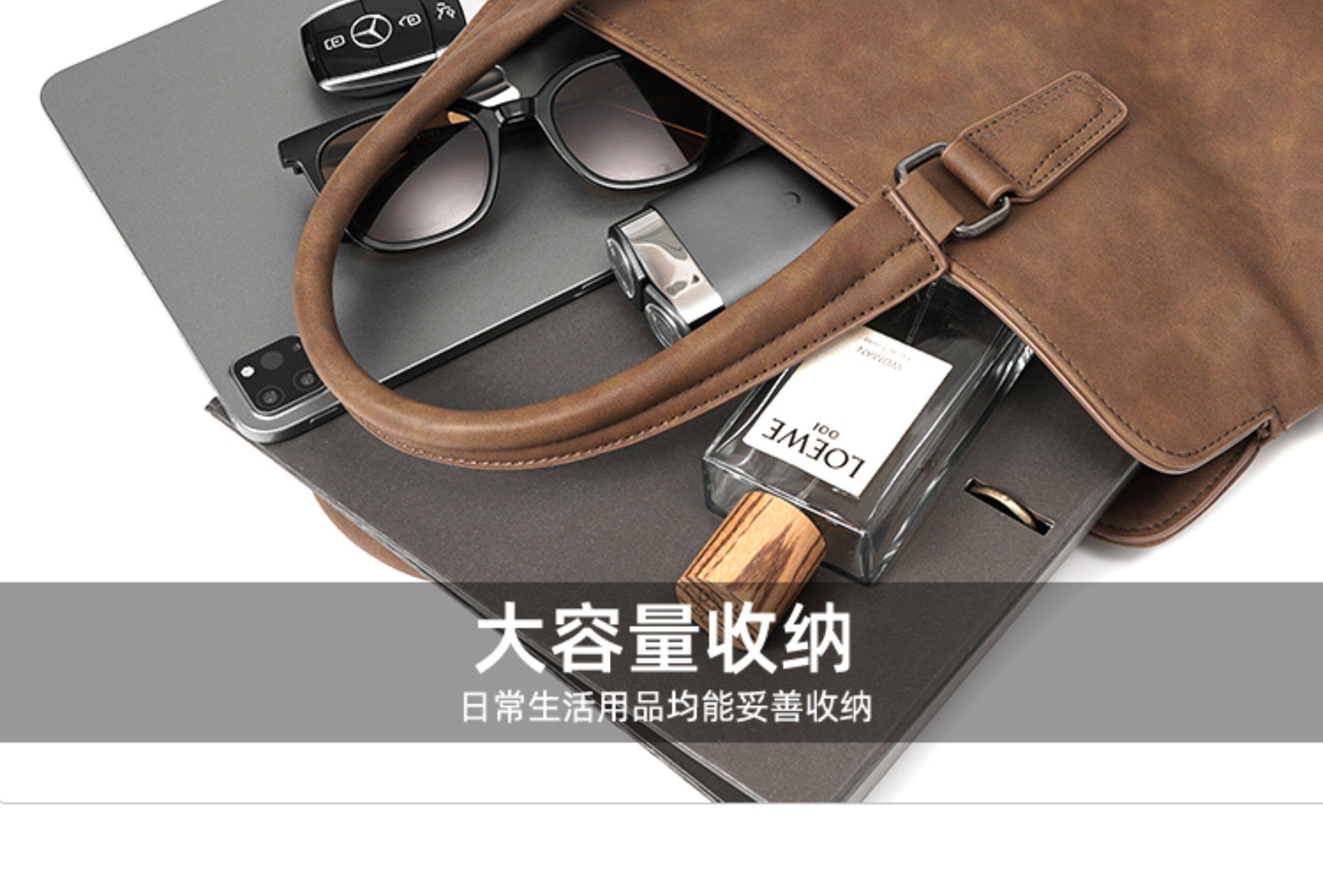 復古商務休閒男士公文包韓版男包單肩斜後後背包橫款皮質手提包文件包