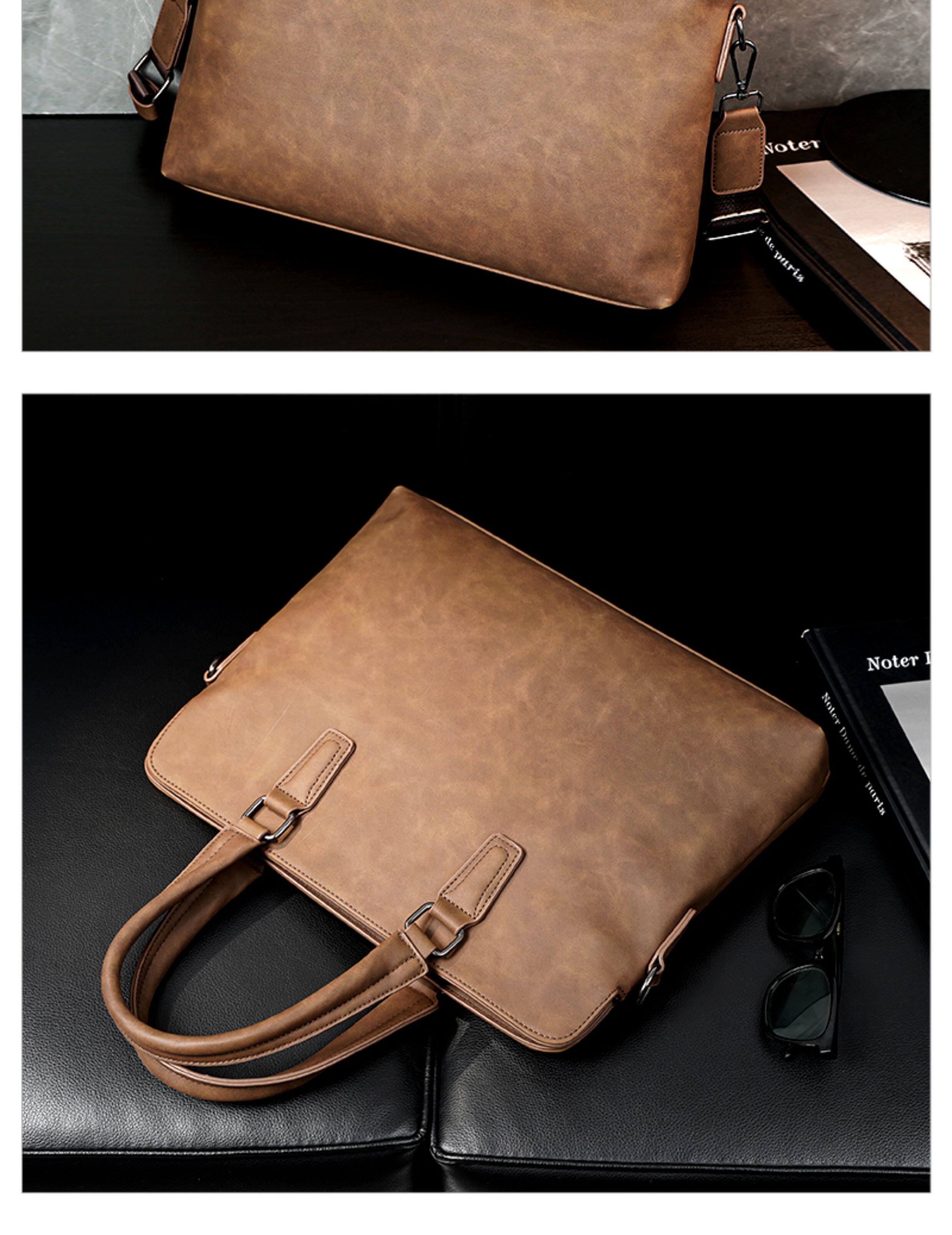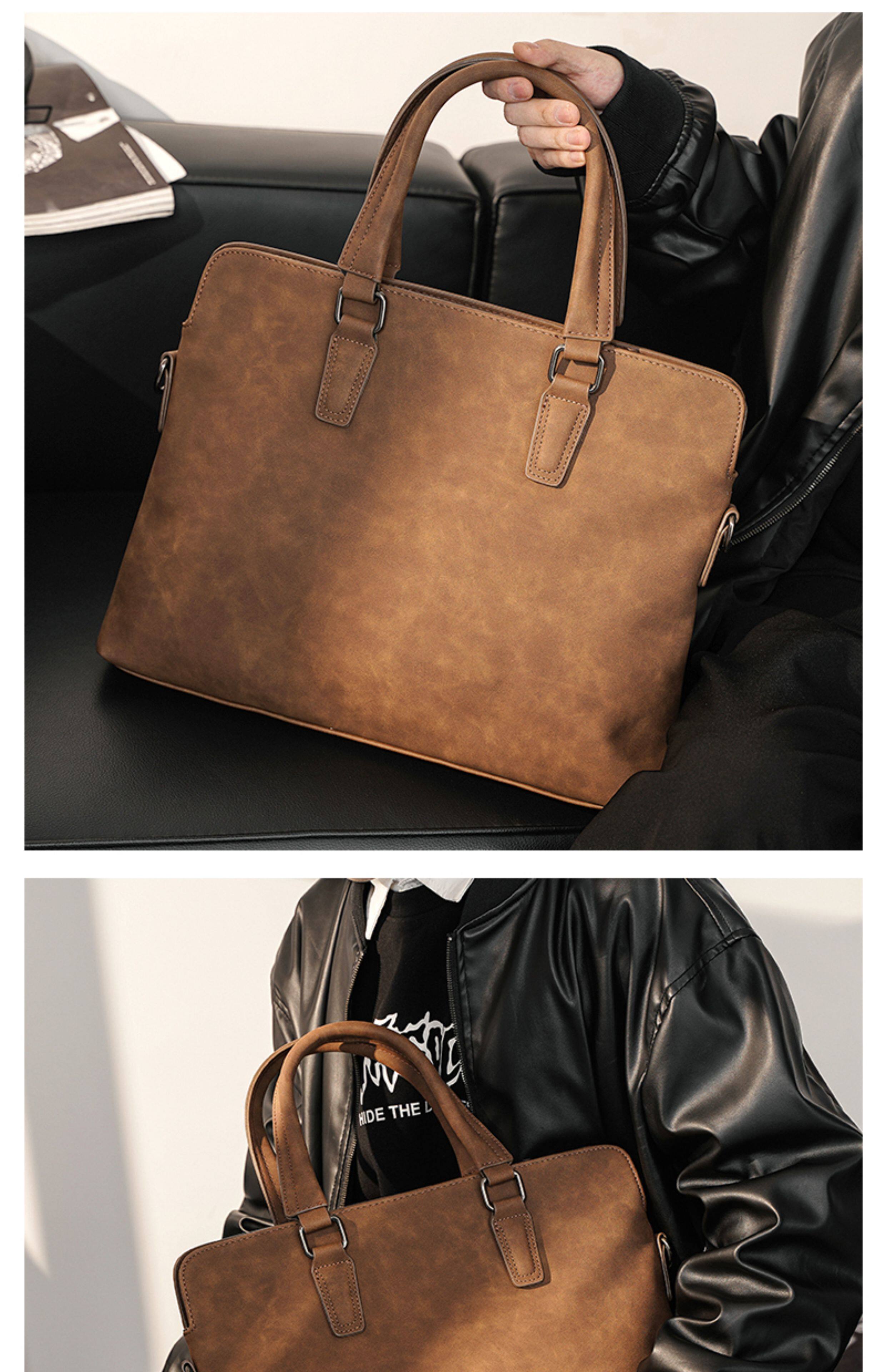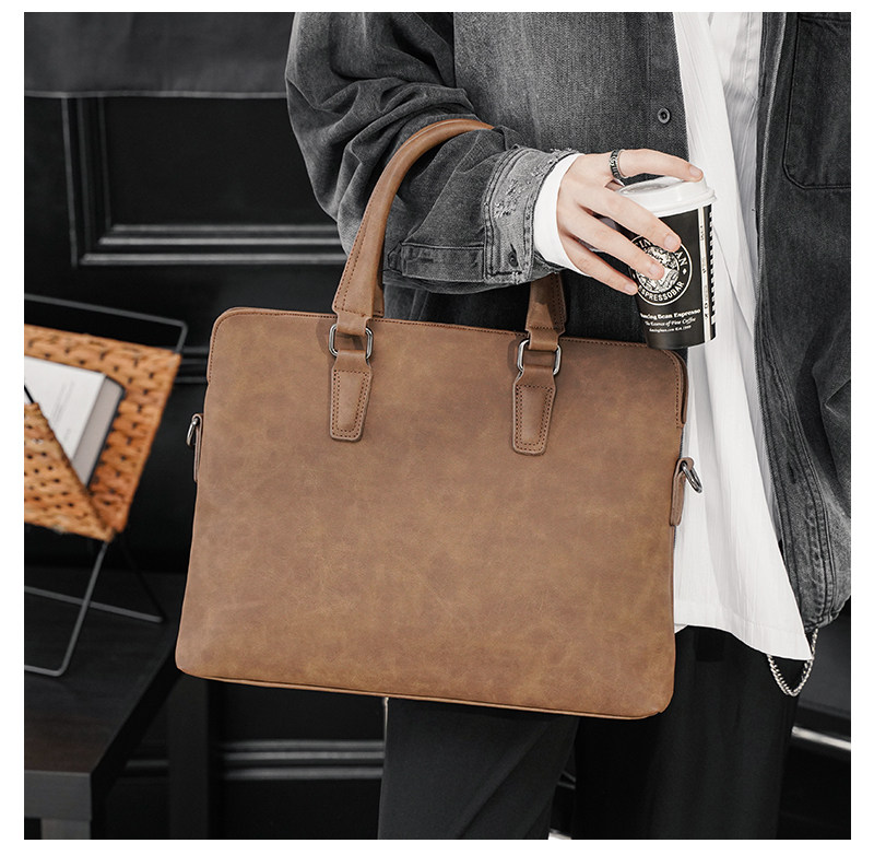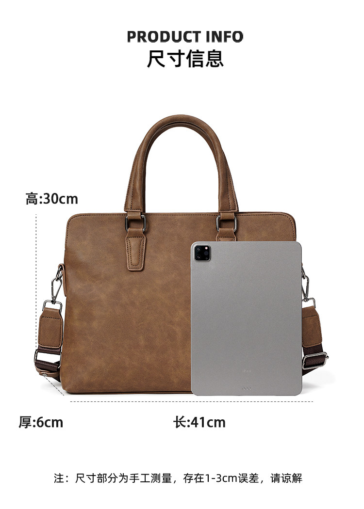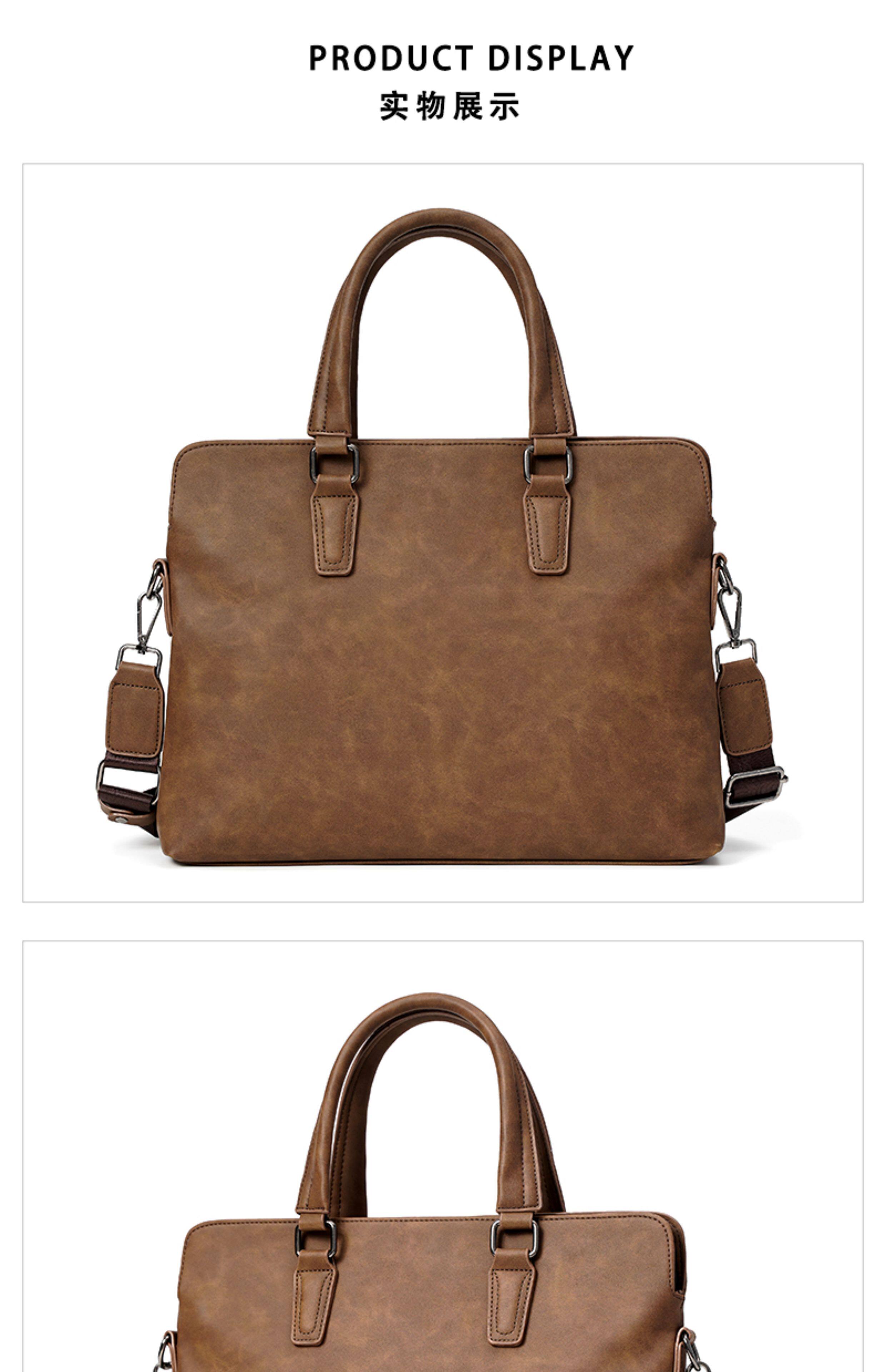 復古商務休閒男士公文包韓版男包單肩斜後後背包橫款皮質手提包文件包