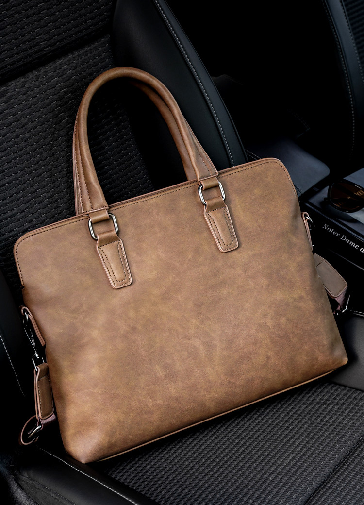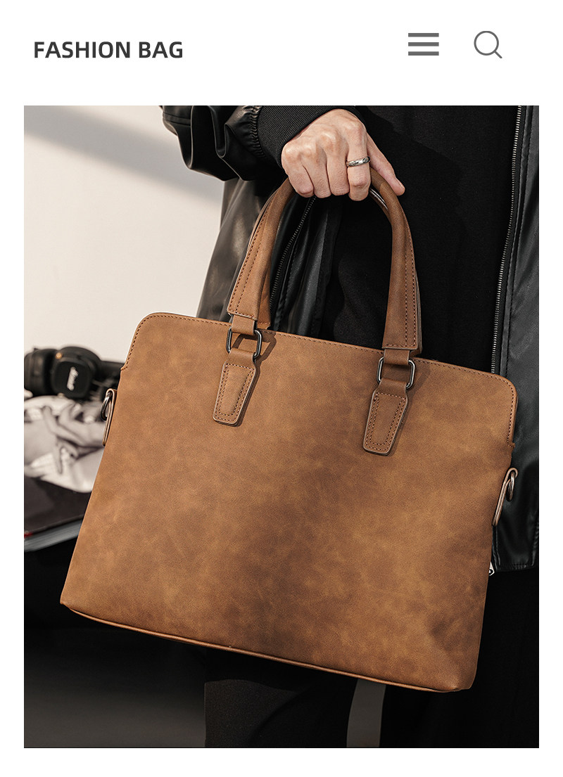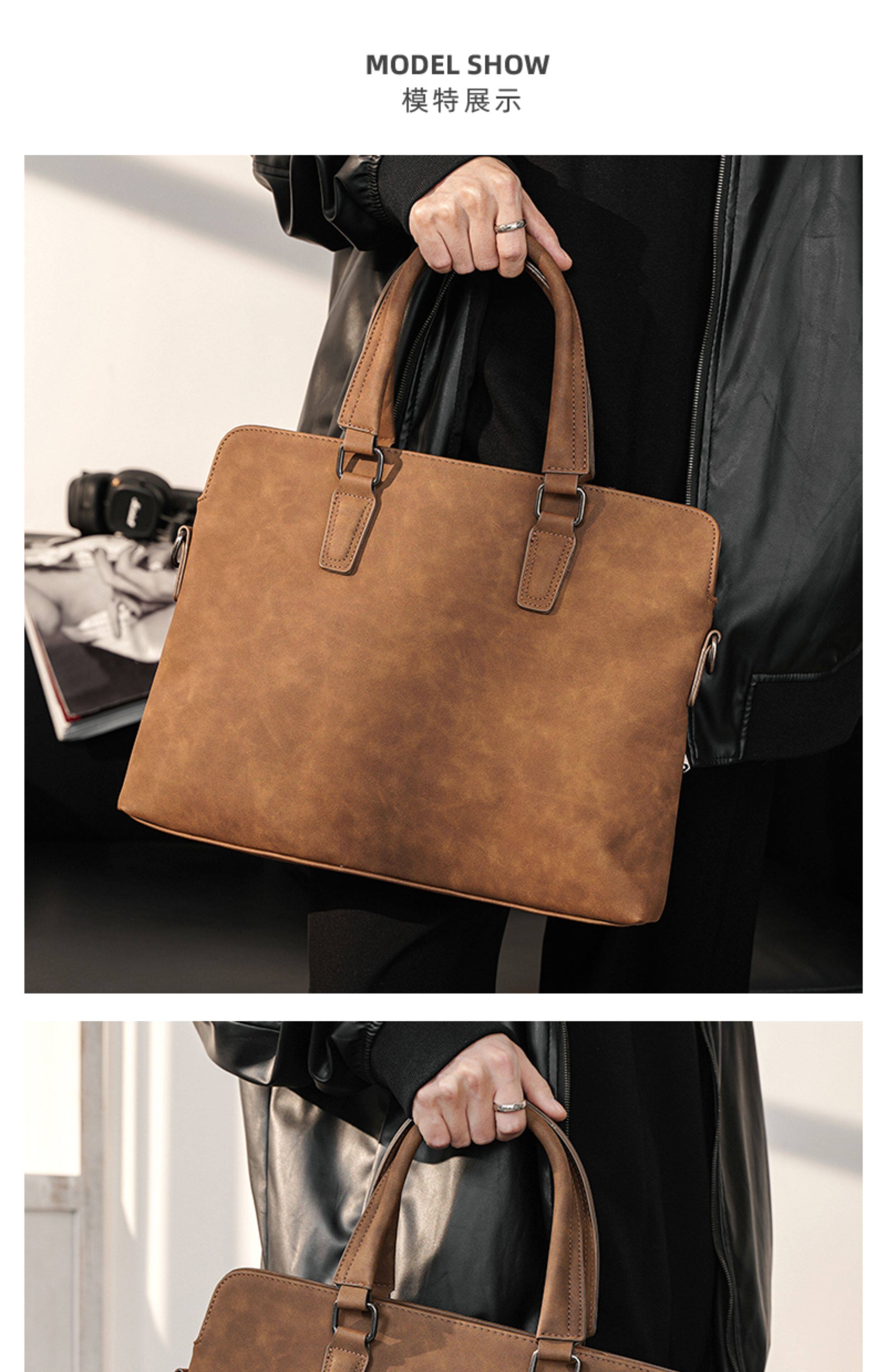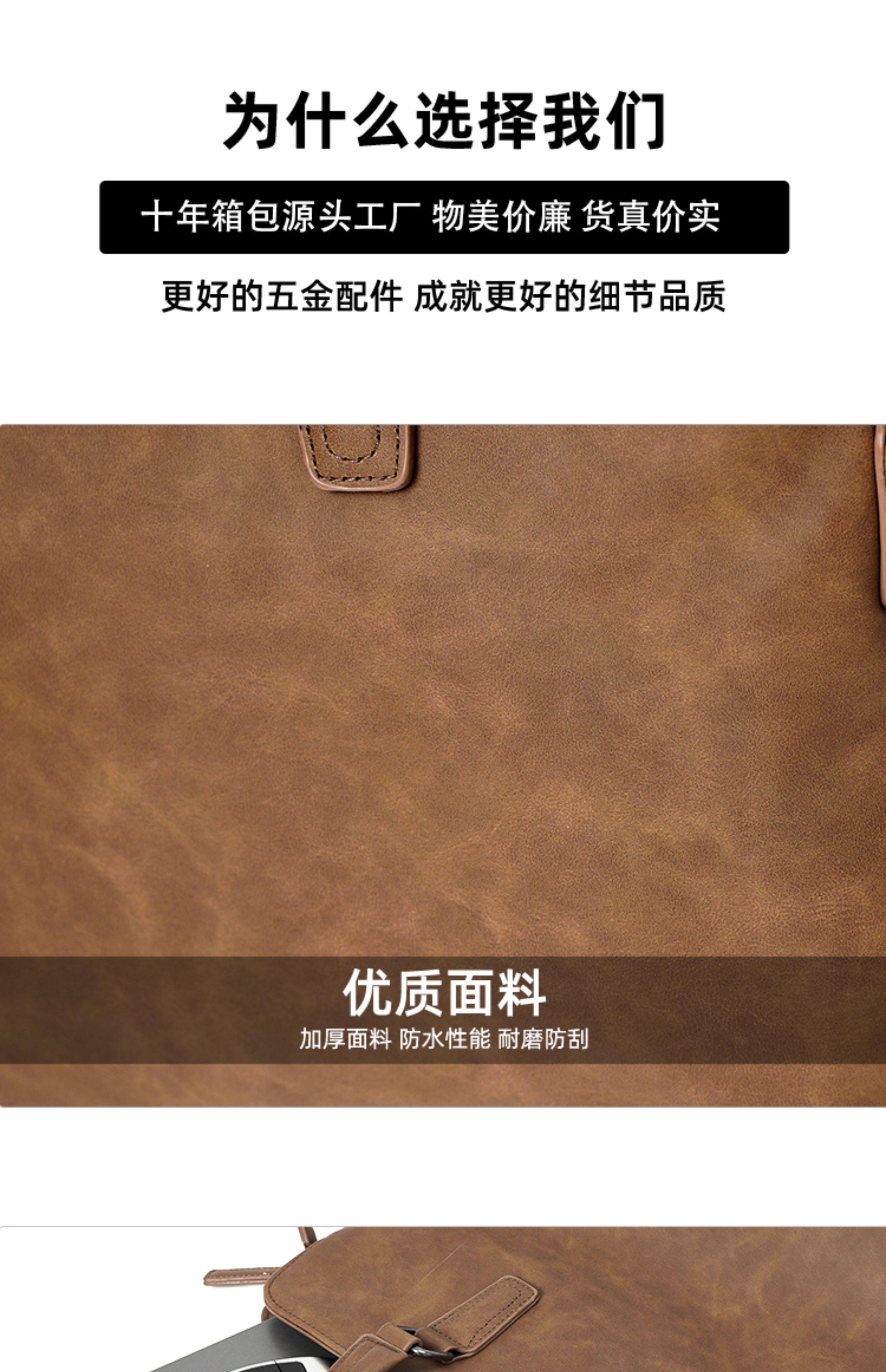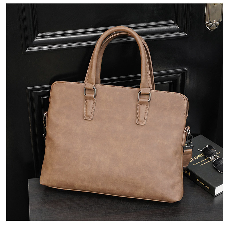 復古商務休閒男士公文包韓版男包單肩斜後後背包橫款皮質手提包文件包