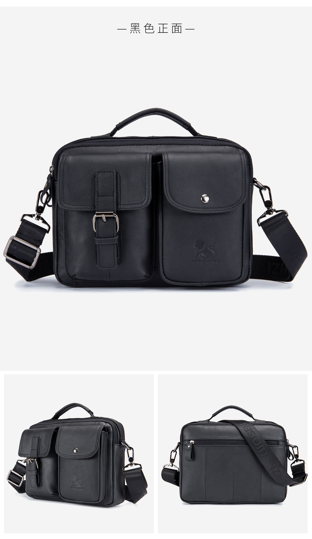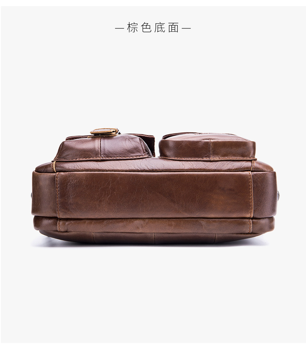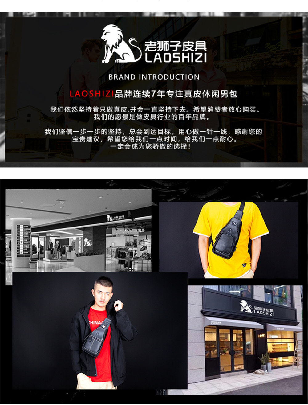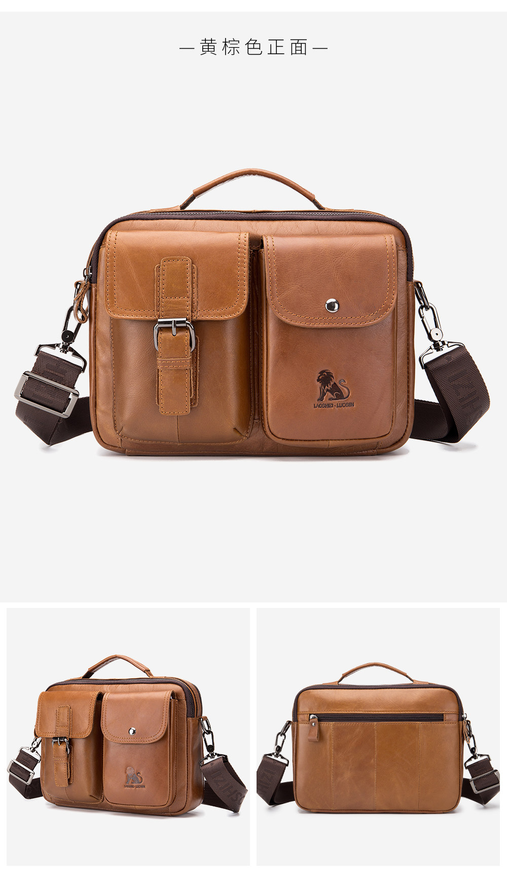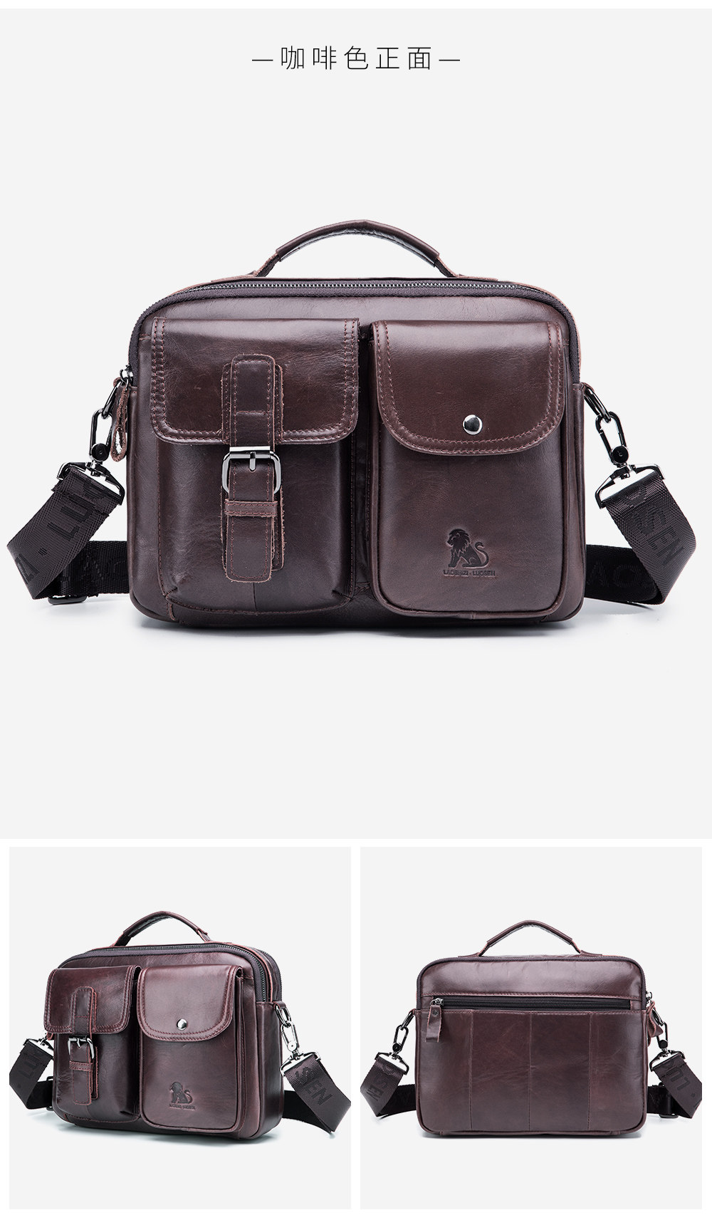 老獅子牛皮男士斜後後背包 復古休閒單肩包男 男款頭層牛皮迷你小挎包