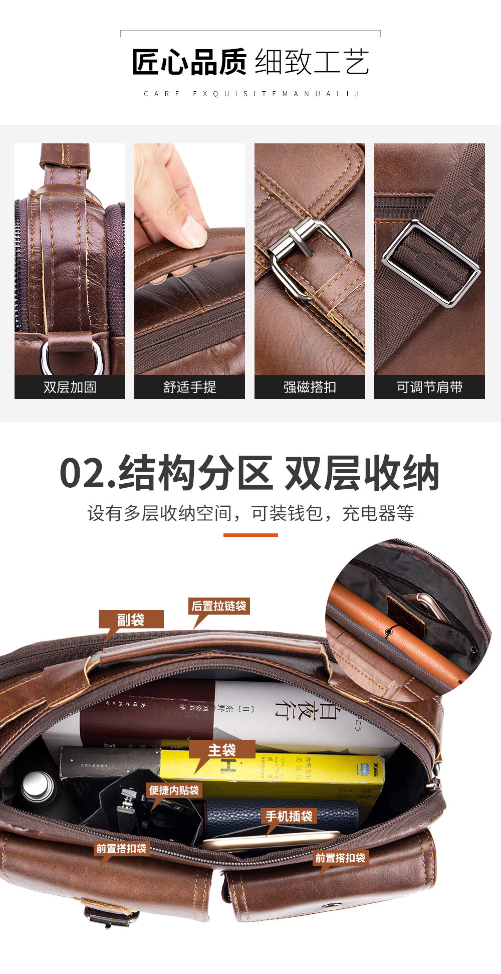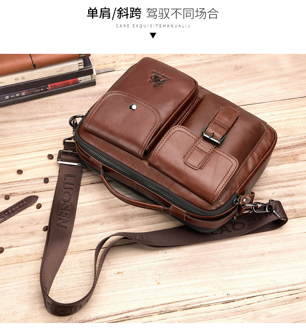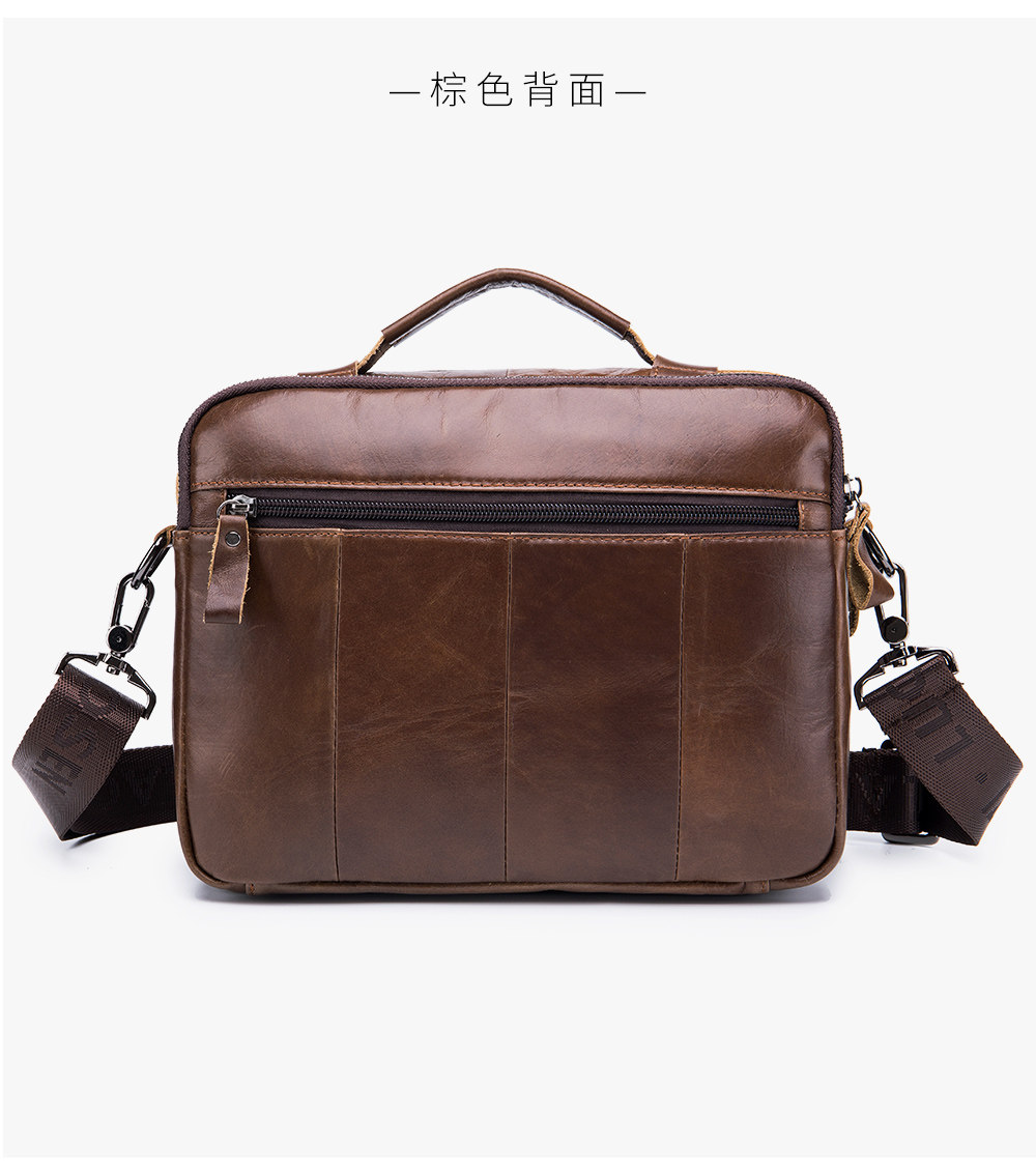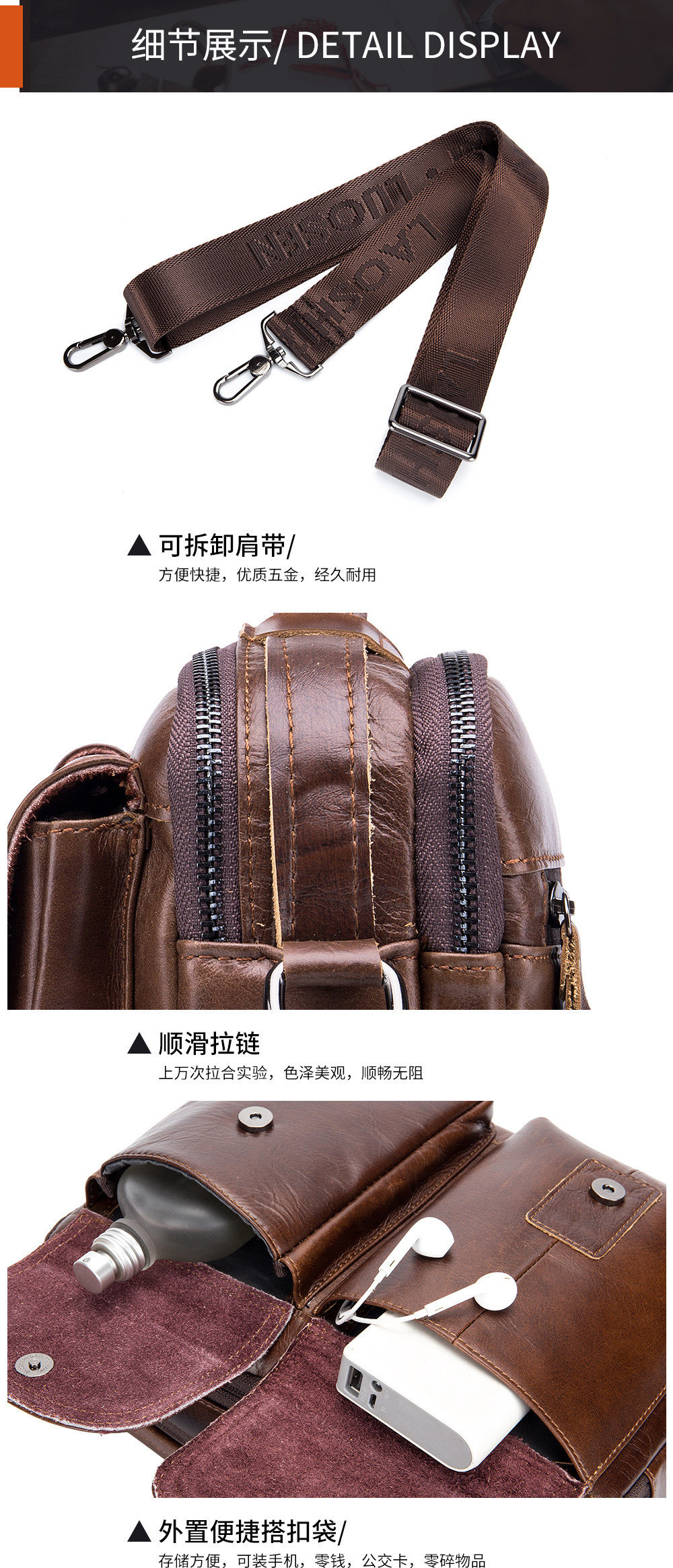 老獅子牛皮男士斜後後背包 復古休閒單肩包男 男款頭層牛皮迷你小挎包