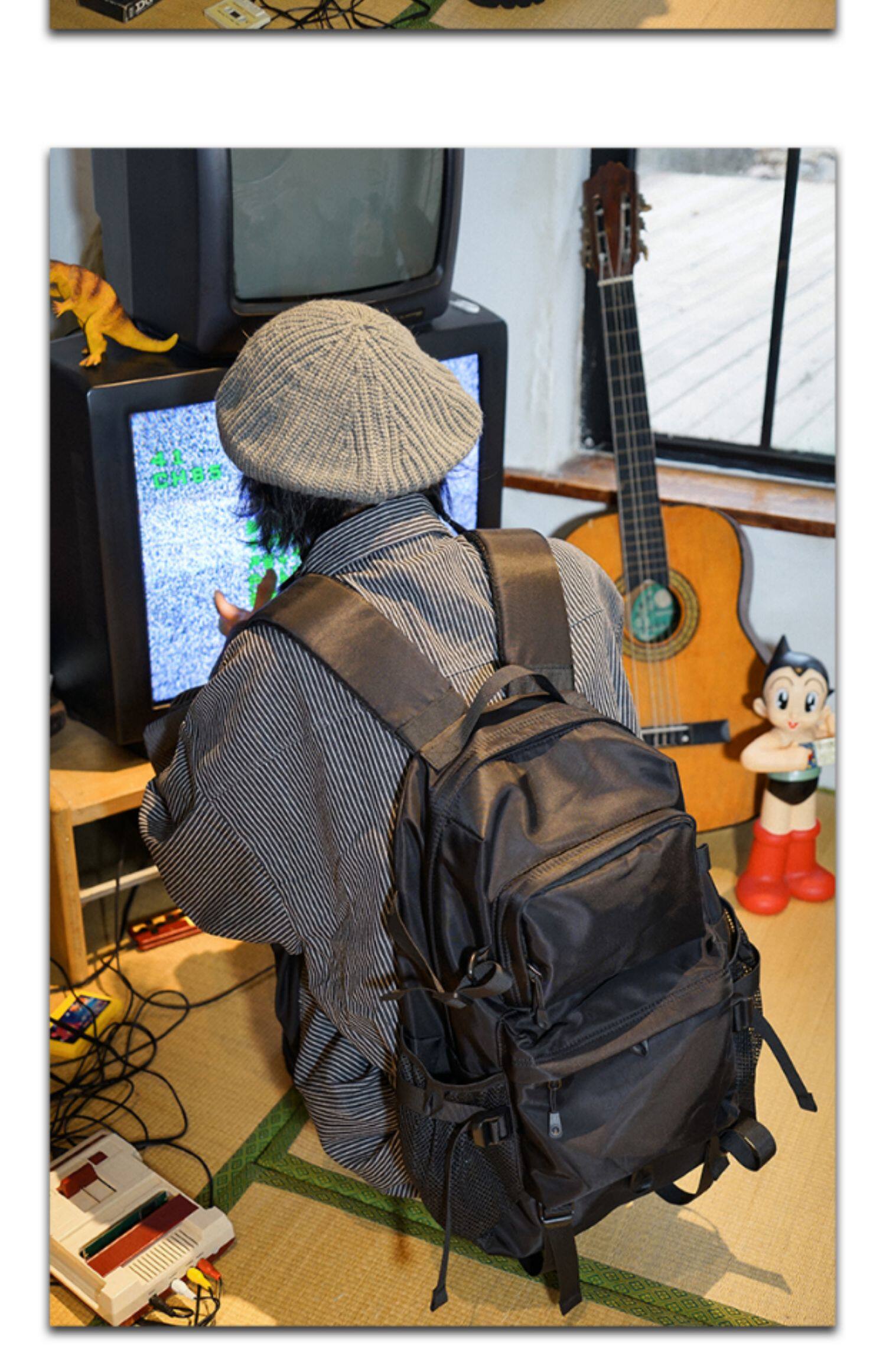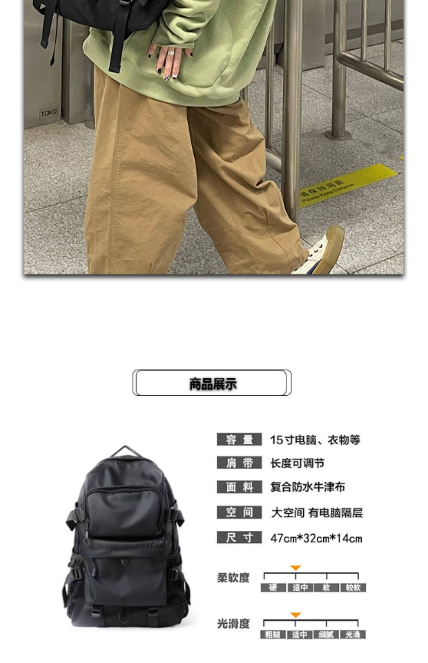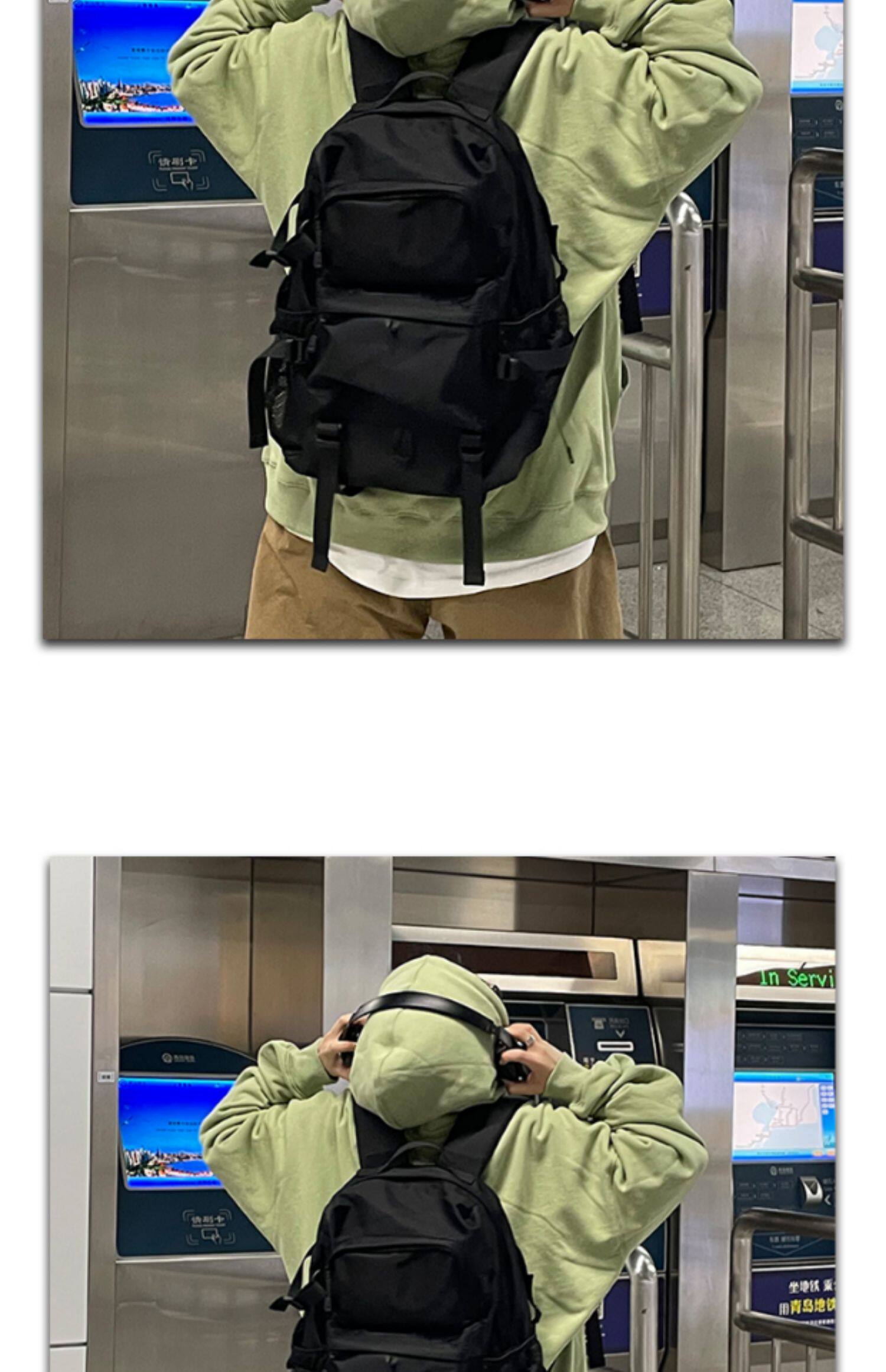 一碗士多 日系潮流雙肩包男大容量ins暗黑工裝運動後後背包書包女學生