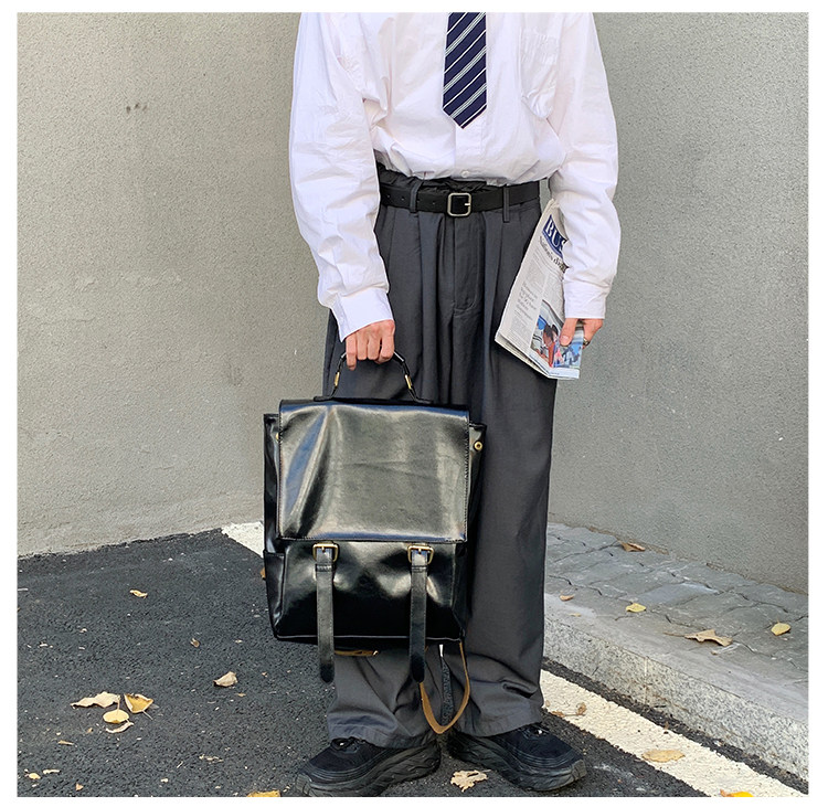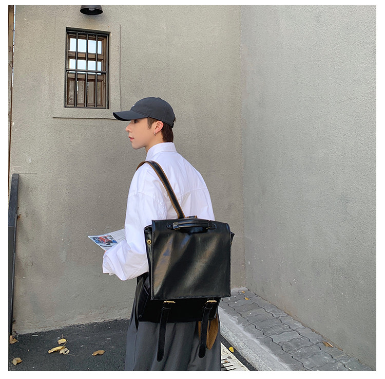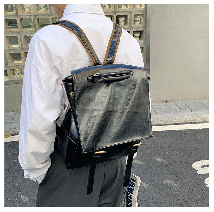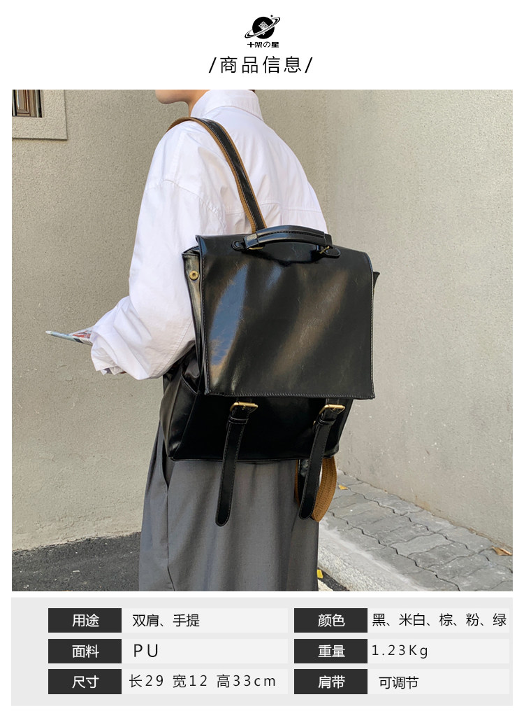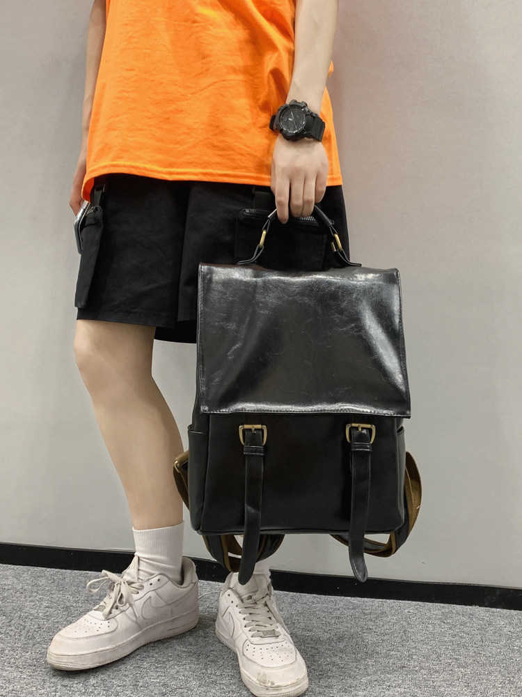 百搭皮質繙蓋休閒雙肩包日系復古大容量後後背包英倫學院風男電腦書包