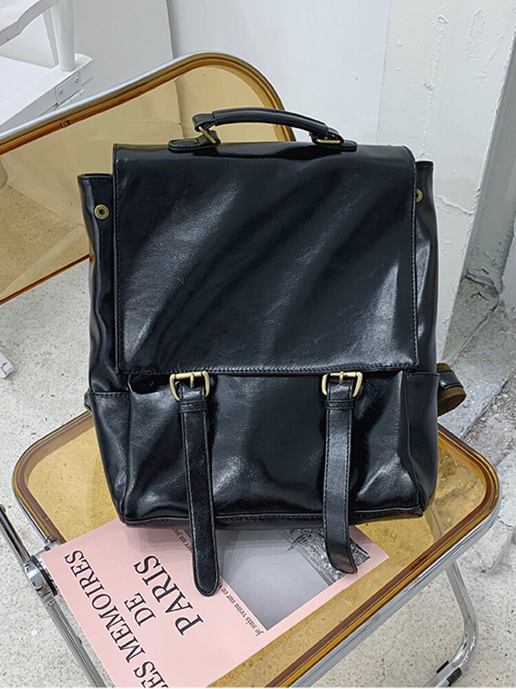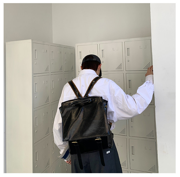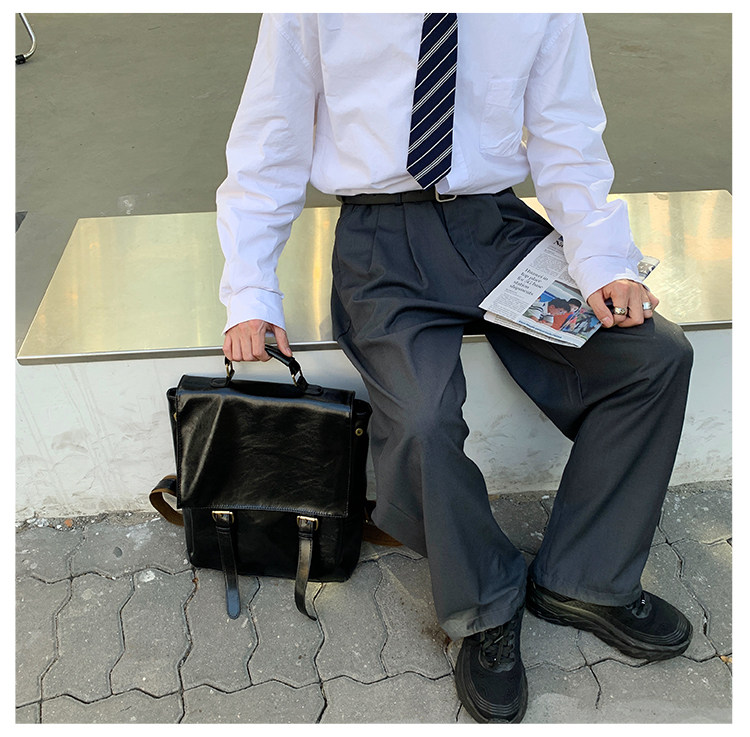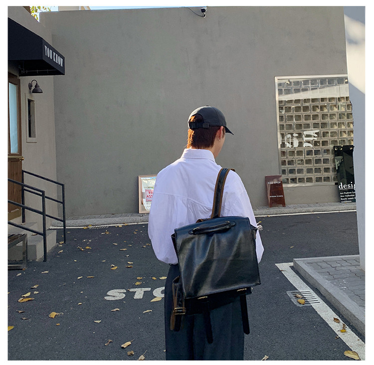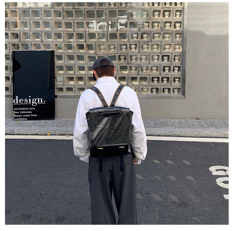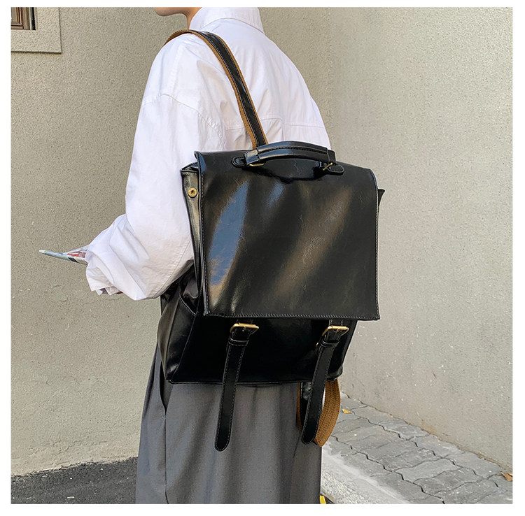 百搭皮質繙蓋休閒雙肩包日系復古大容量後後背包英倫學院風男電腦書包
