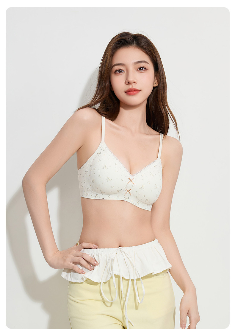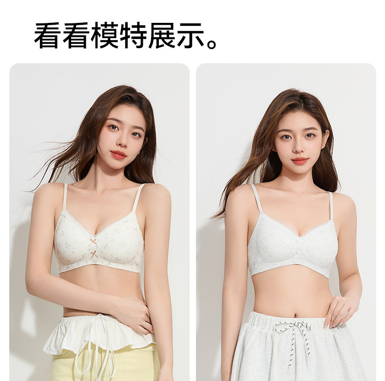 三福2026春夏新款薄B杯聚攏文胸女清新碎花蕾絲邊無感內衣503581