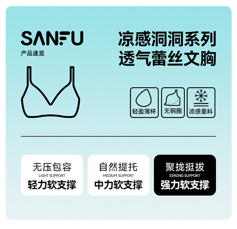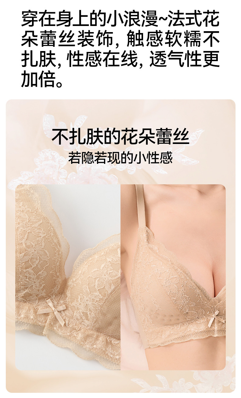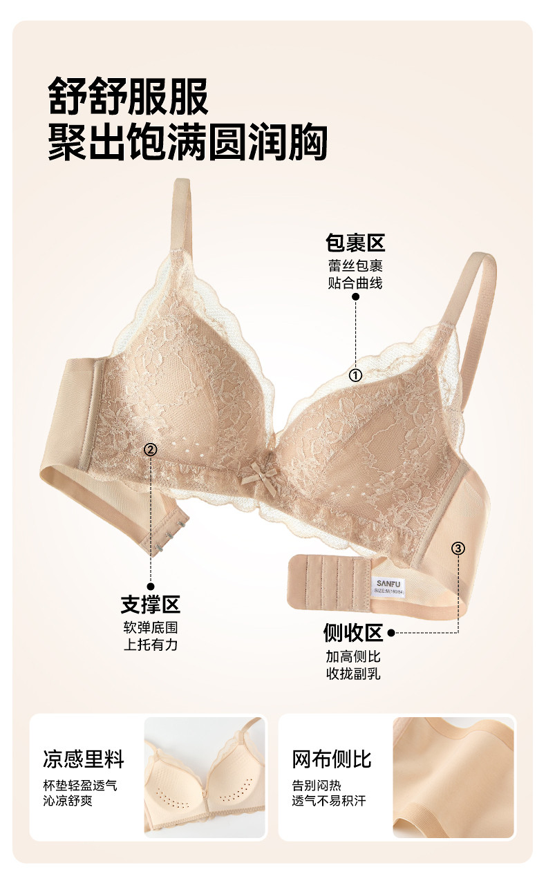 【透氣洞洞杯】三福內衣女士薄杯無鋼圈聚攏文胸蕾絲性感法式胸罩