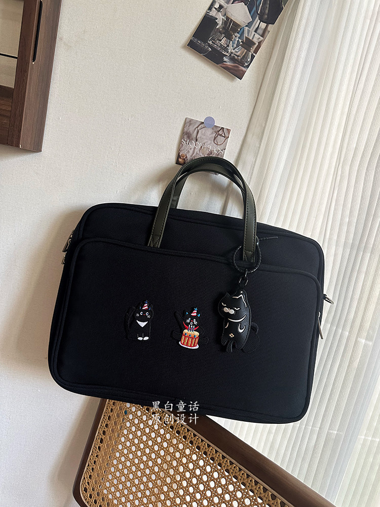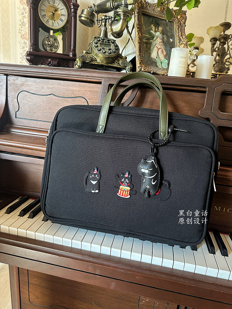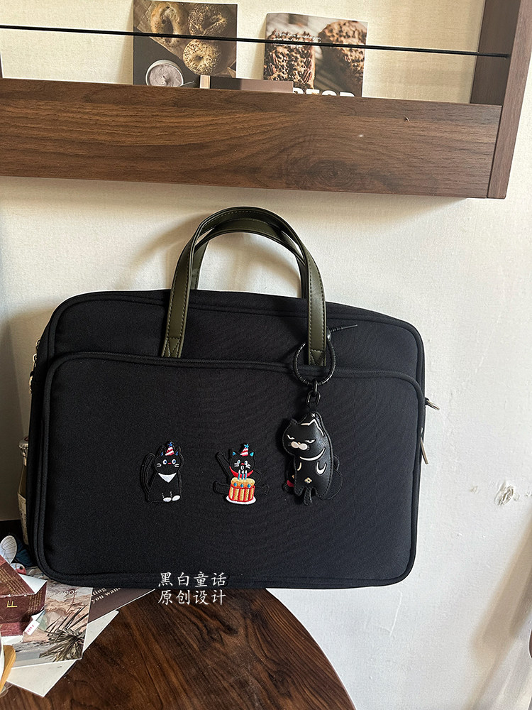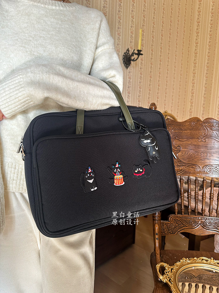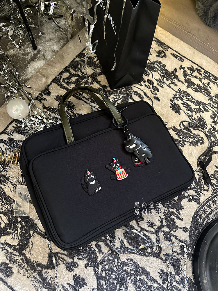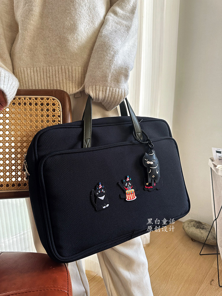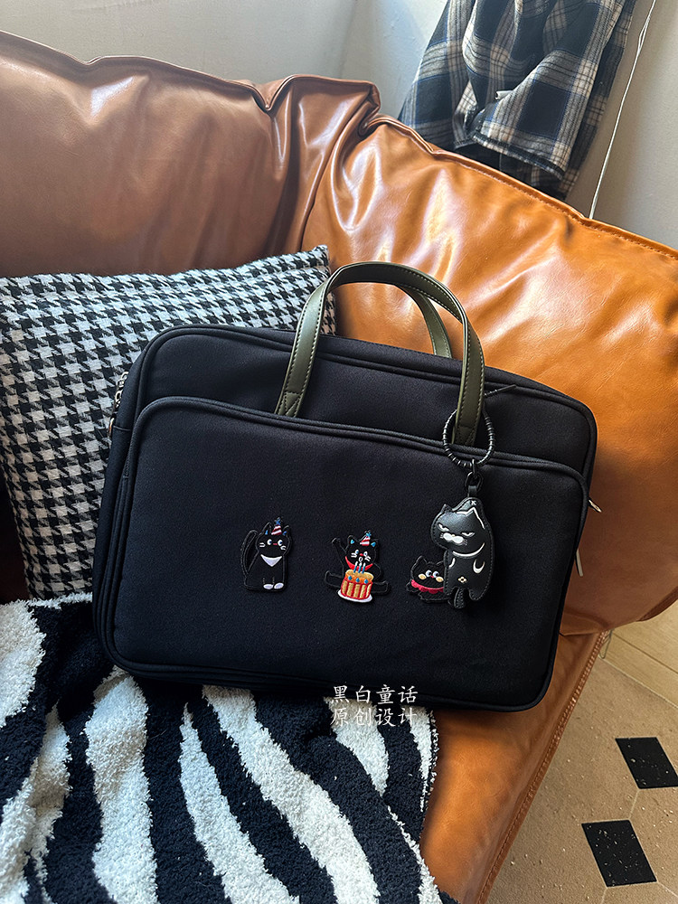 小衆高級感厭世貓卡通貼布大容量托特筆記型電腦包16寸女加厚遊戯本通勤收納包適用拯救者y7000蘋果Mac13.3寸