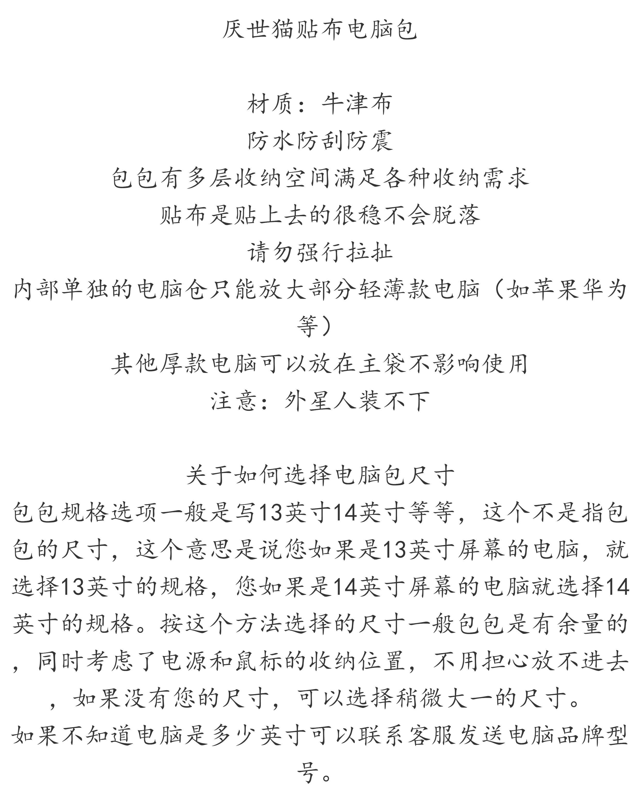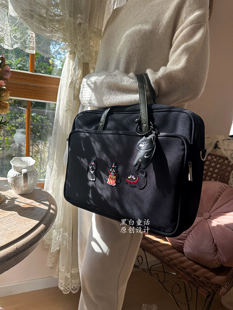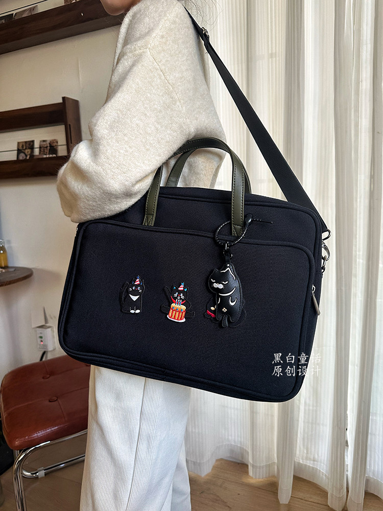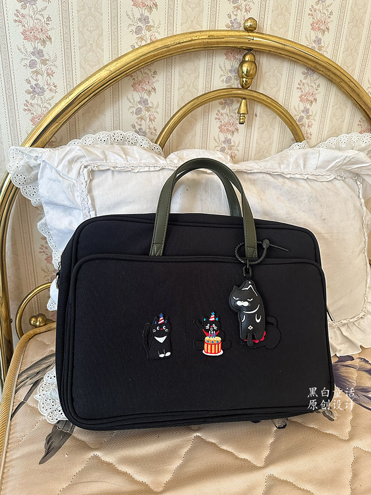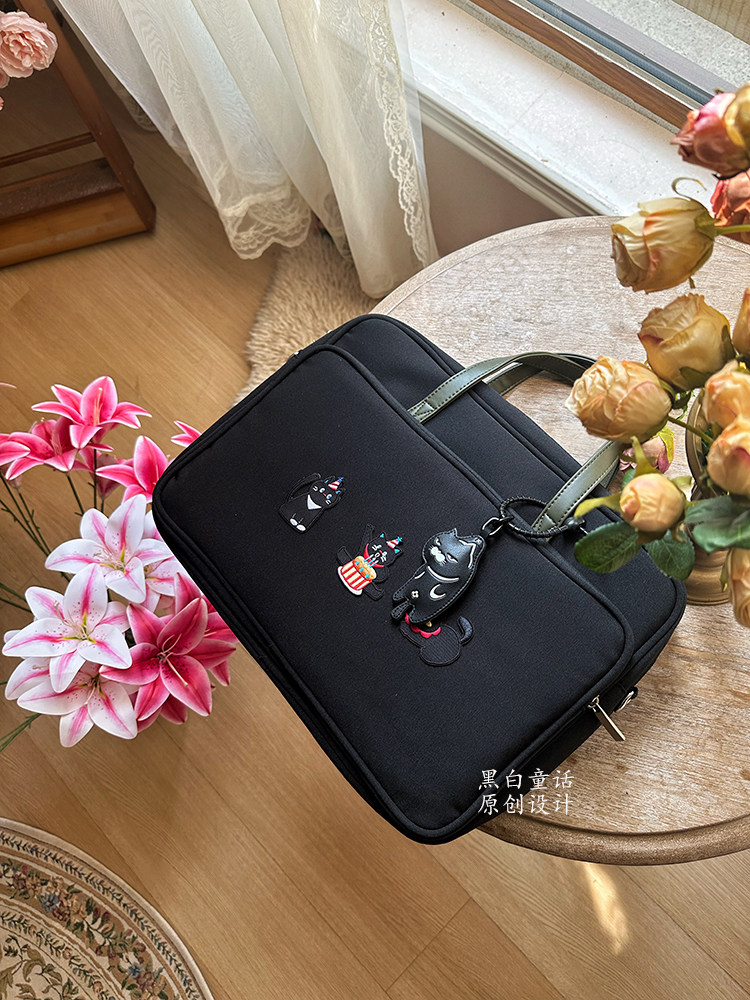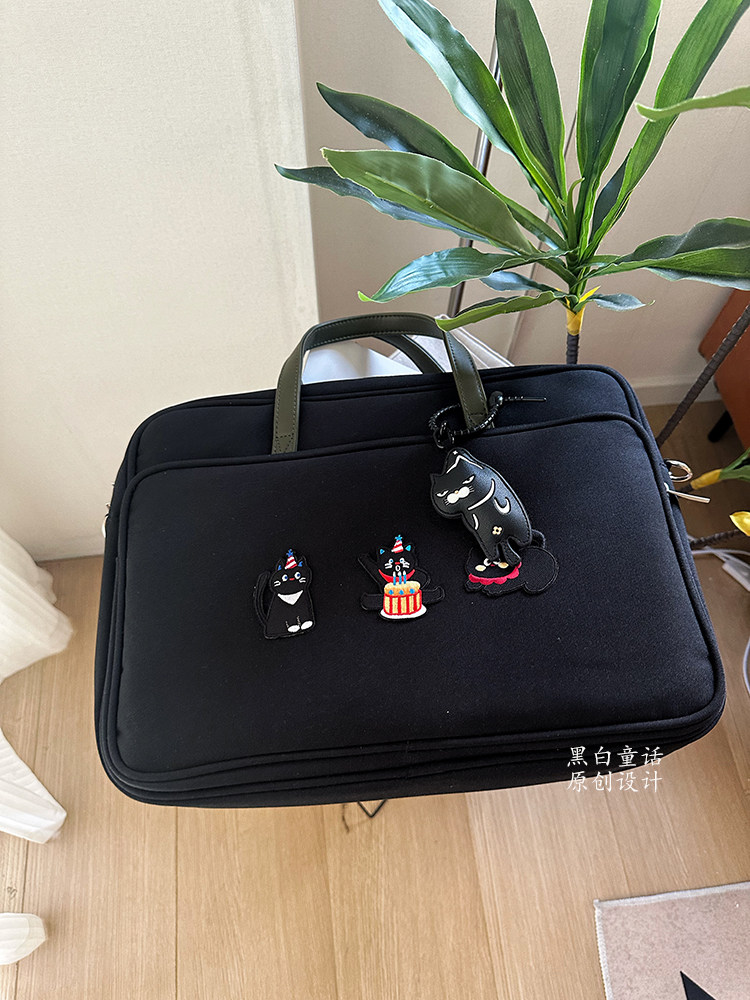 小衆高級感厭世貓卡通貼布大容量托特筆記型電腦包16寸女加厚遊戯本通勤收納包適用拯救者y7000蘋果Mac13.3寸