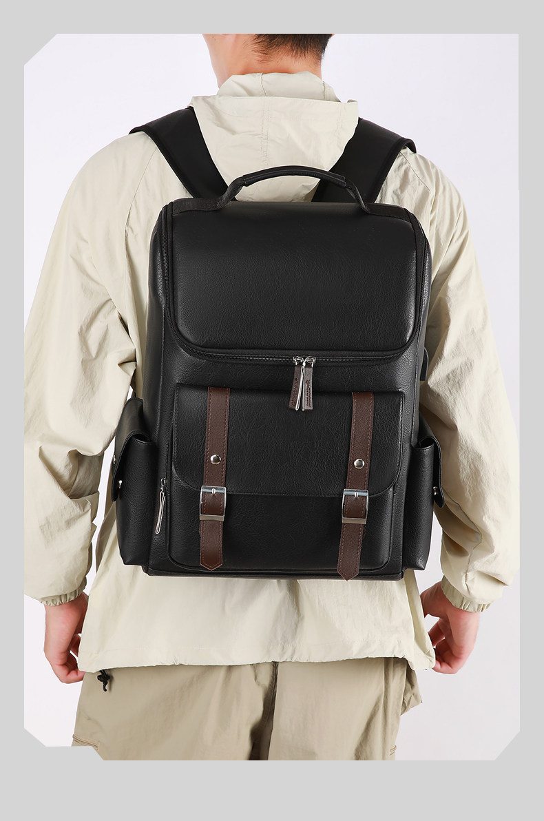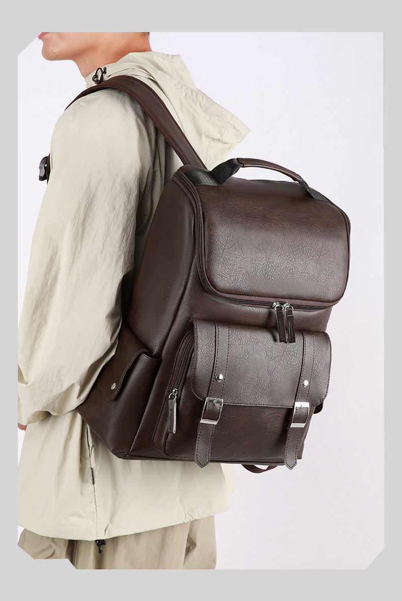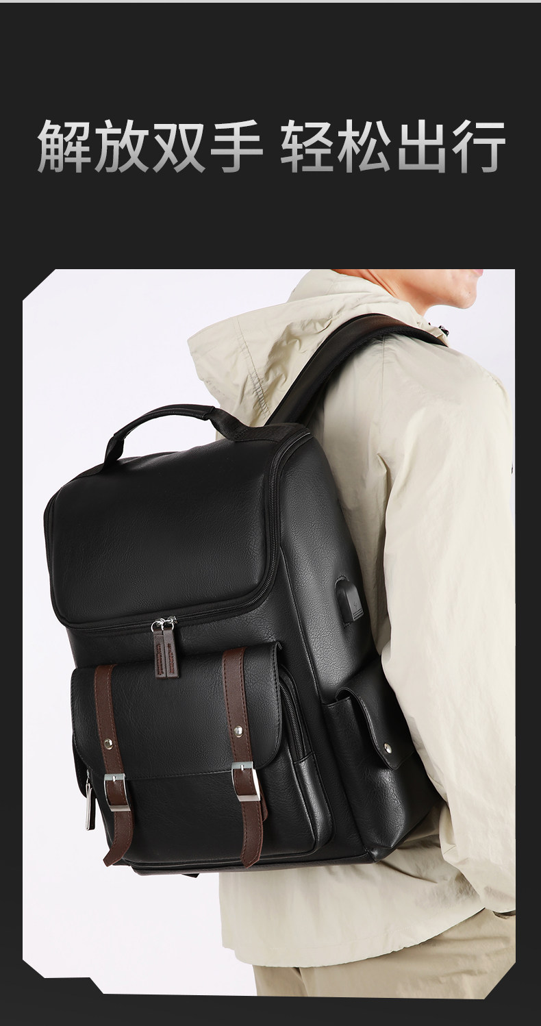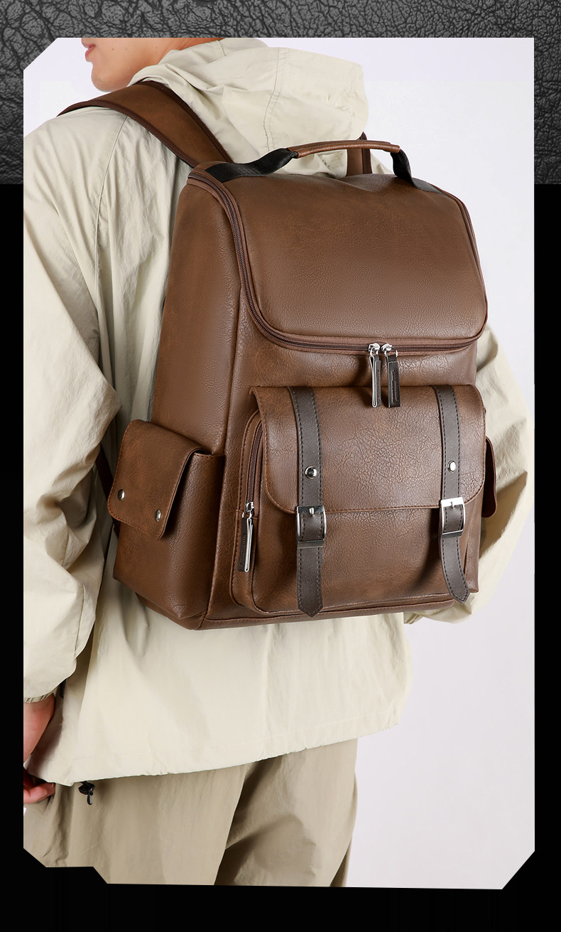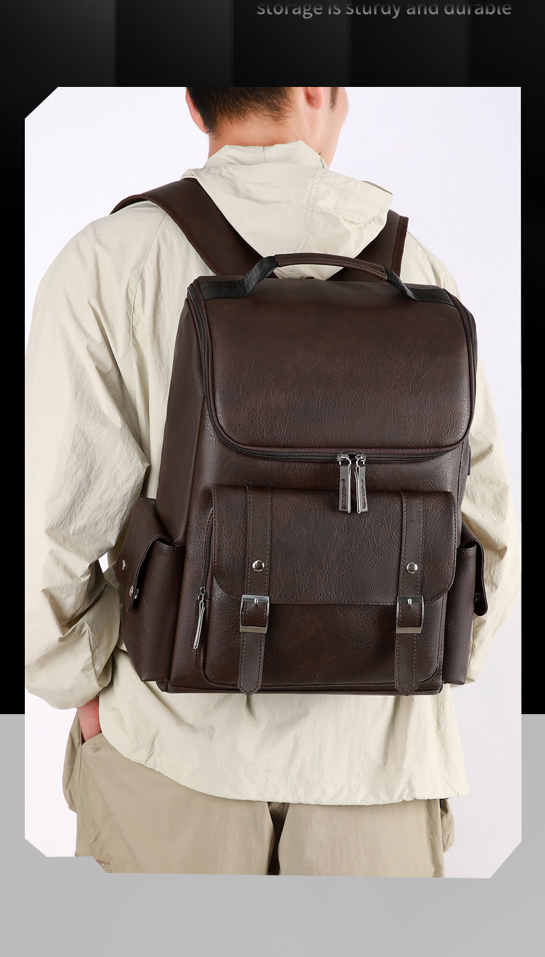 後後背包男士雙肩包皮質高級感休閒通勤電腦包男款潮牌英倫風學生書包