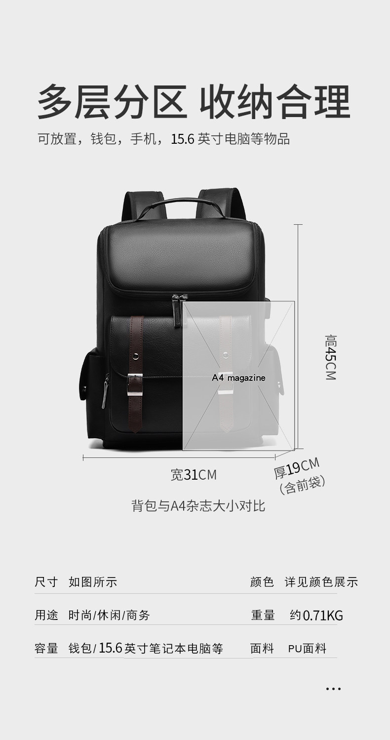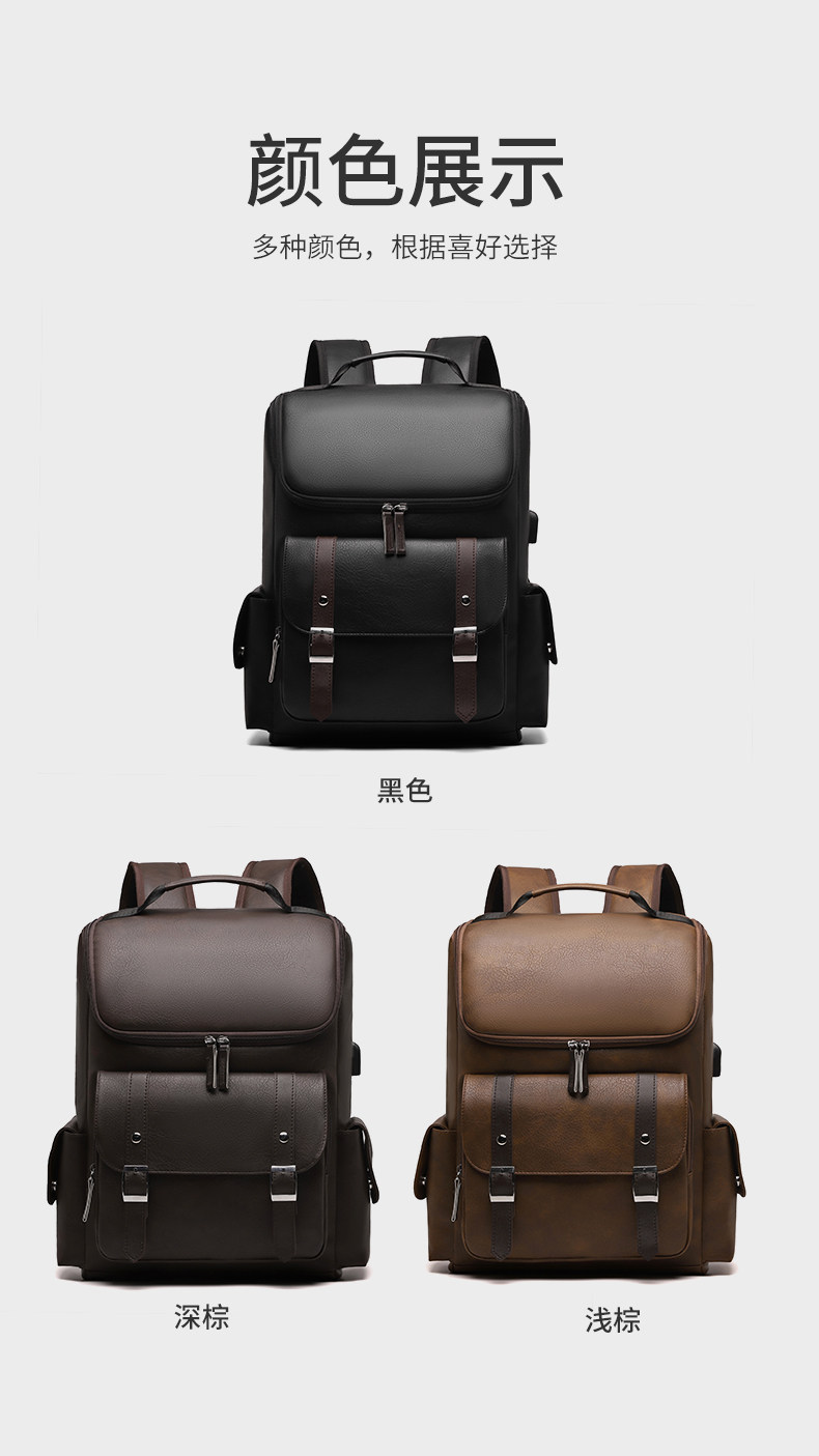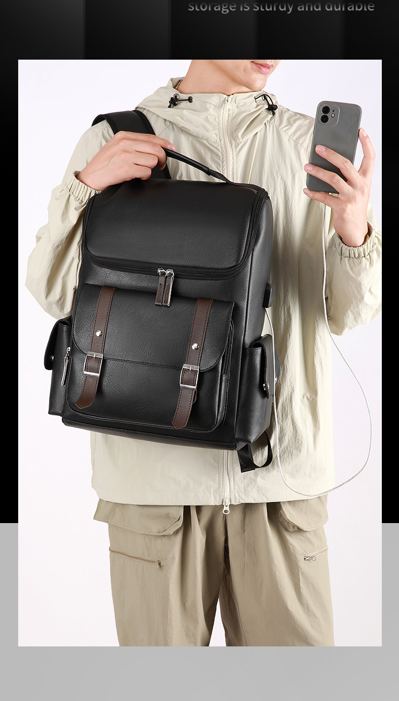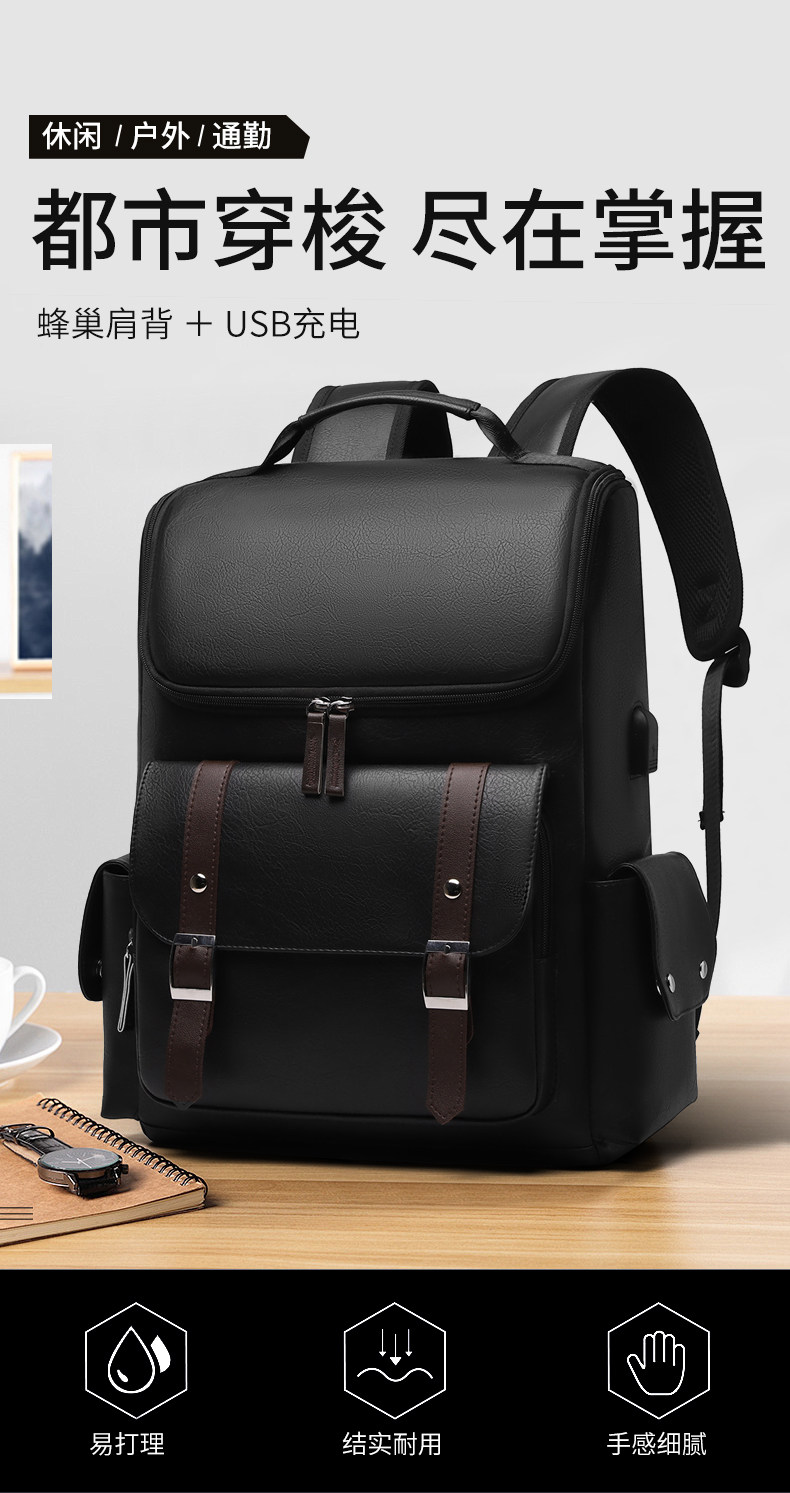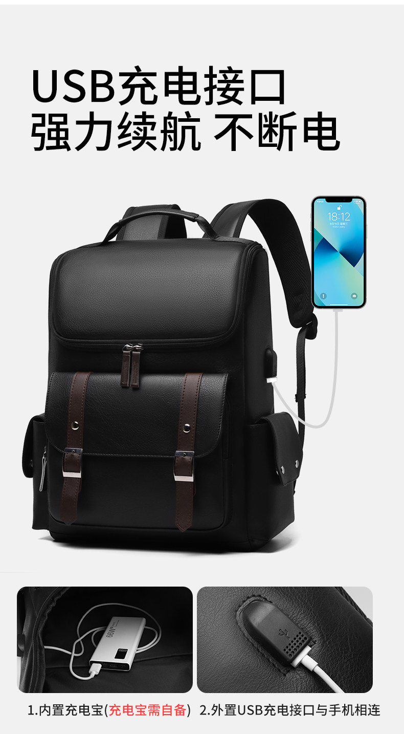 後後背包男士雙肩包皮質高級感休閒通勤電腦包男款潮牌英倫風學生書包