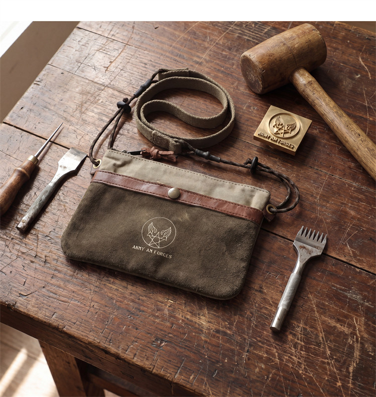 重工水洗美式復古軍事風帆布包配牛皮休閒斜後後背包男士手機包單肩包
