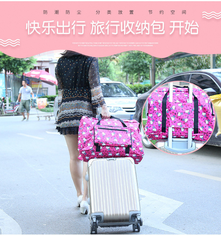 旅行包卡通可愛大容量可折疊手提包防水單肩包插拉桿旅行袋行李包