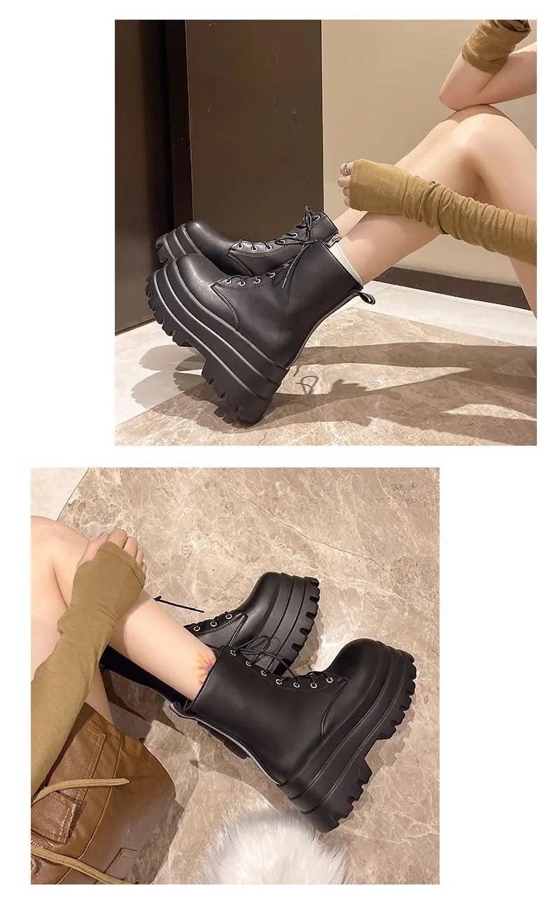 增高鞋10cm增高顯腿細厚底鞋英倫風厚底新款短靴短筒馬丁靴