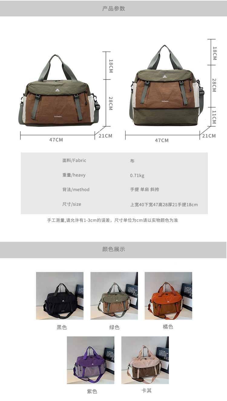 大容量短途出差手提行李包時尚旅行包女輕便防水收納運動健身包男