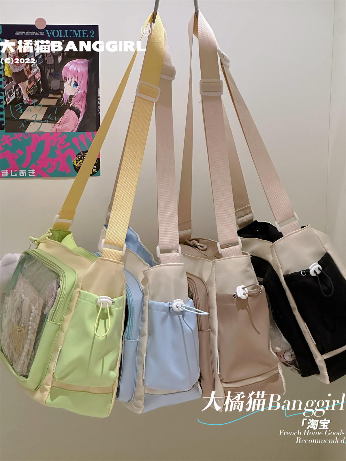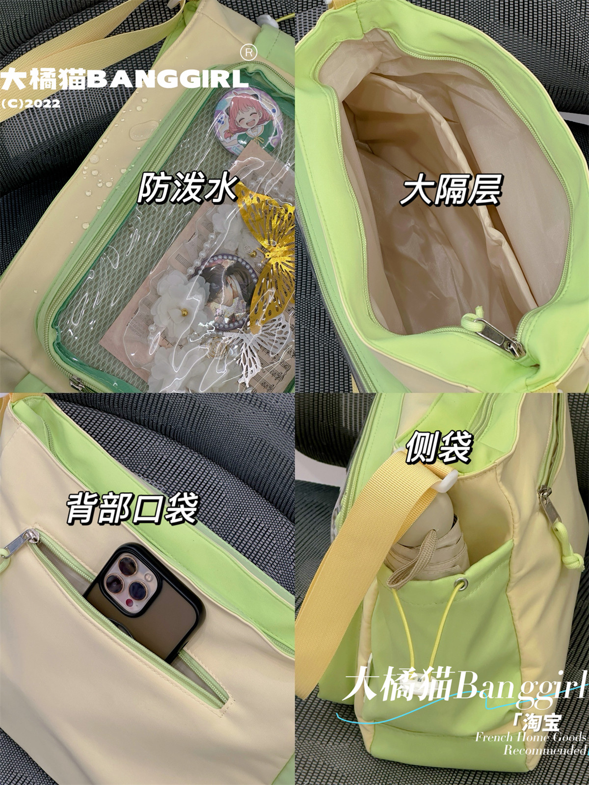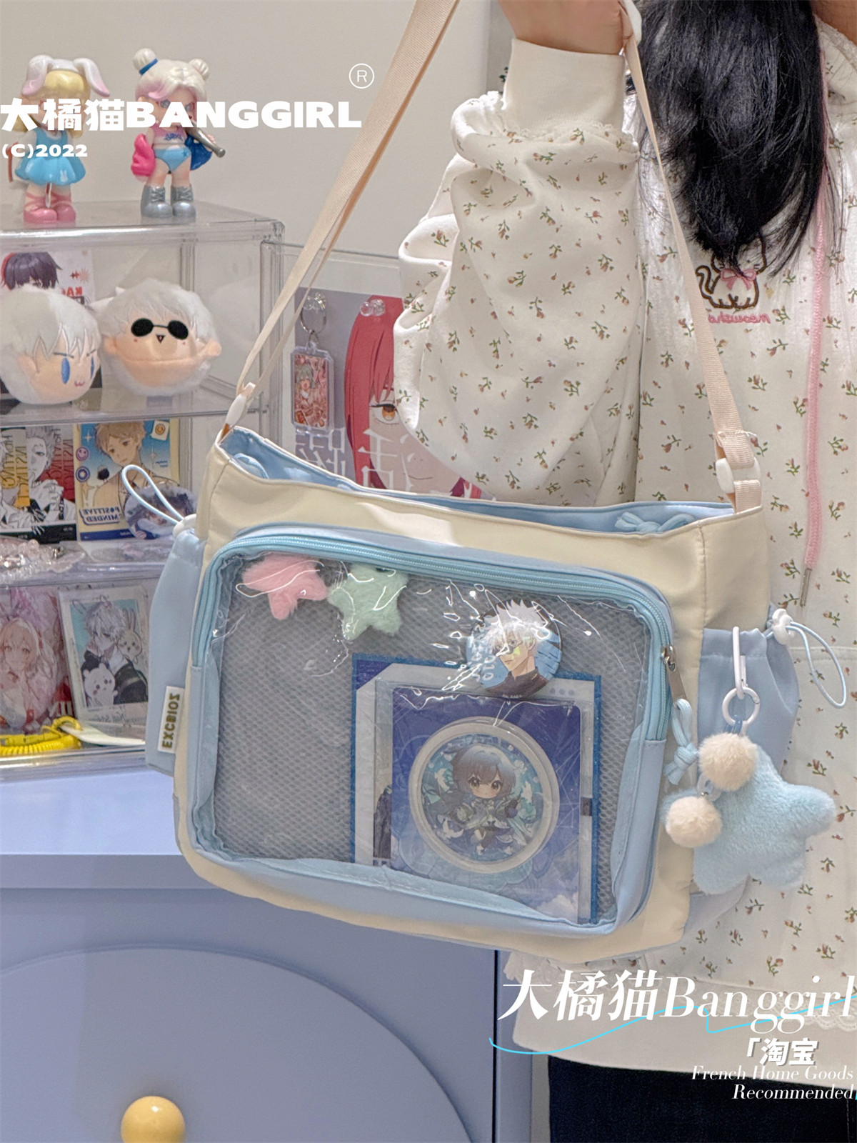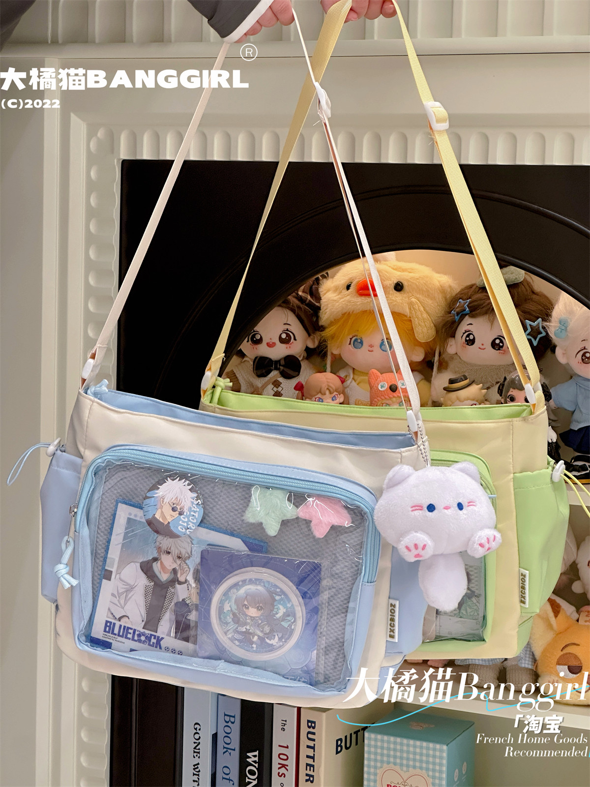 大橘貓學院風百搭撞色大容量郵差包女透明吧唧單肩包斜背娃包痛包