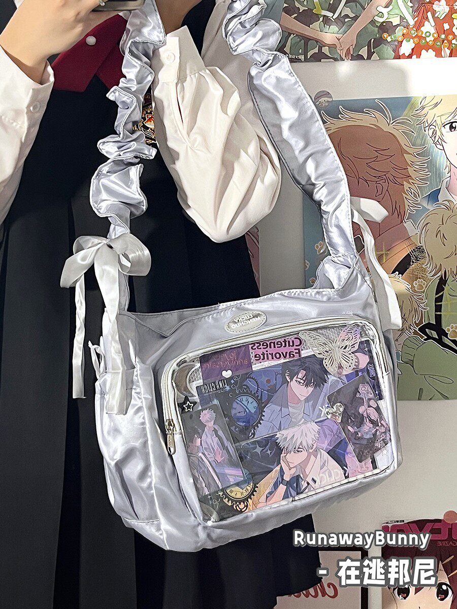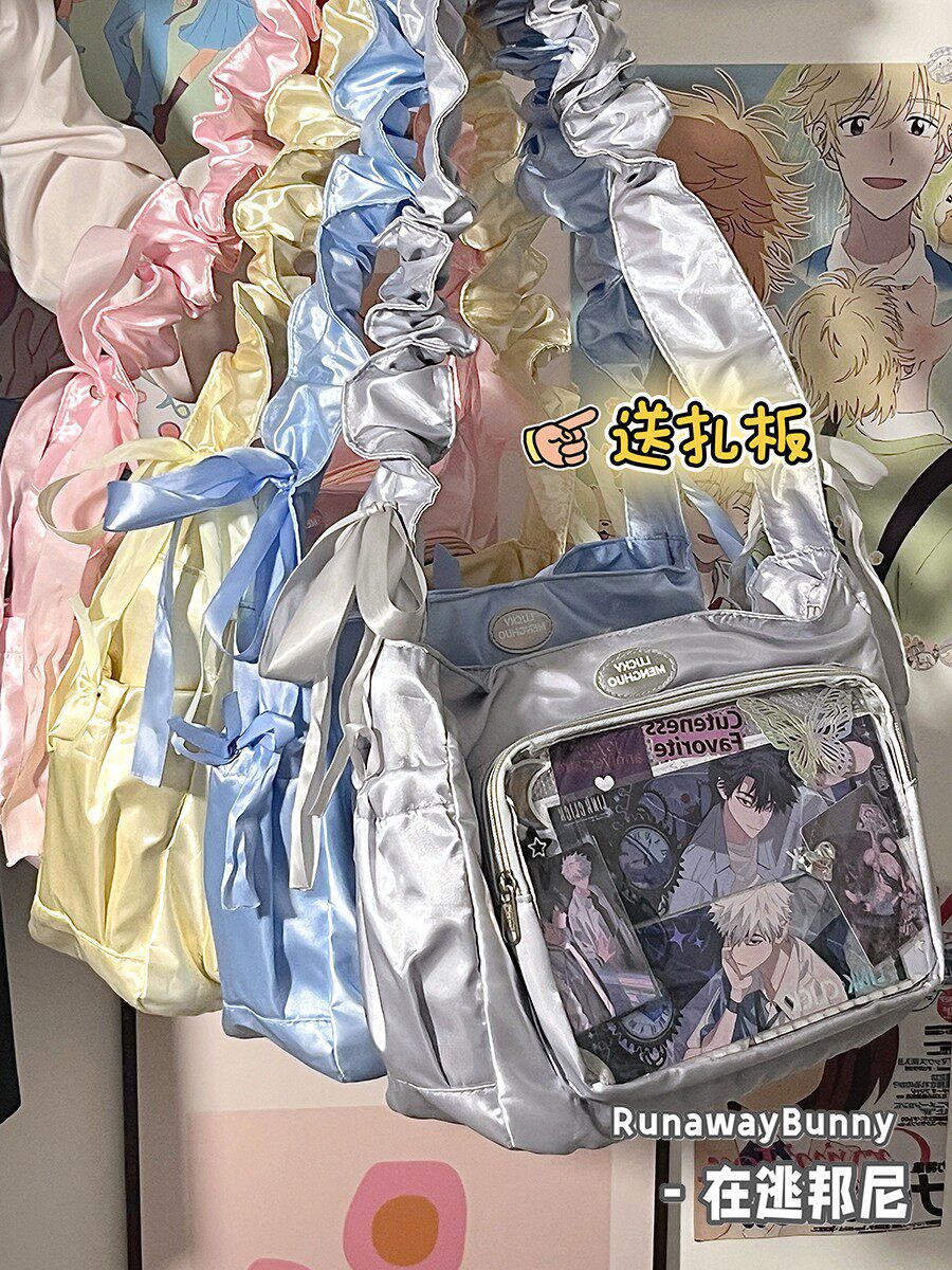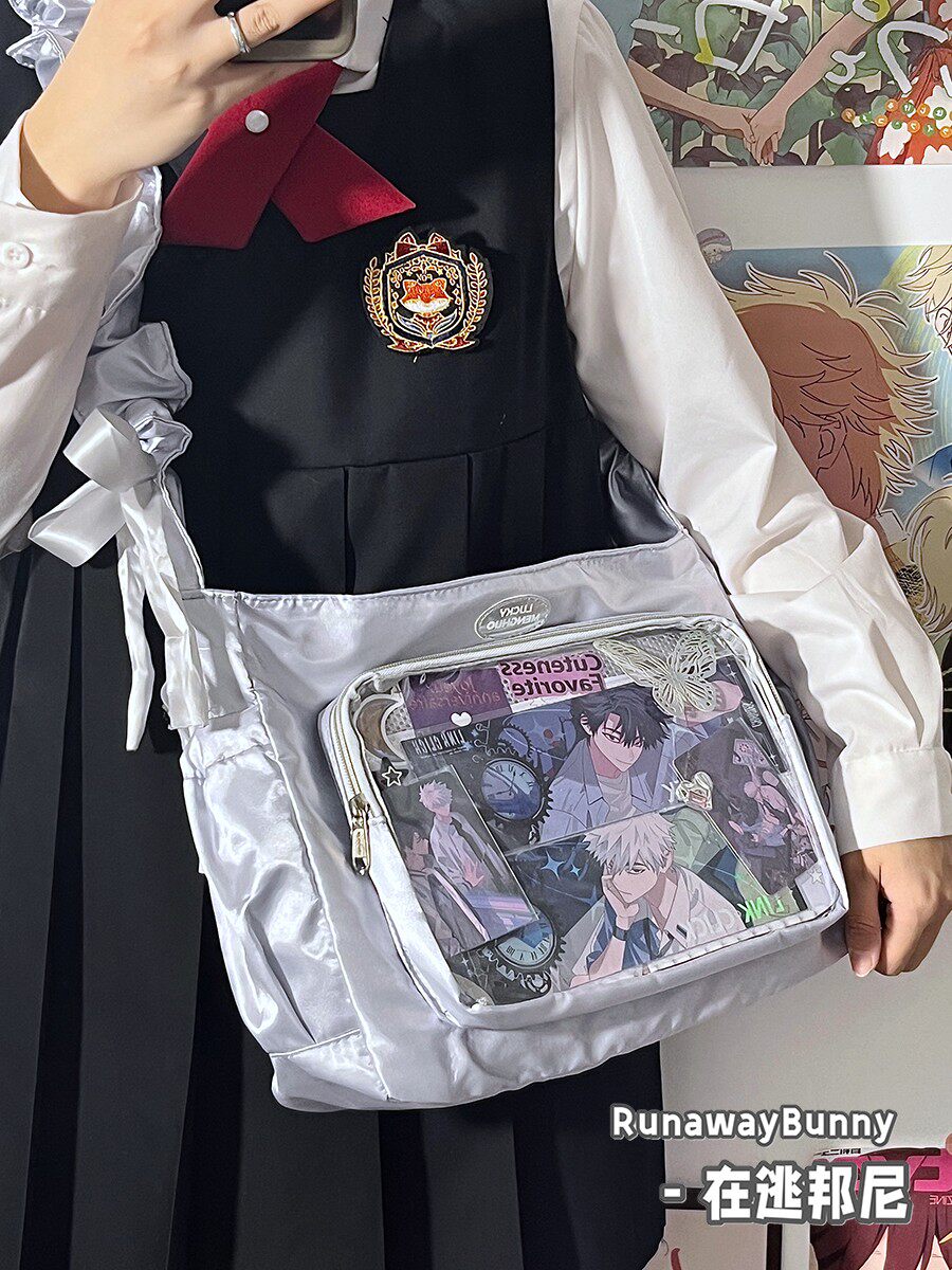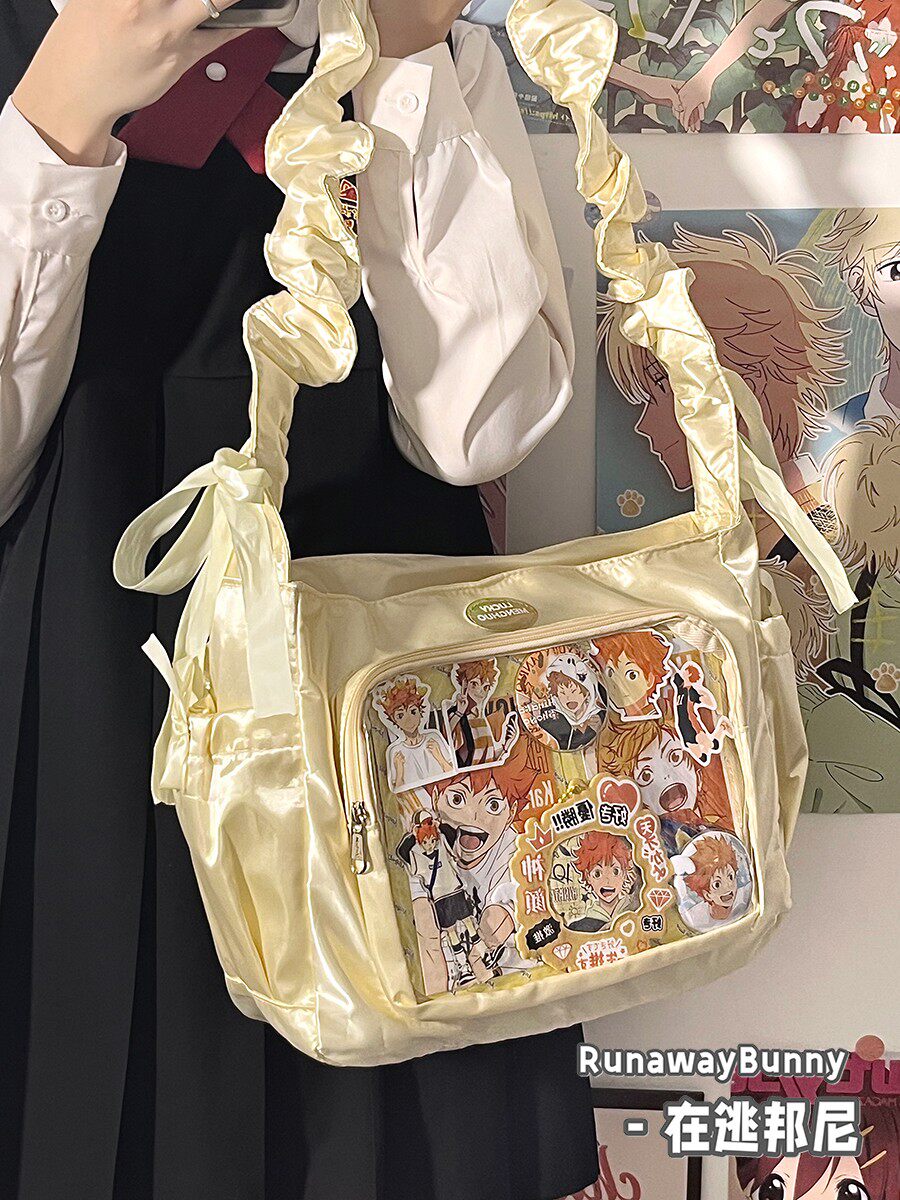 基礎款小食量透明吧唧紥穀痛包褶皺學生二次元洛麗塔女單肩斜後後背包