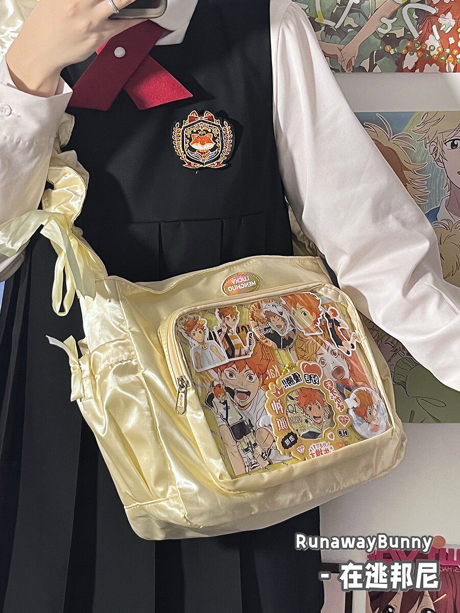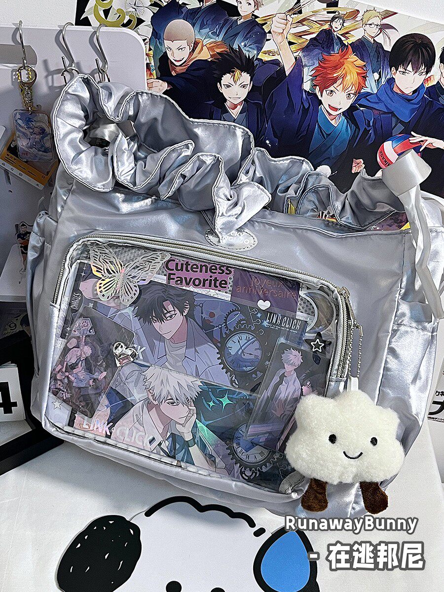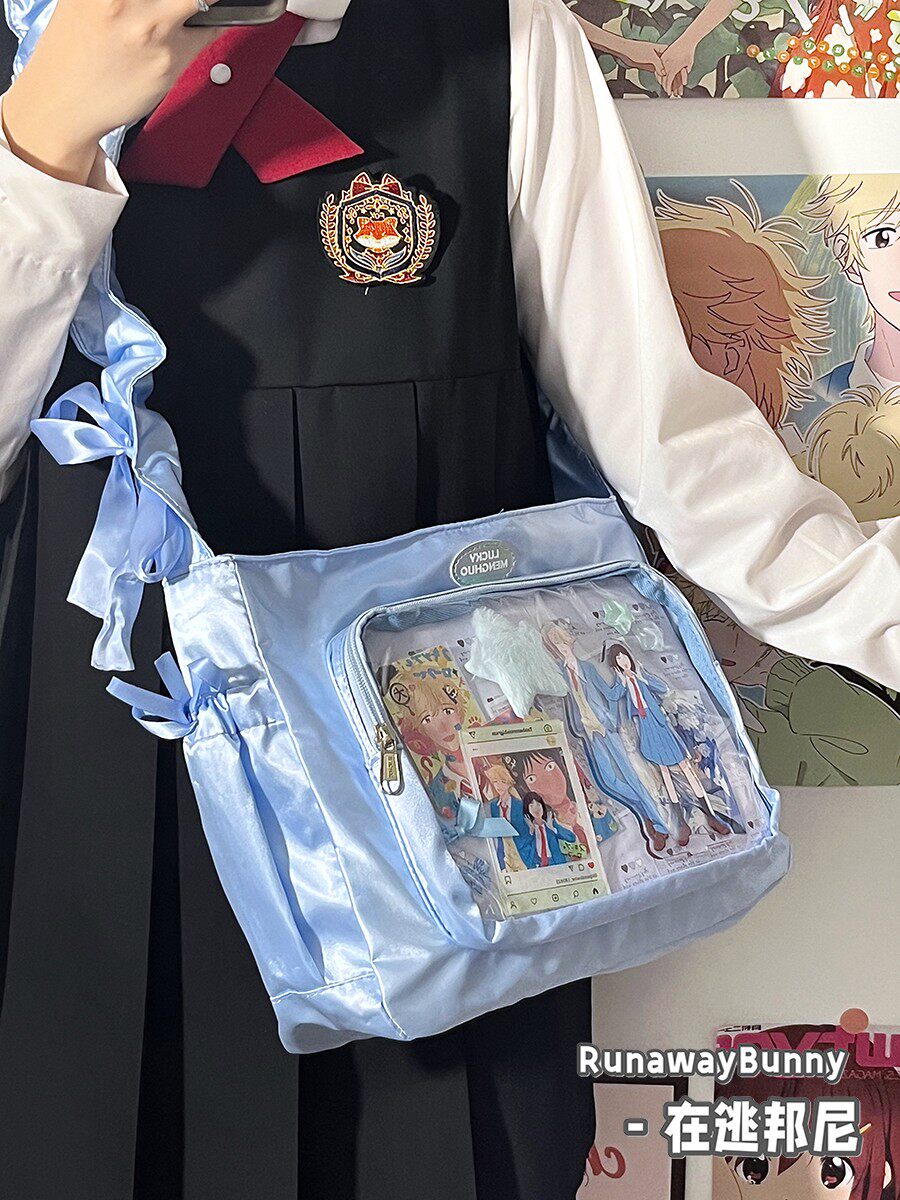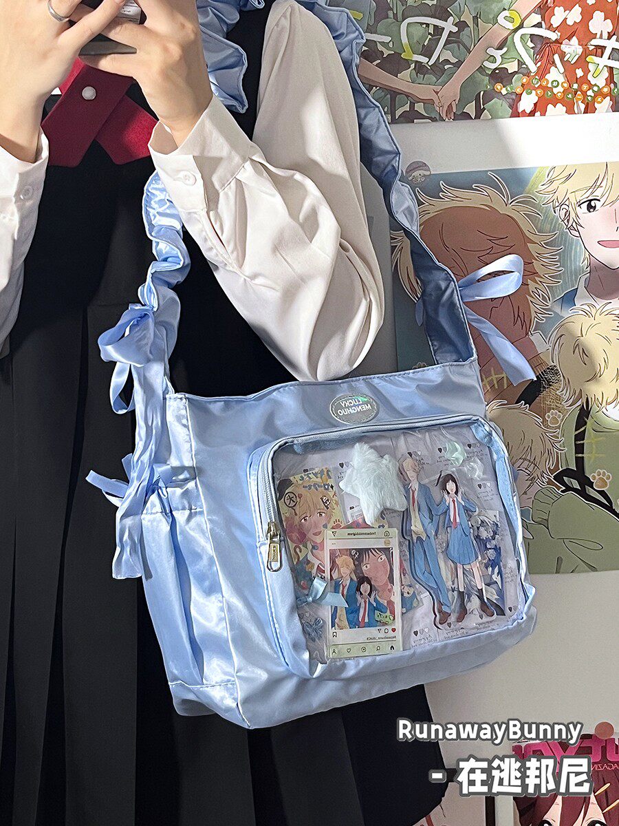 基礎款小食量透明吧唧紥穀痛包褶皺學生二次元洛麗塔女單肩斜後後背包
