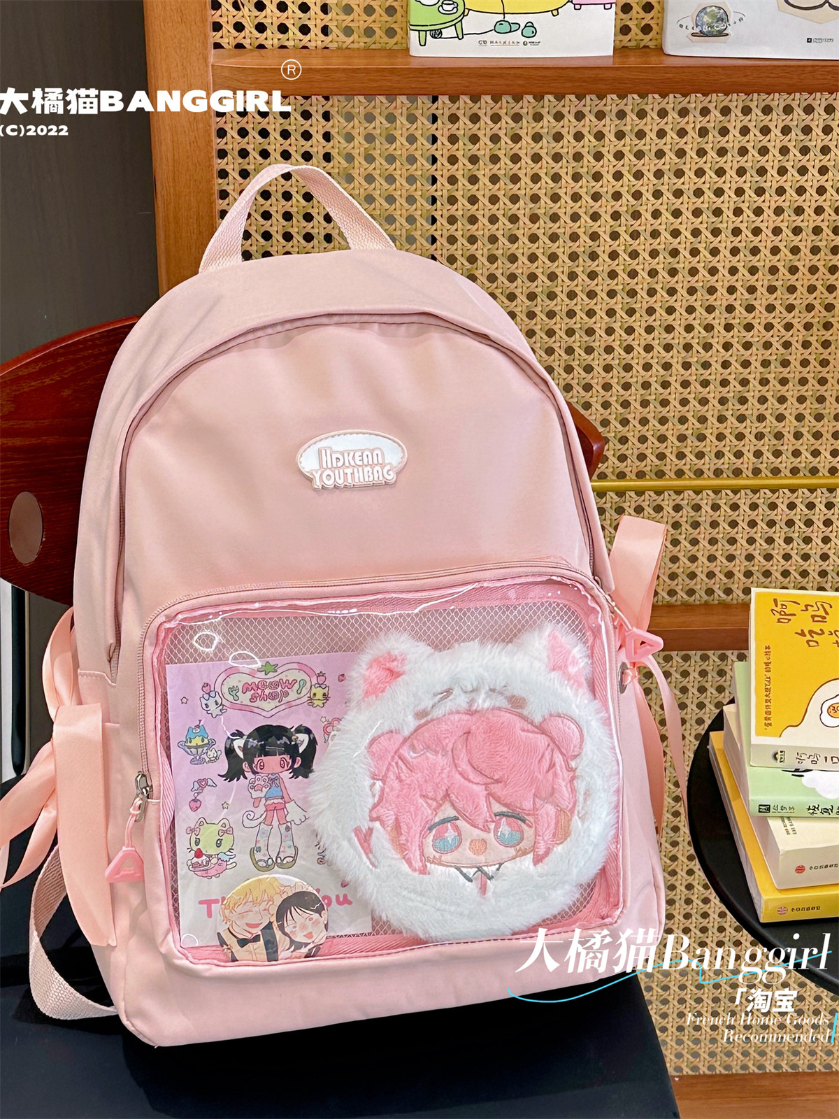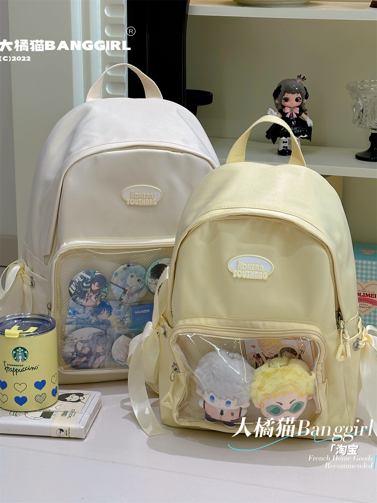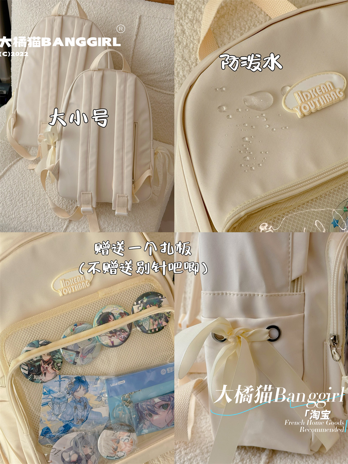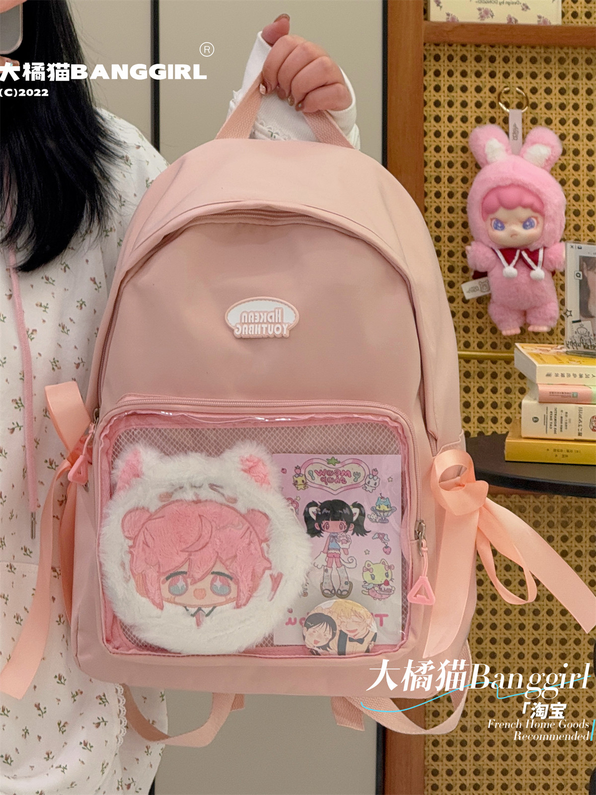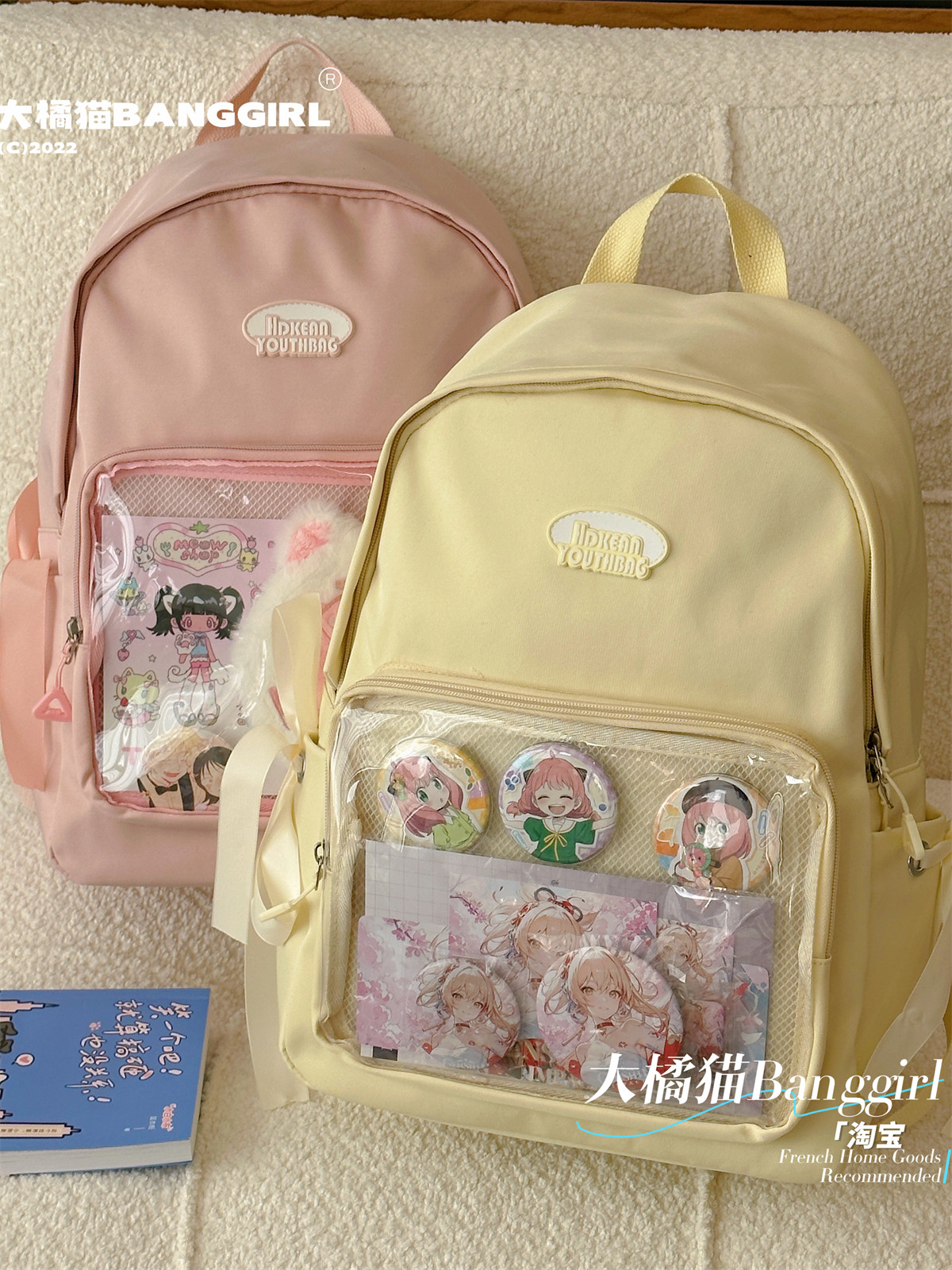 大橘貓雙肩痛包初中學生大容量穀子吧唧收納二次元百搭痛書包後後背包