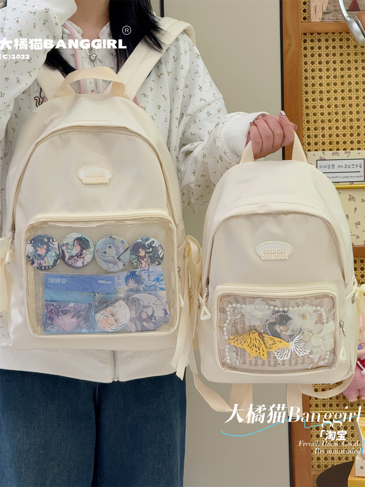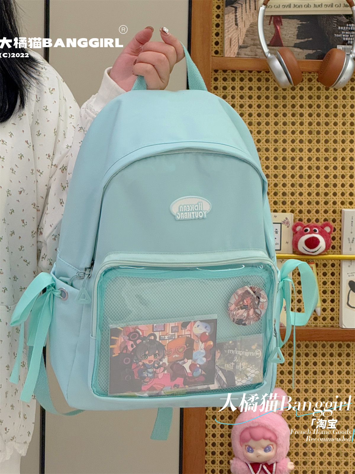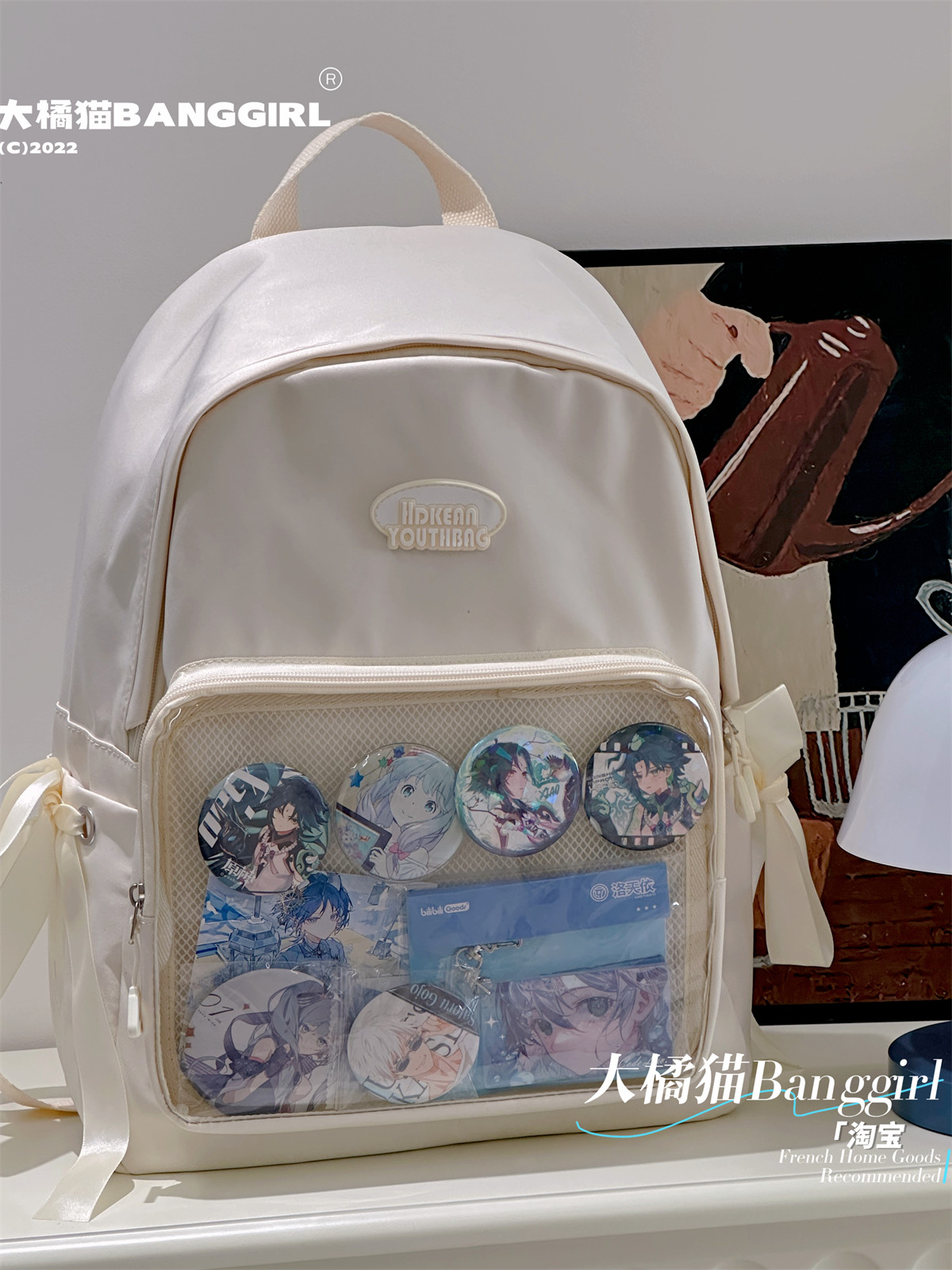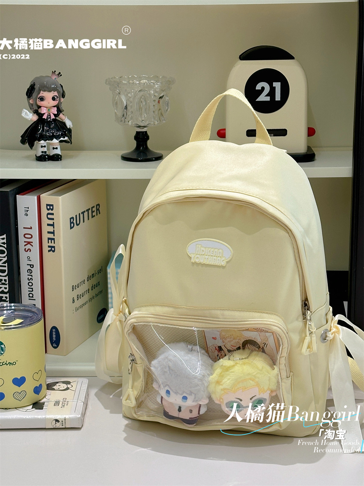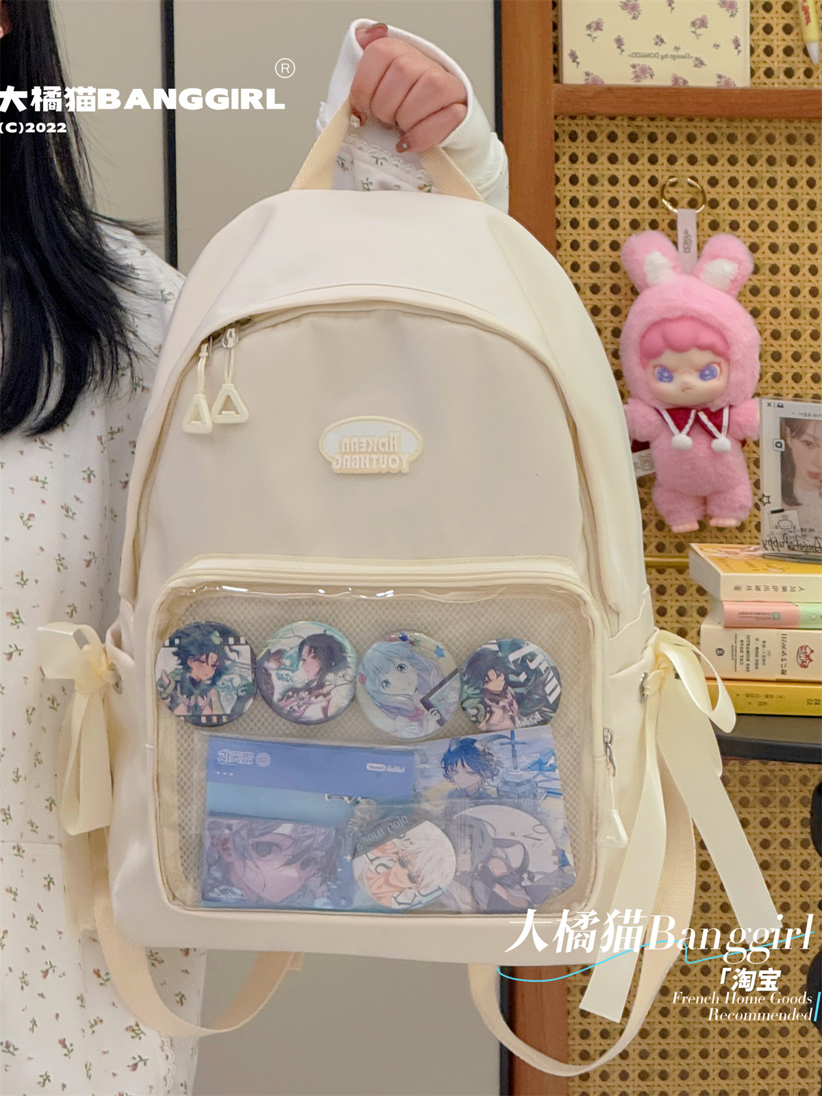 大橘貓雙肩痛包初中學生大容量穀子吧唧收納二次元百搭痛書包後後背包