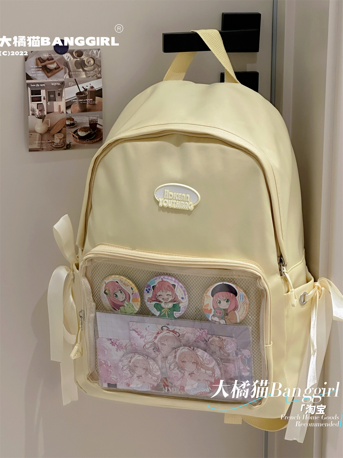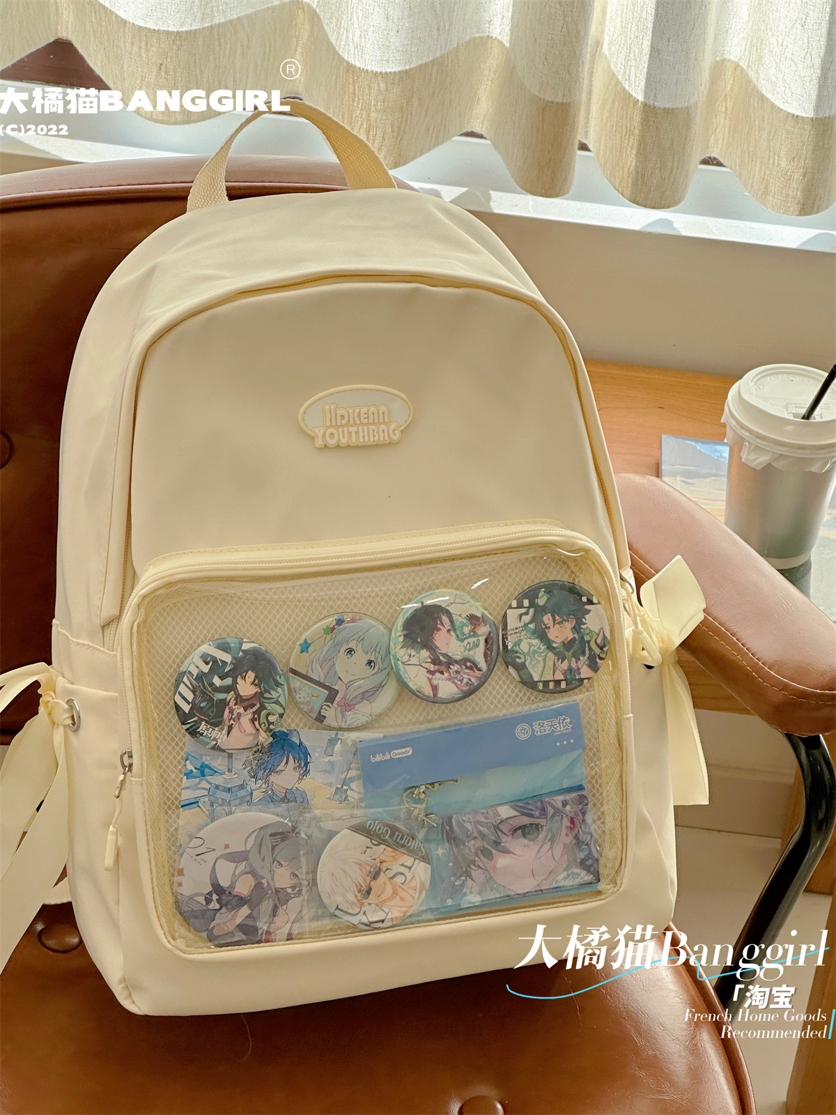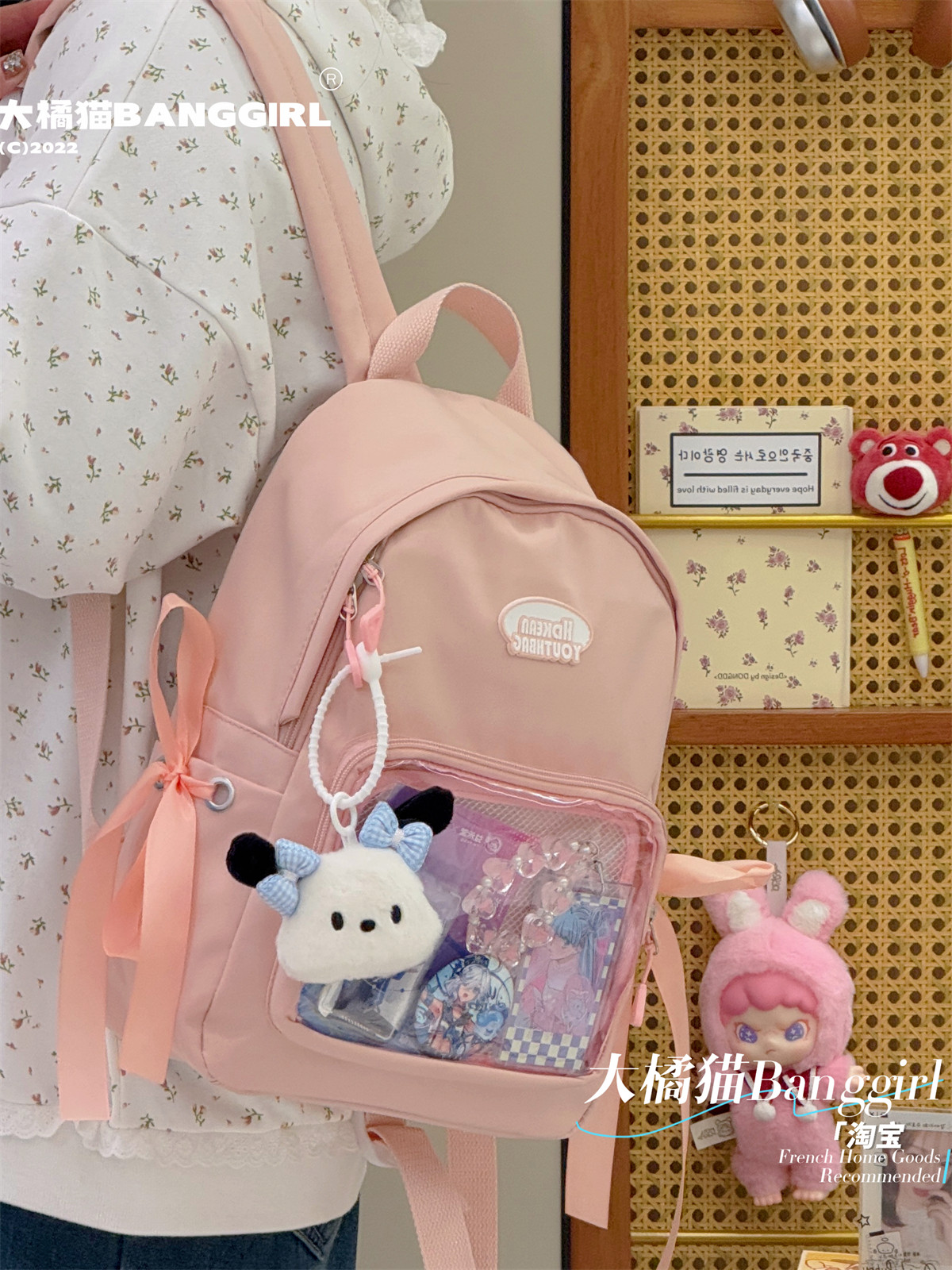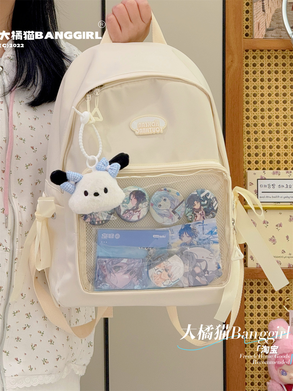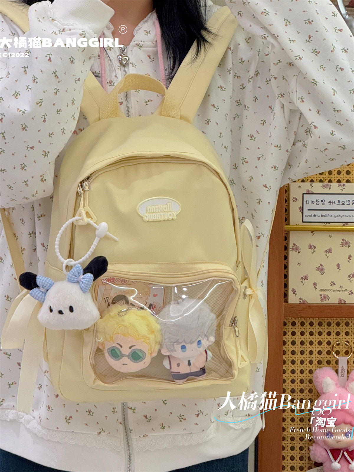 大橘貓雙肩痛包初中學生大容量穀子吧唧收納二次元百搭痛書包後後背包