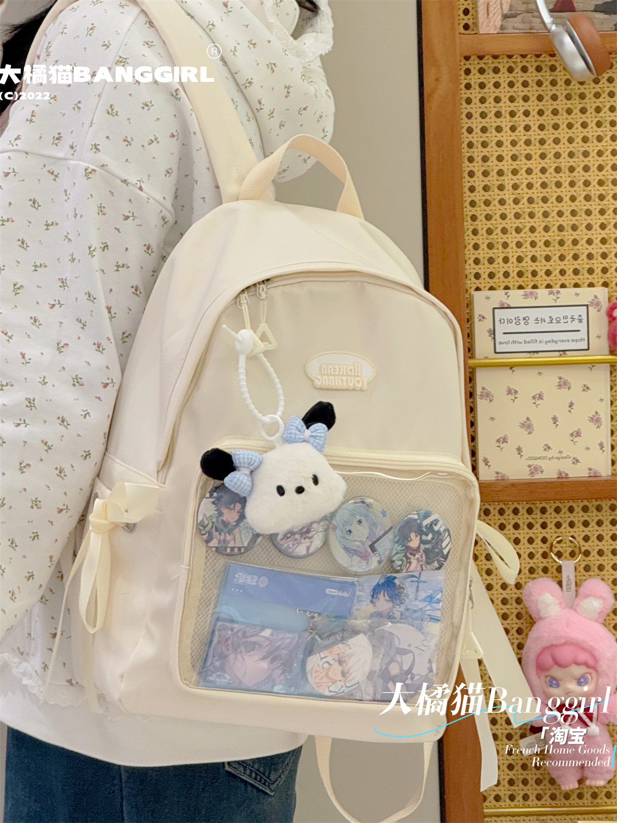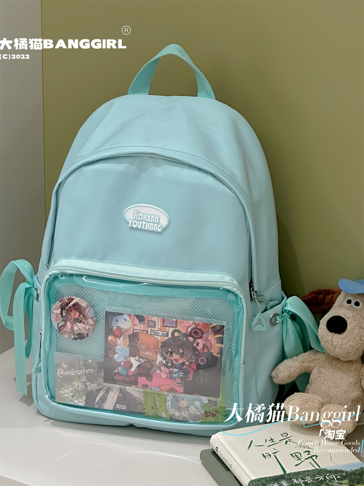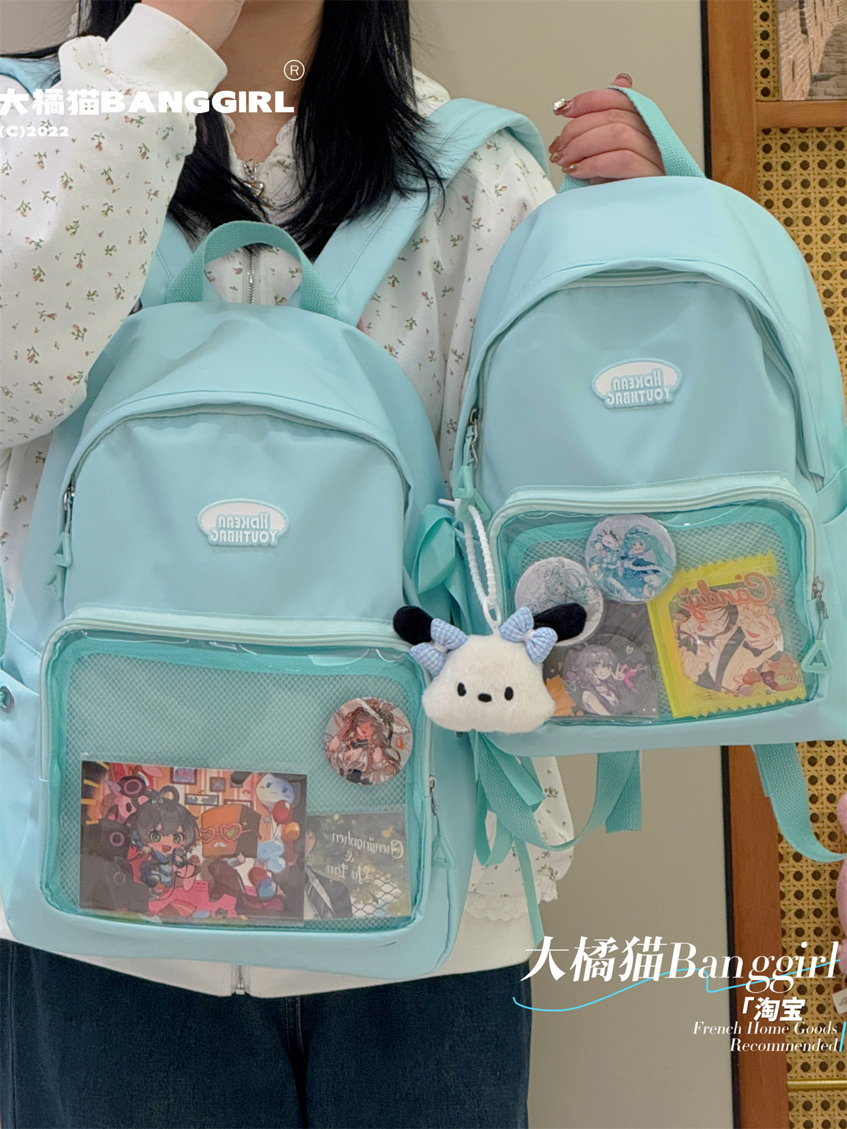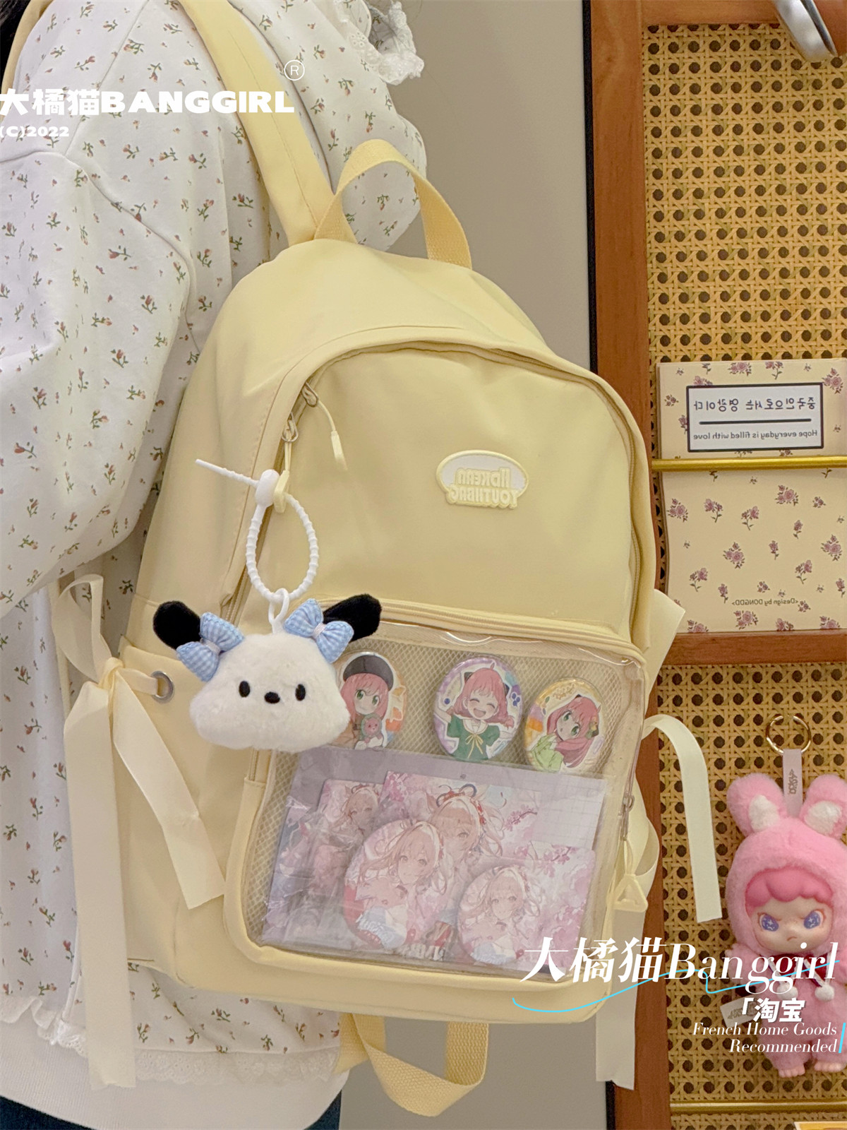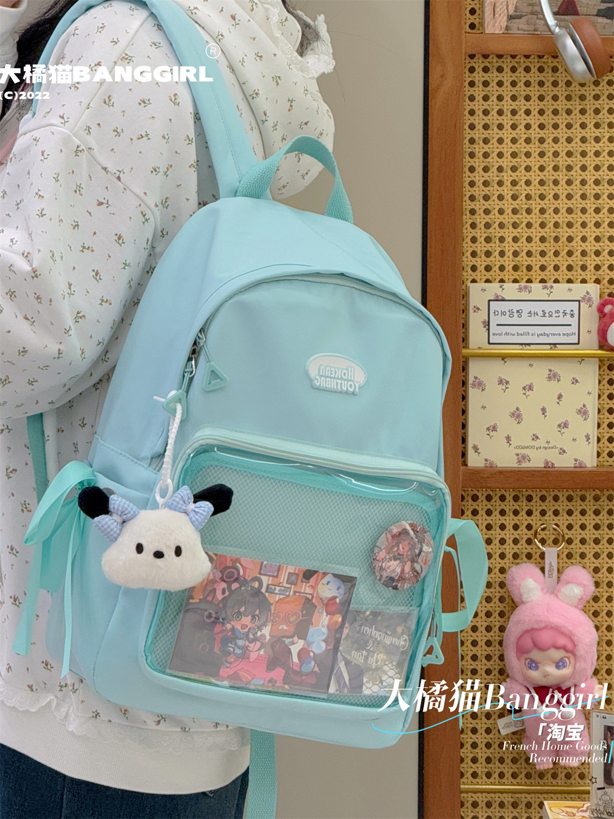 大橘貓雙肩痛包初中學生大容量穀子吧唧收納二次元百搭痛書包後後背包