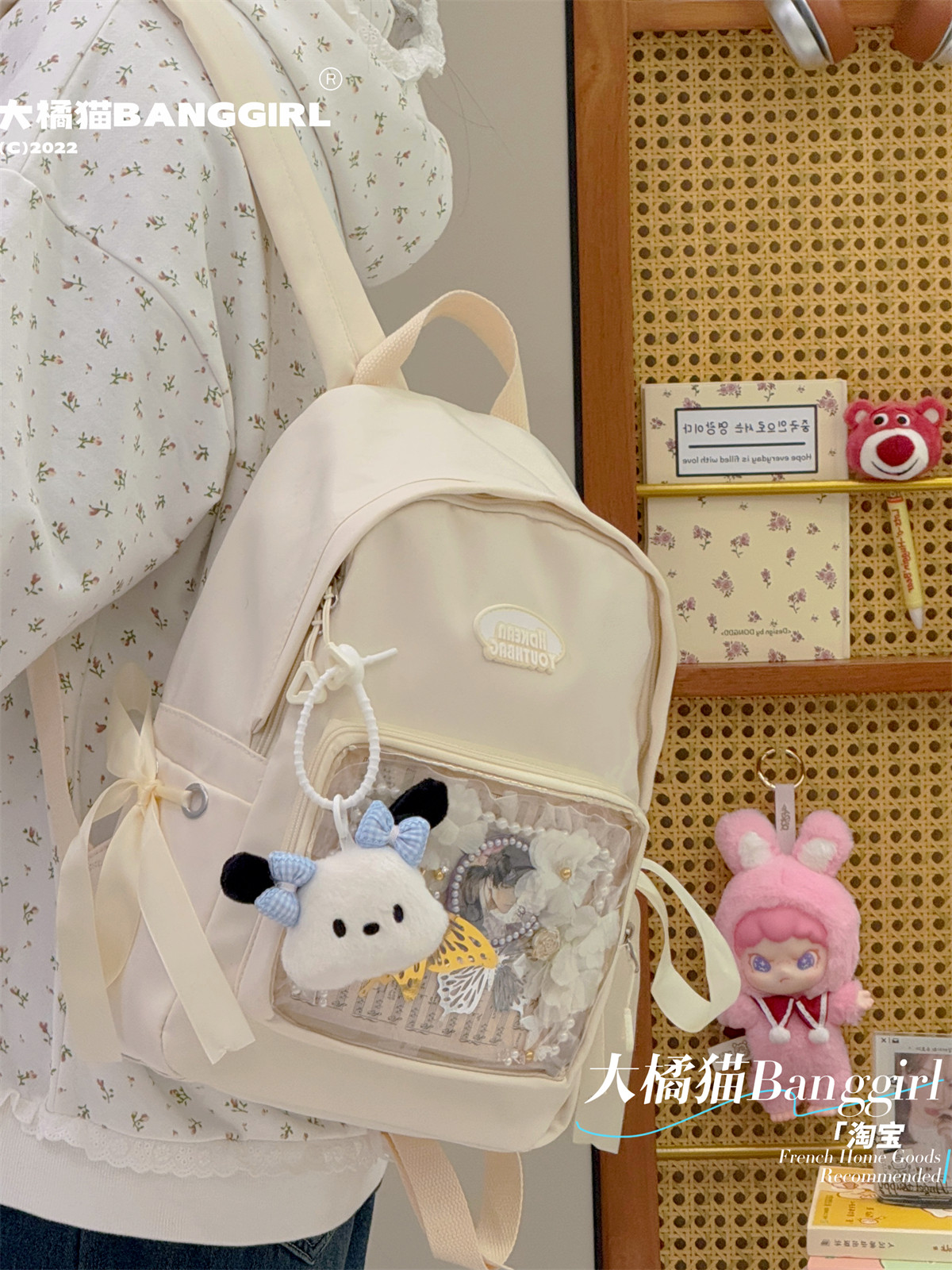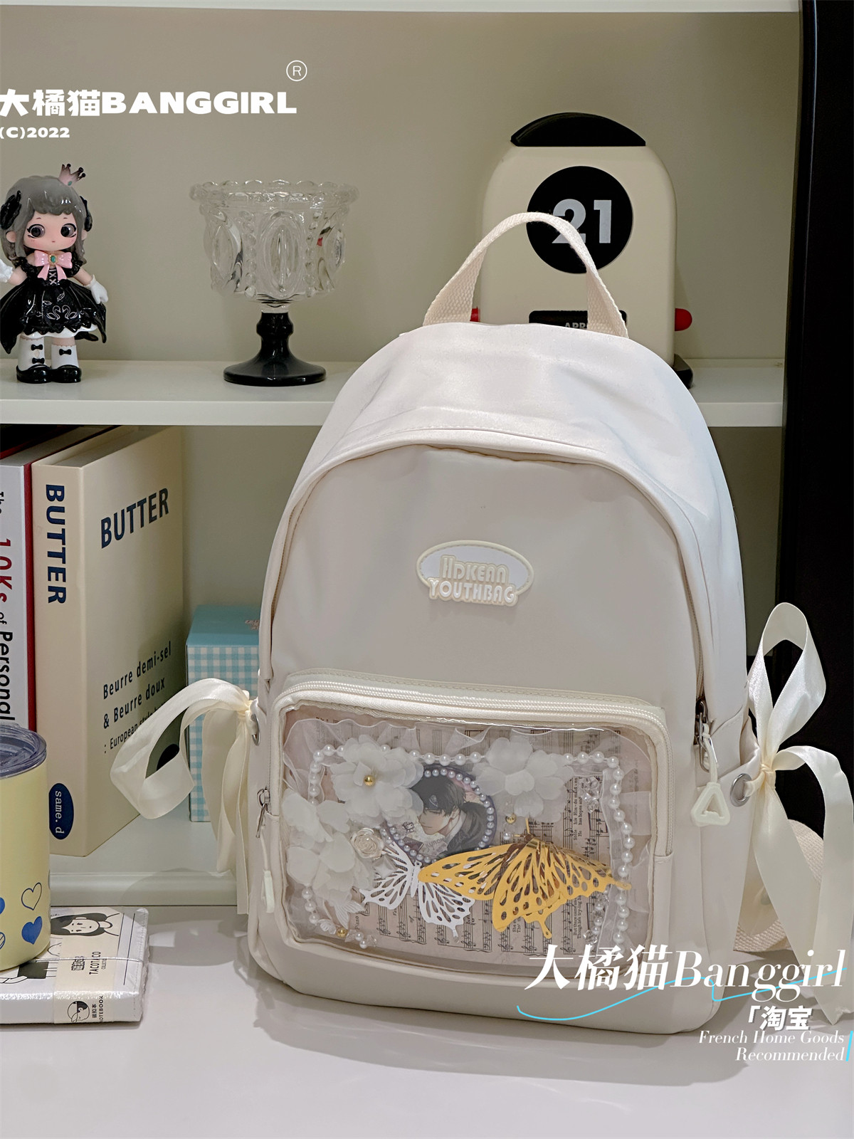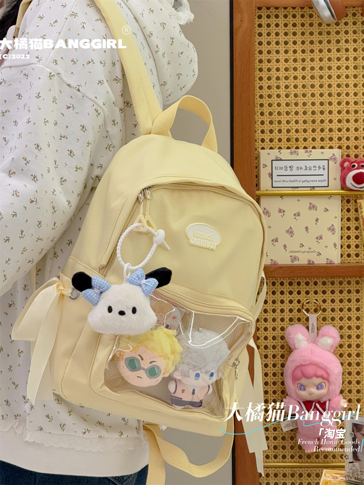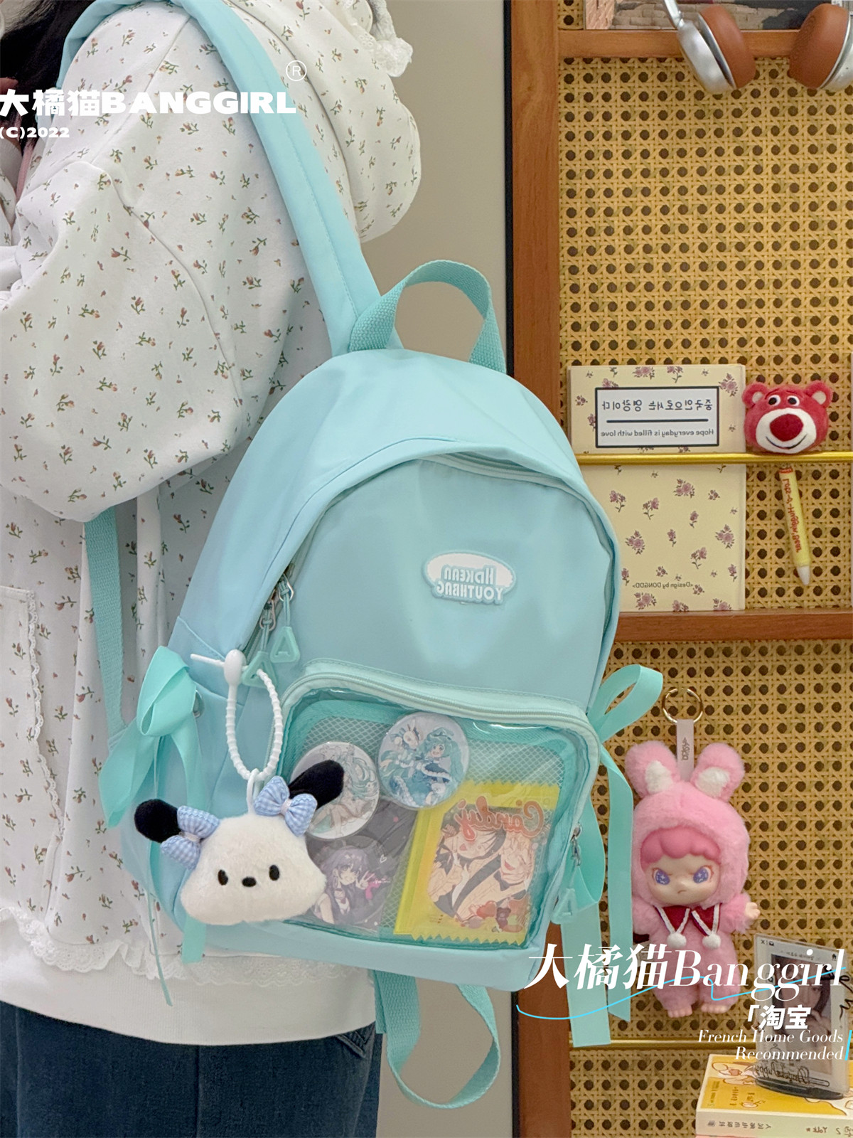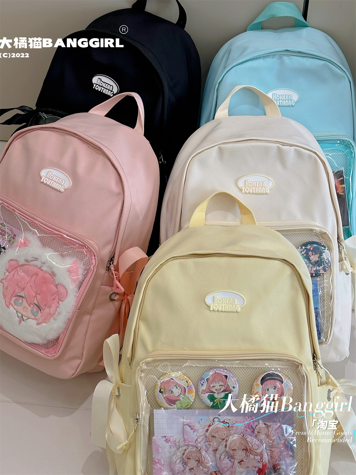 大橘貓雙肩痛包初中學生大容量穀子吧唧收納二次元百搭痛書包後後背包