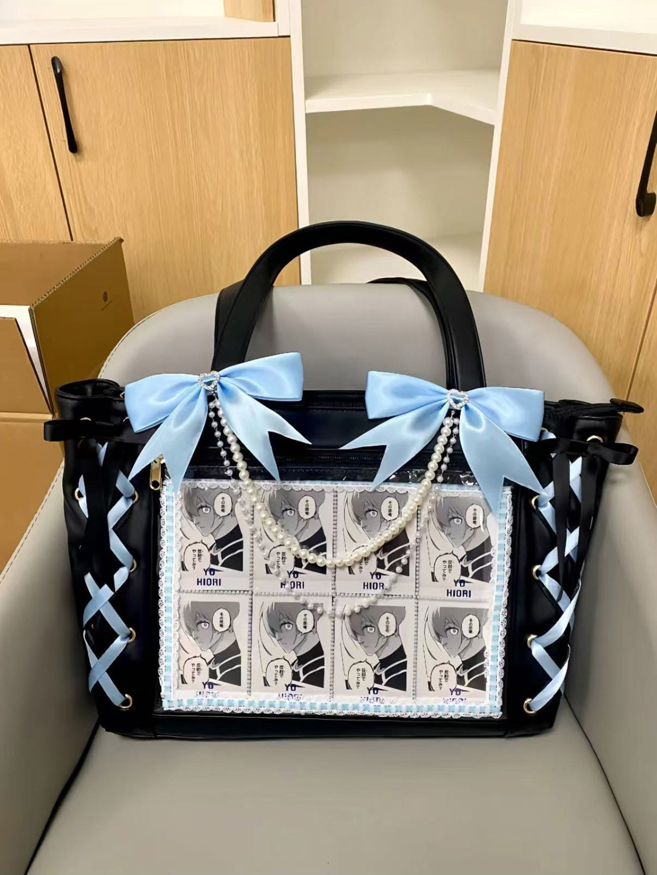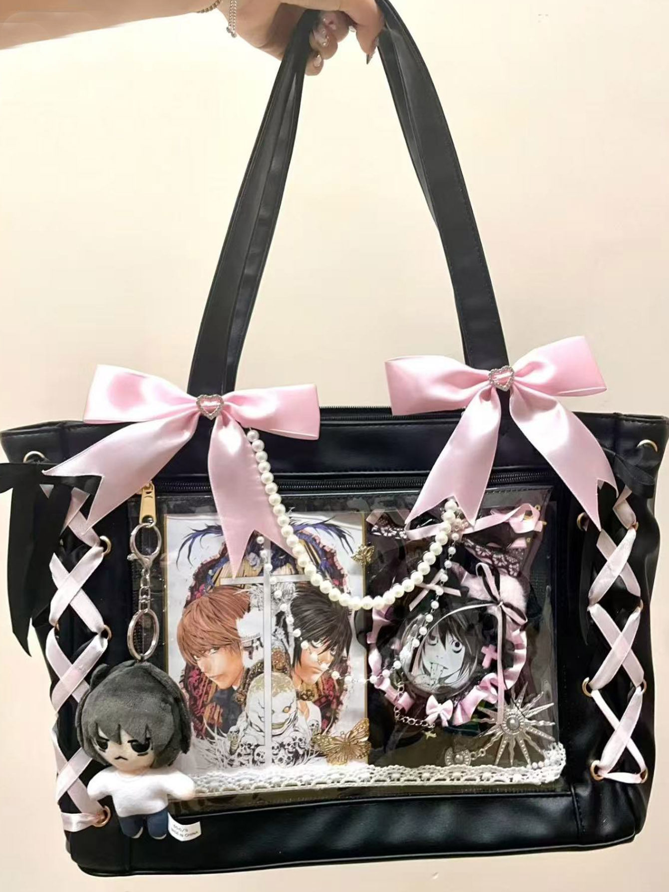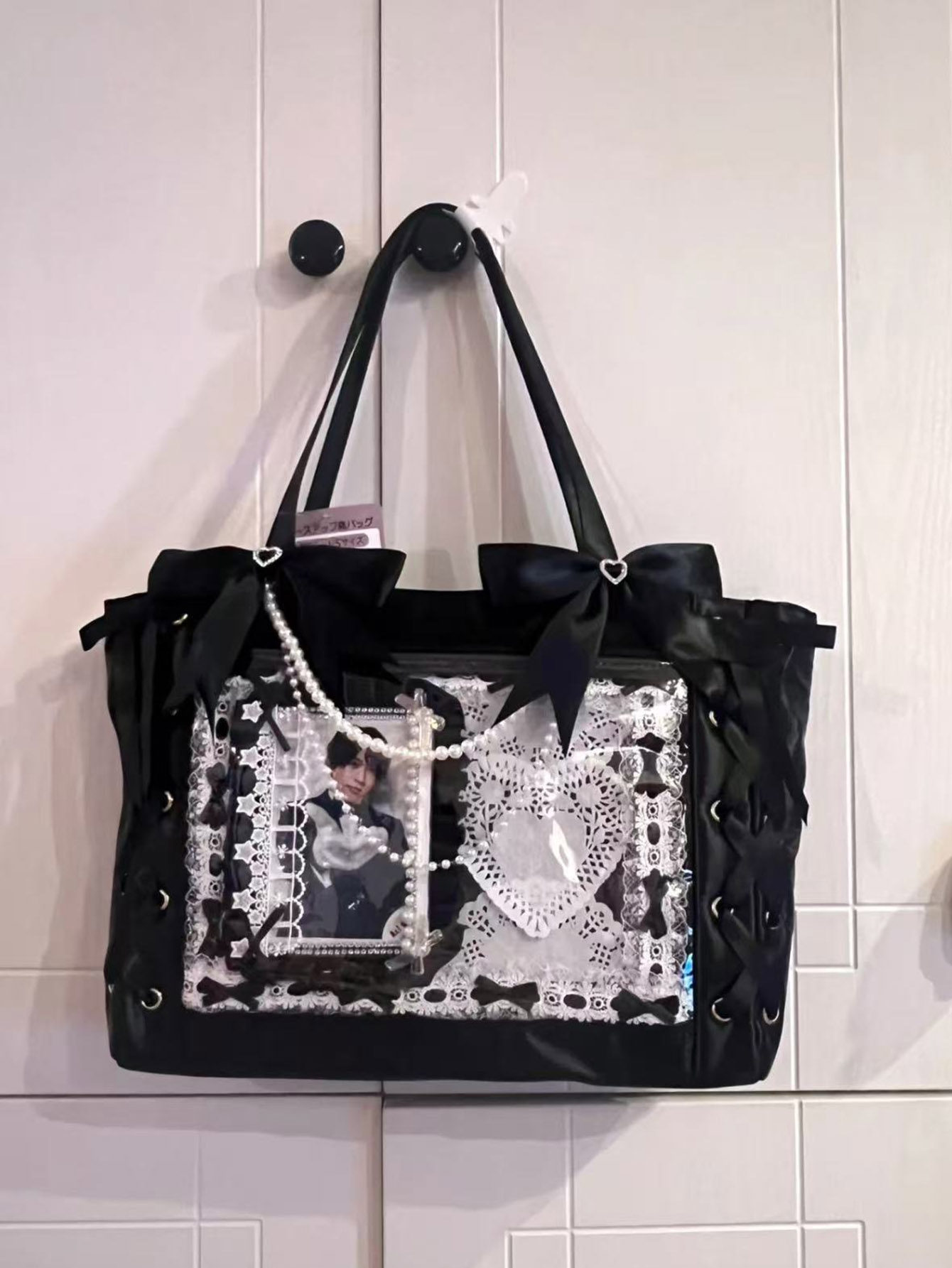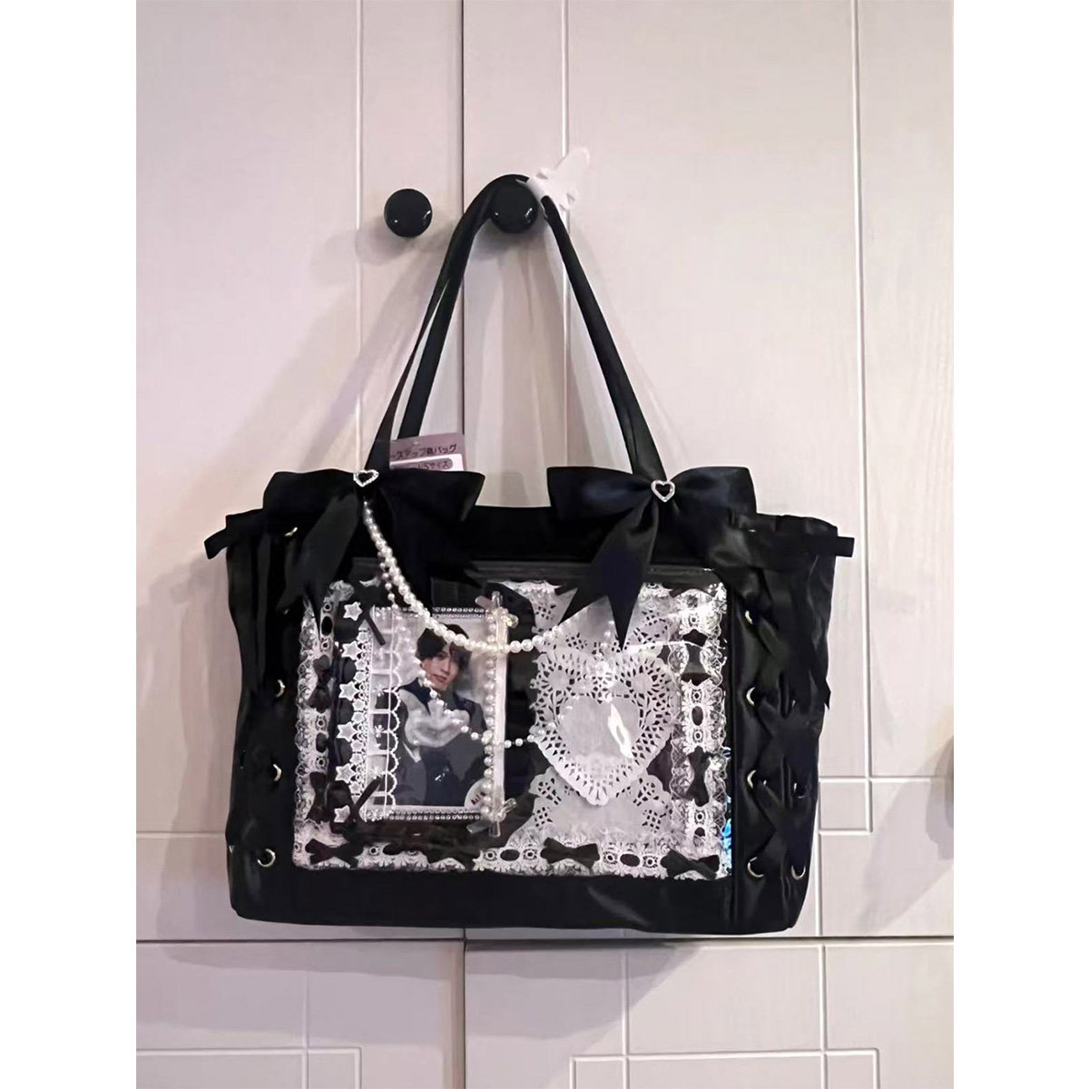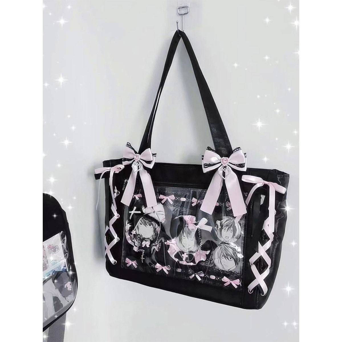 2025新款痛包日系痛帶蝴蝶結可愛手提包大容量吧唧透明穀子單肩包