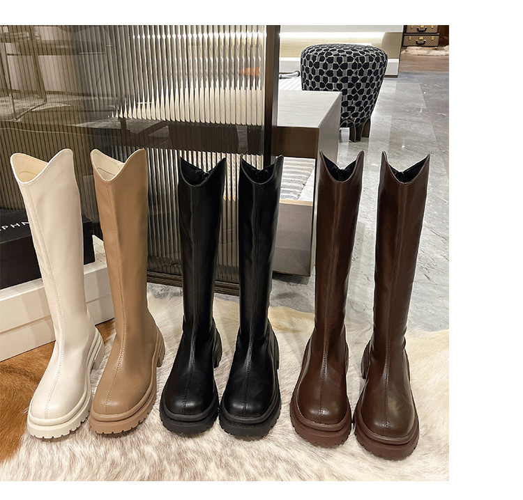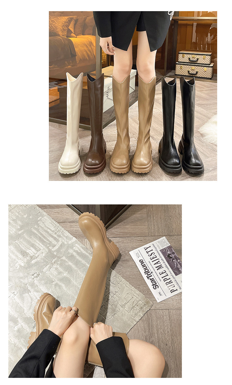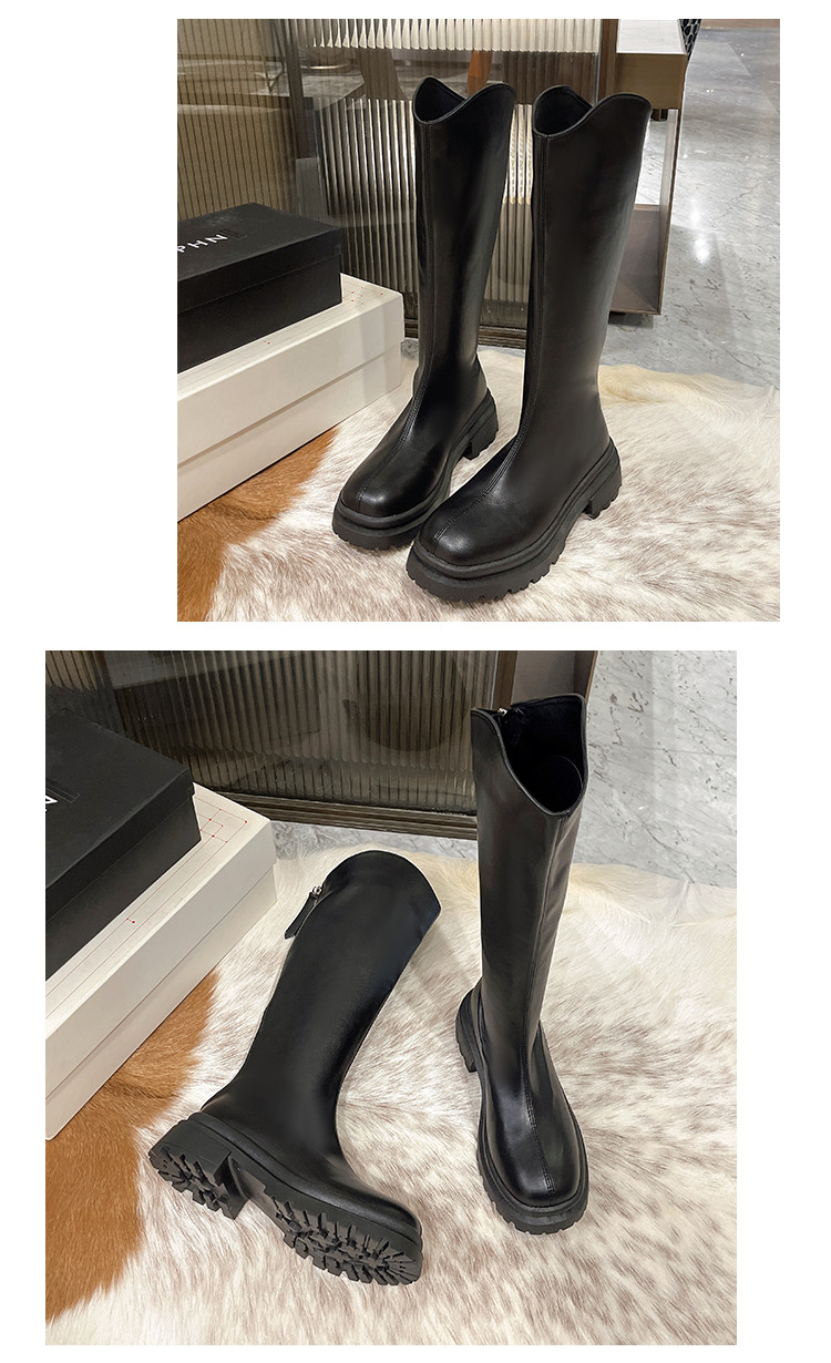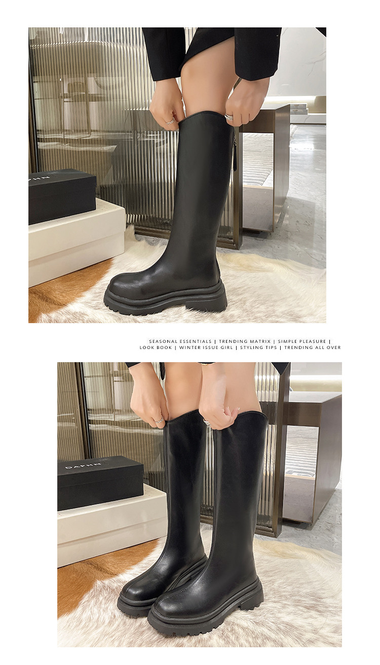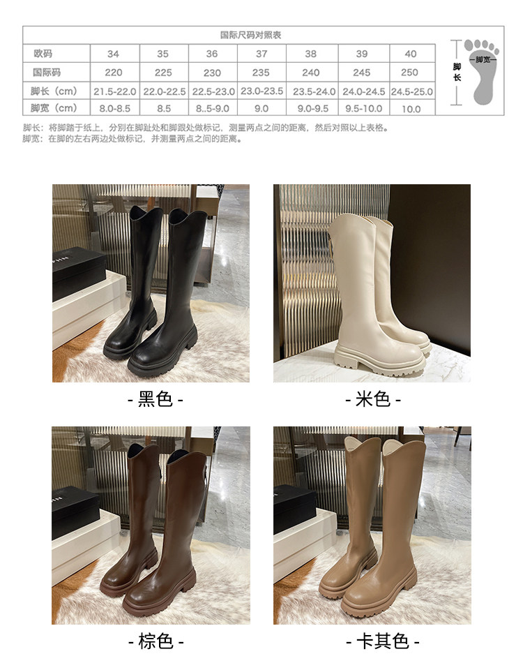 顯腿直長筒騎士靴子女厚底2026春秋新款黑色高筒不過膝粗跟瘦瘦靴