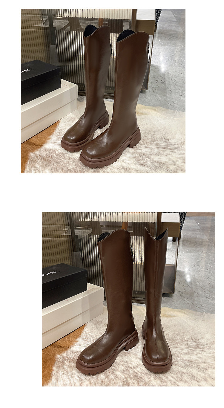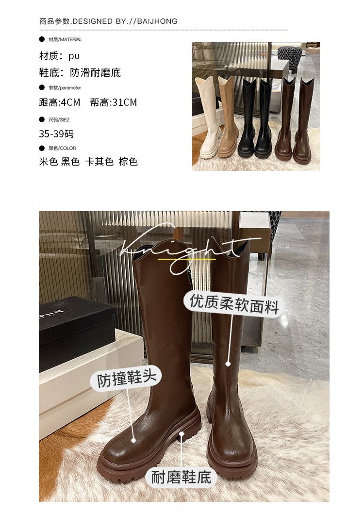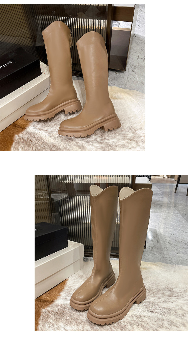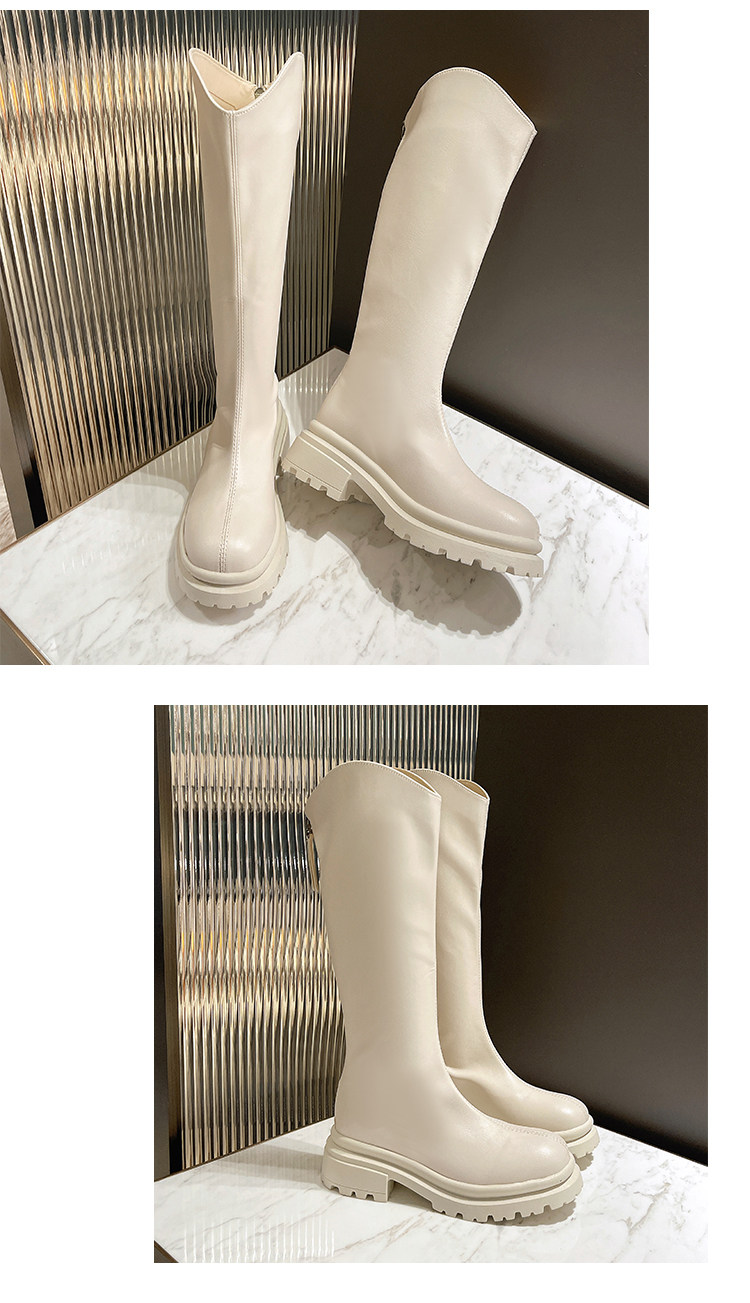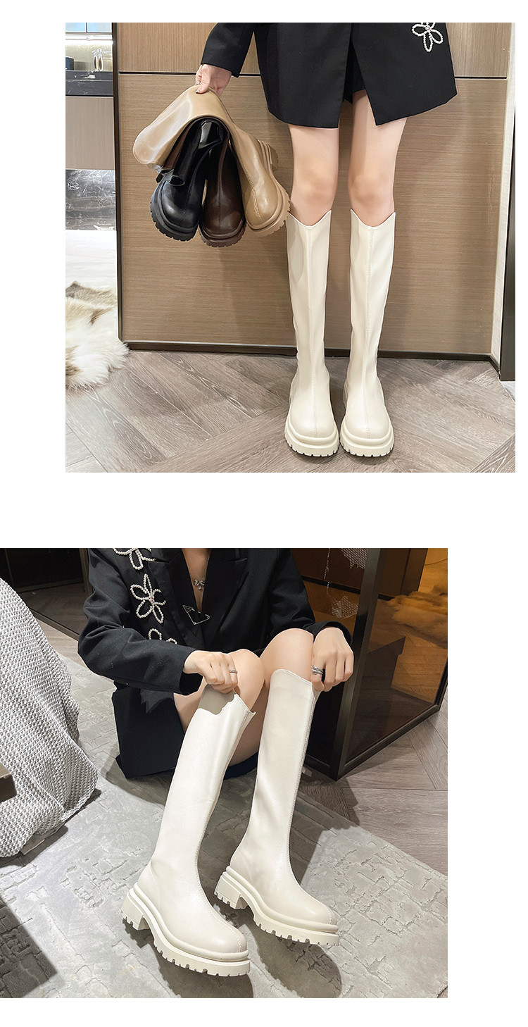 顯腿直長筒騎士靴子女厚底2026春秋新款黑色高筒不過膝粗跟瘦瘦靴