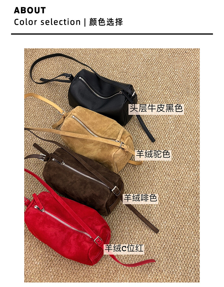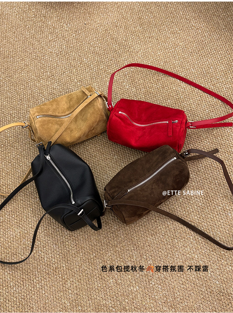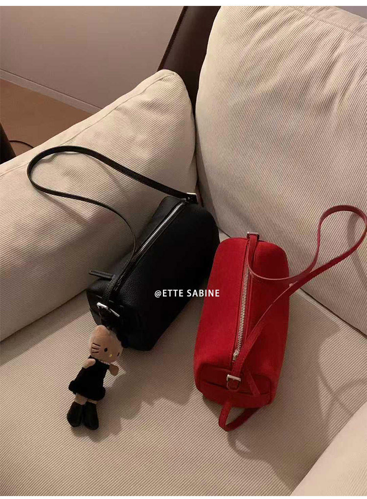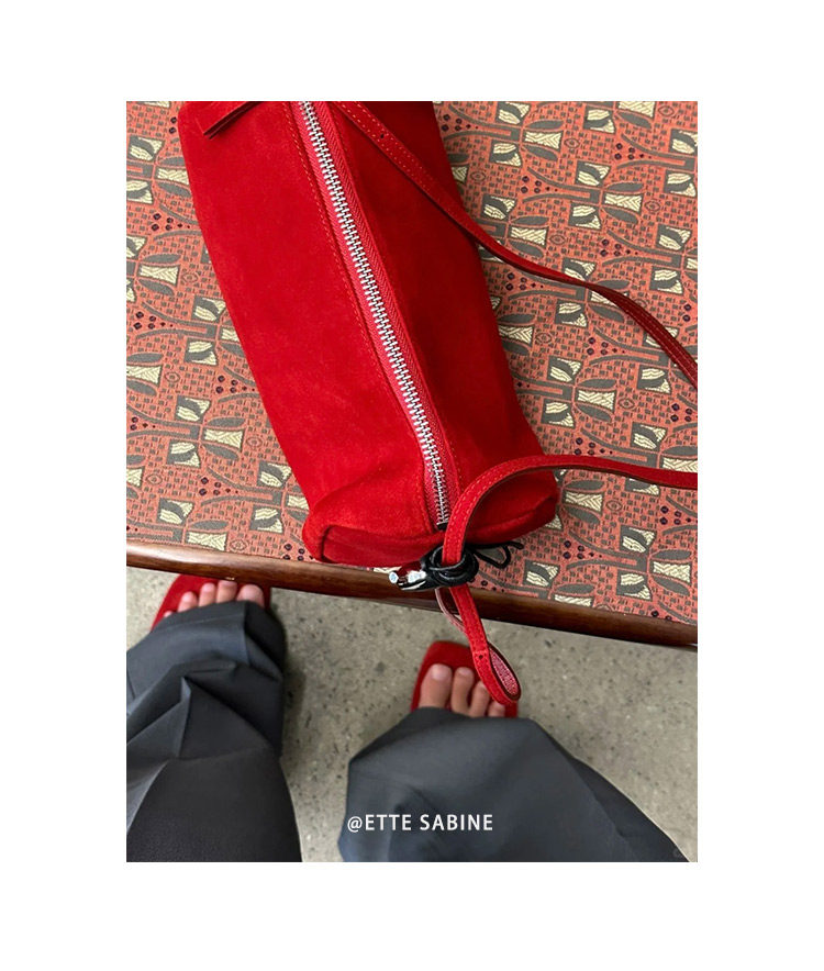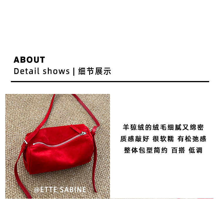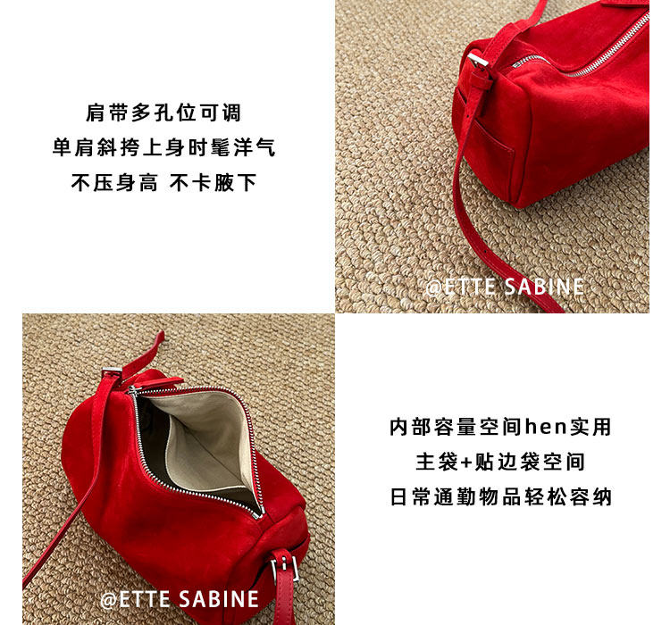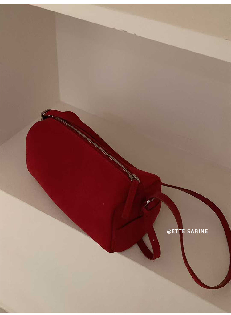 【ETTE】韓國小衆圓筒包2025新款羊猄絨高級紅色單肩斜背枕頭包女