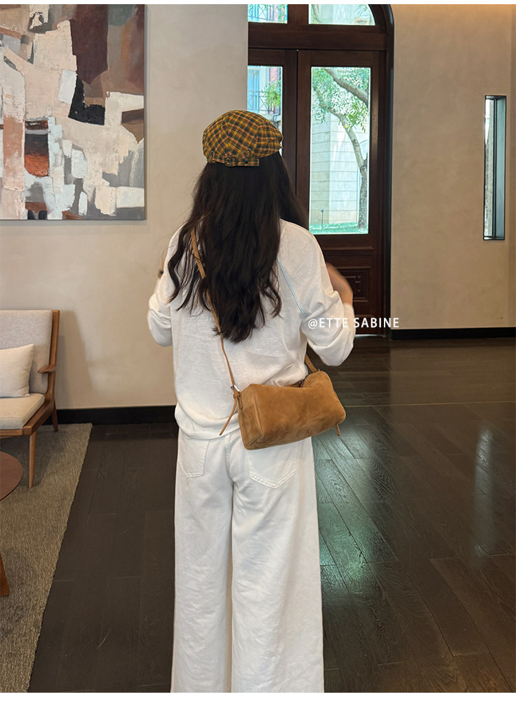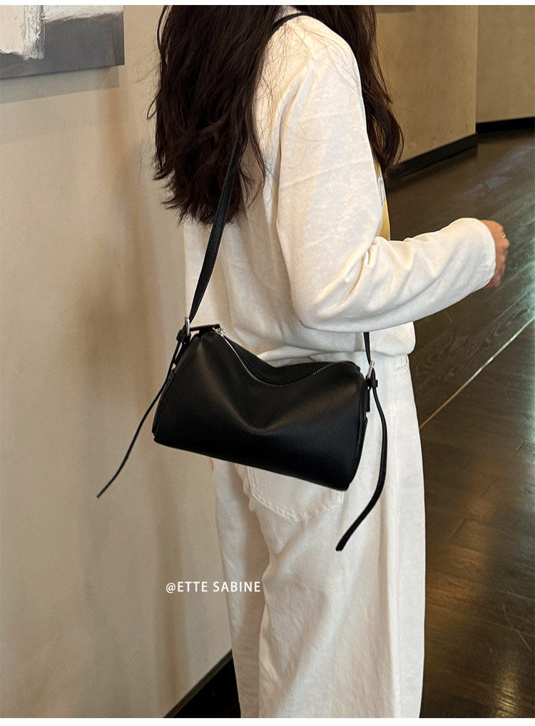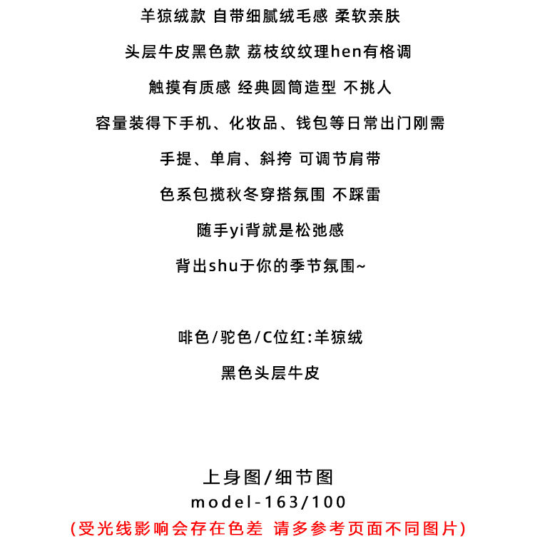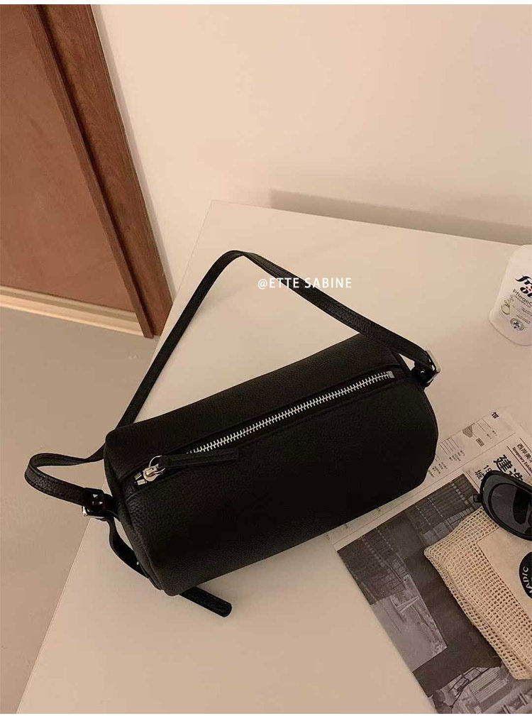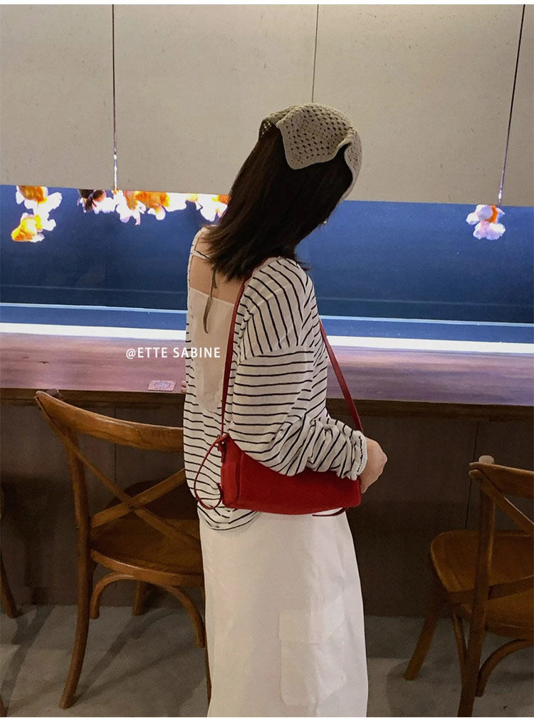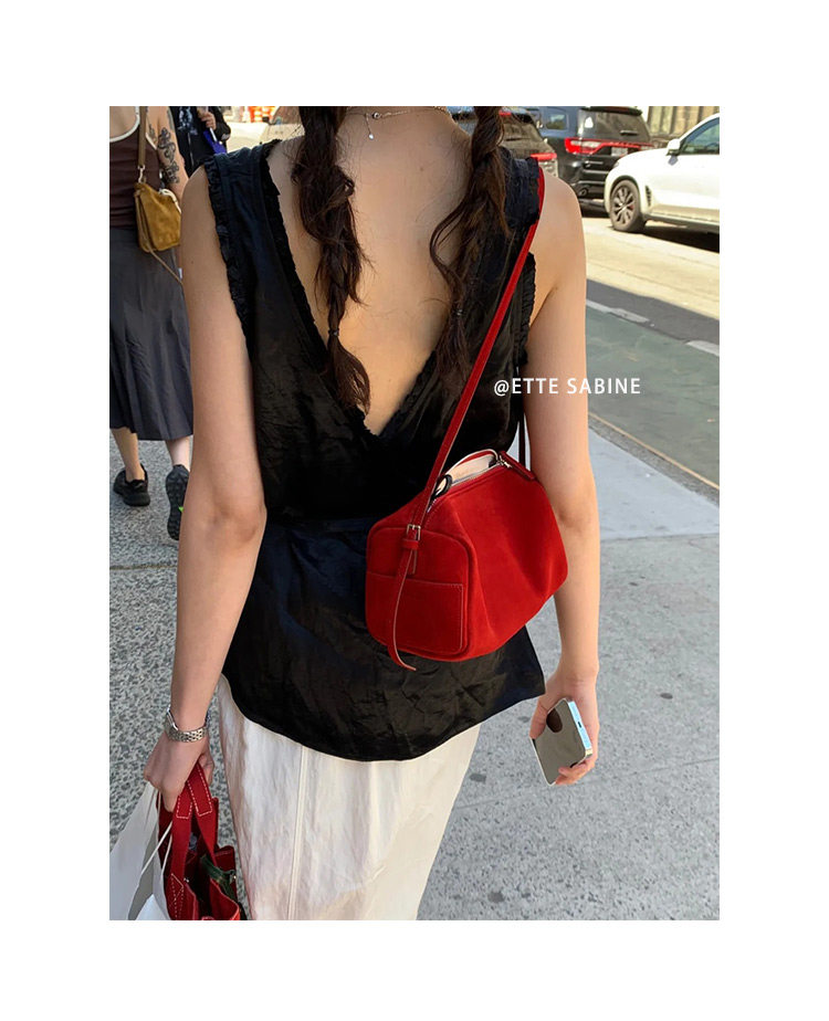 【ETTE】韓國小衆圓筒包2025新款羊猄絨高級紅色單肩斜背枕頭包女