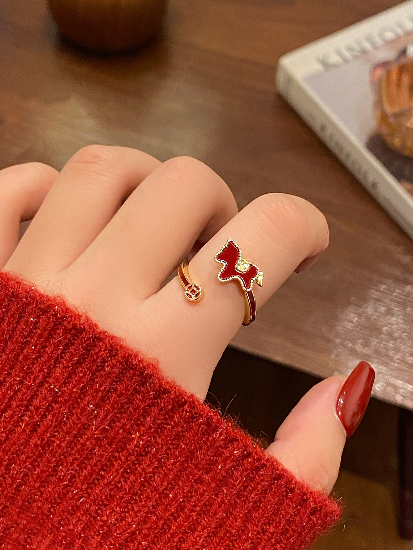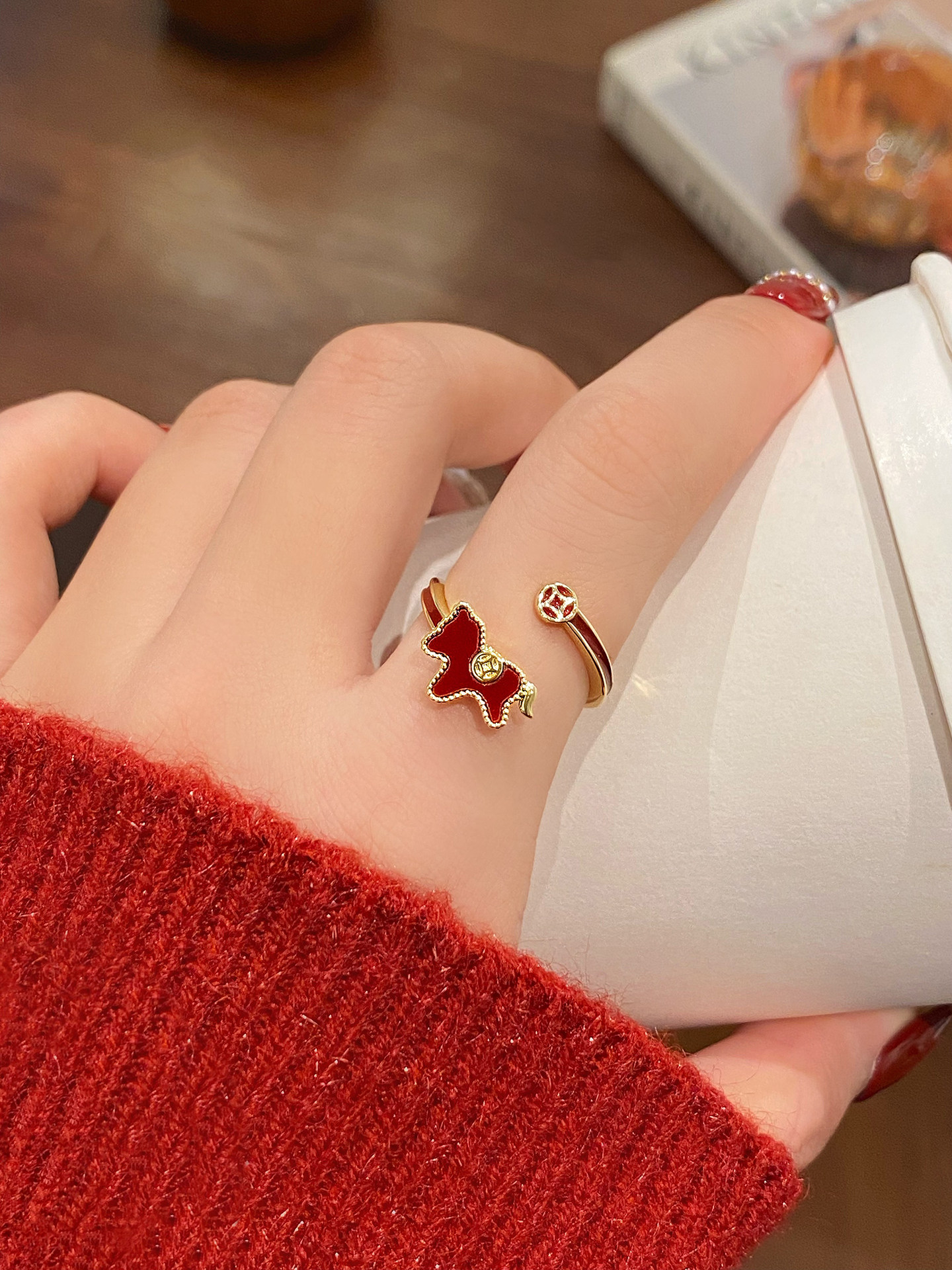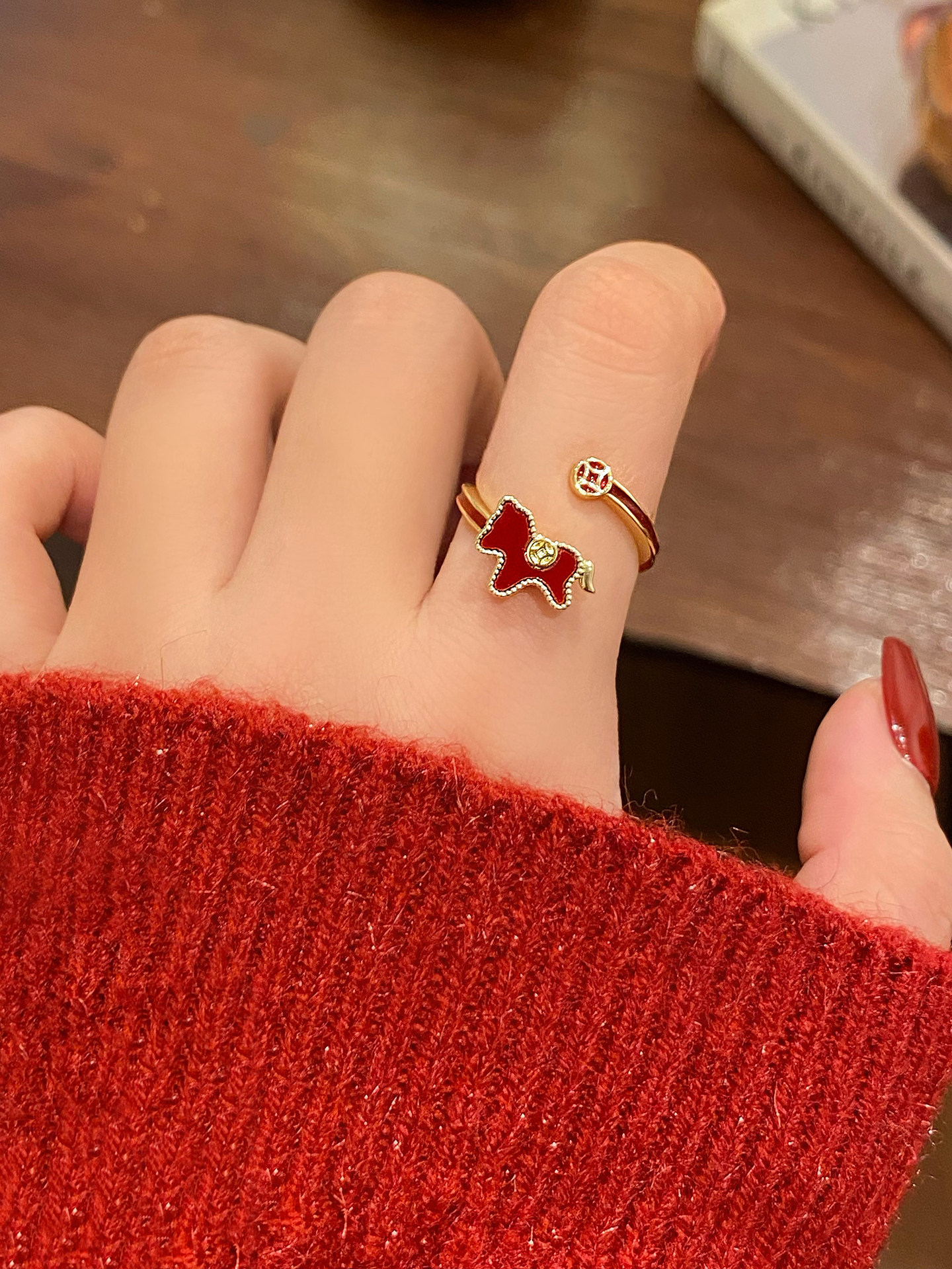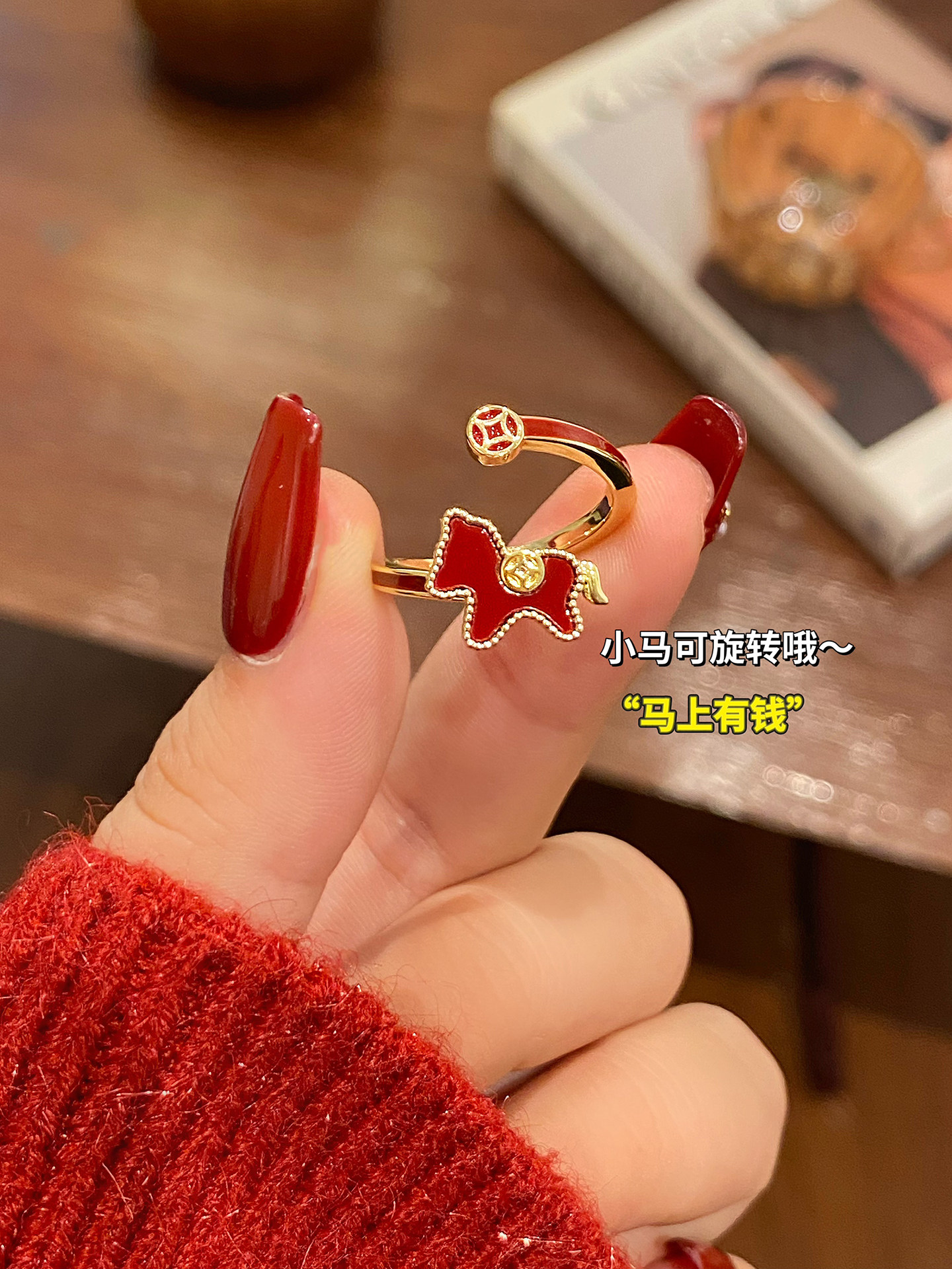 可旋轉開口本命年小馬新年戒指女指環小衆設計食指戒輕奢高級感