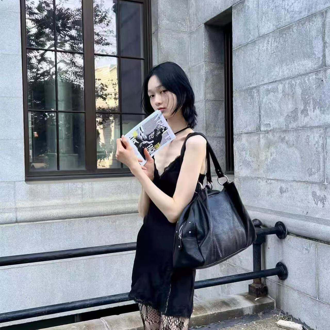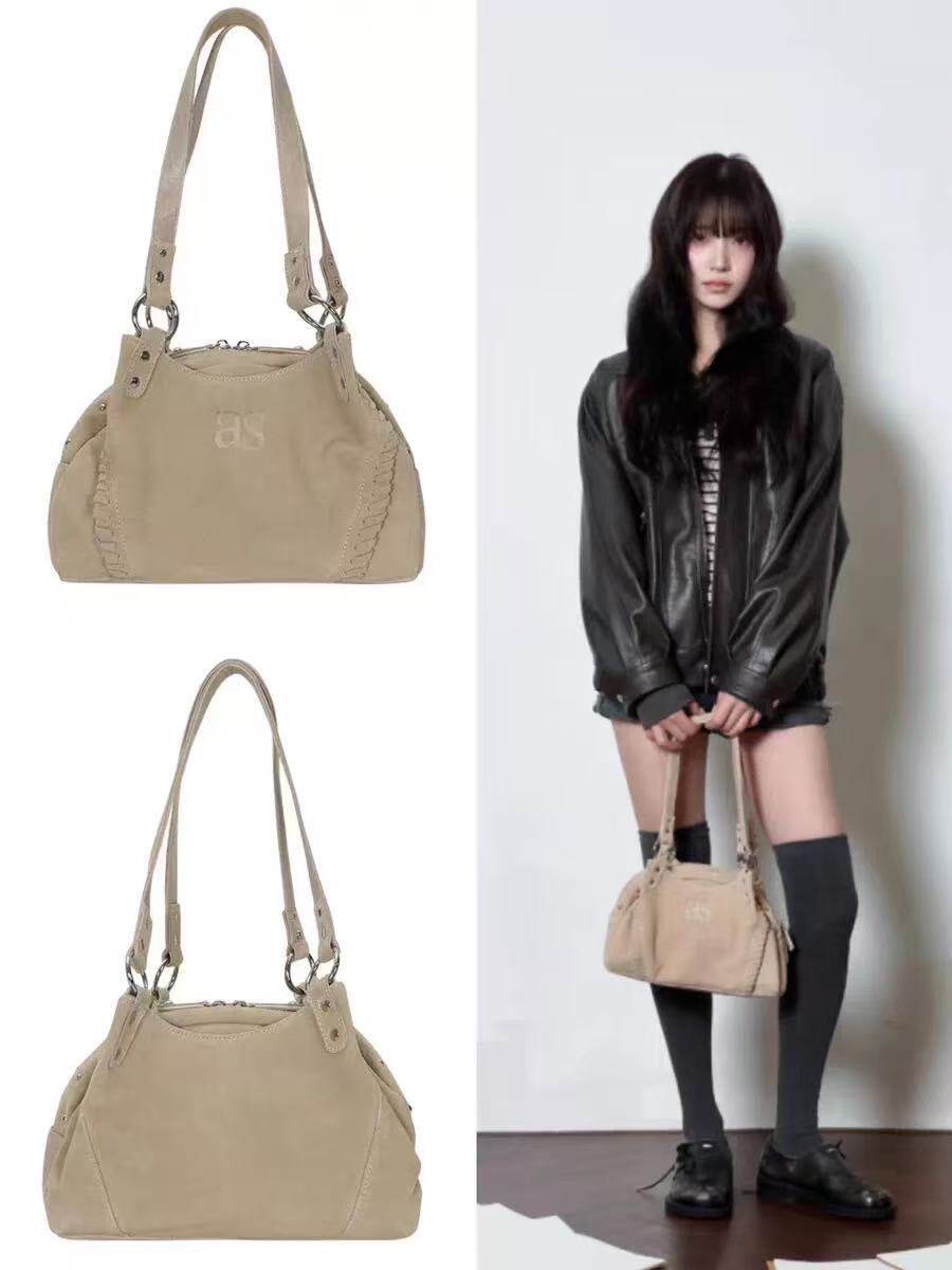 as*n流浪包博主同款韓國24FW皮面mini機車單肩腋下包大容量