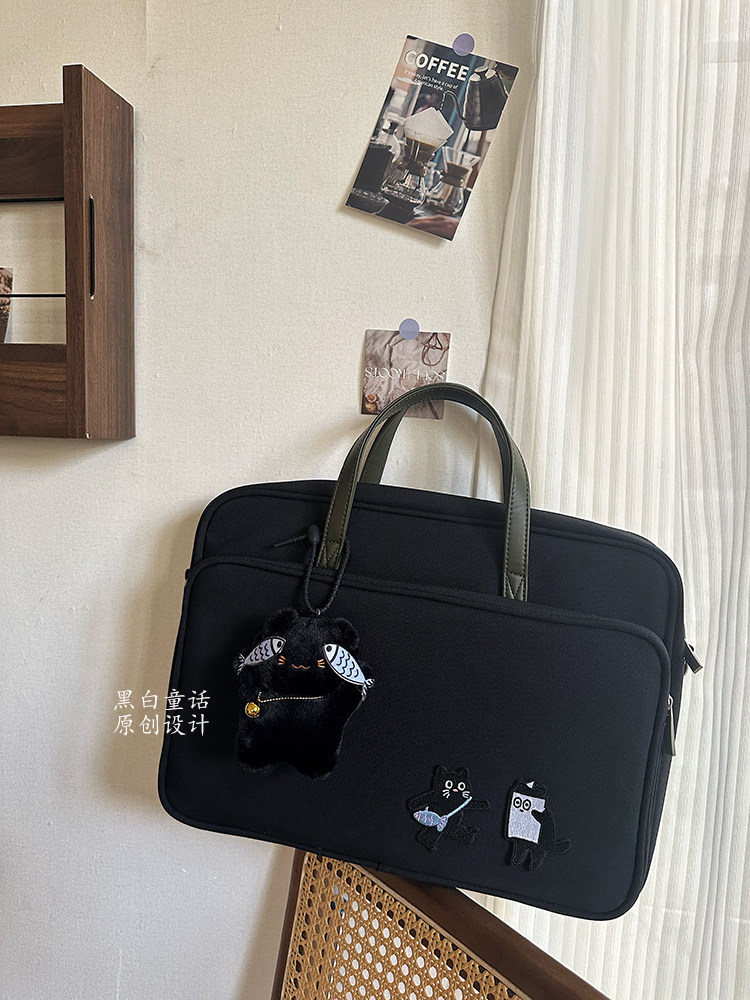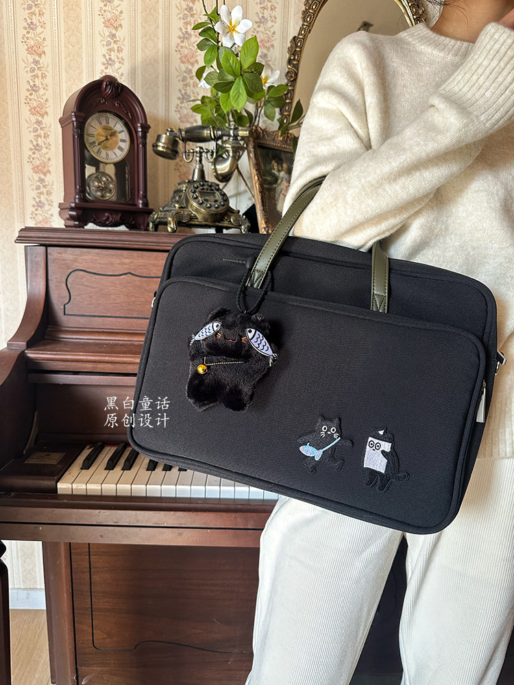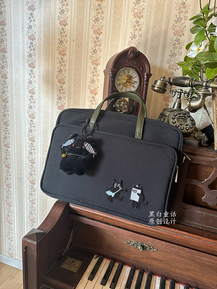 小衆高顔值搞怪貓咪托特筆記型電腦包手提16寸大容量設計卡通貼布通勤收納包適用聯想拯救者y9000p遊戯本